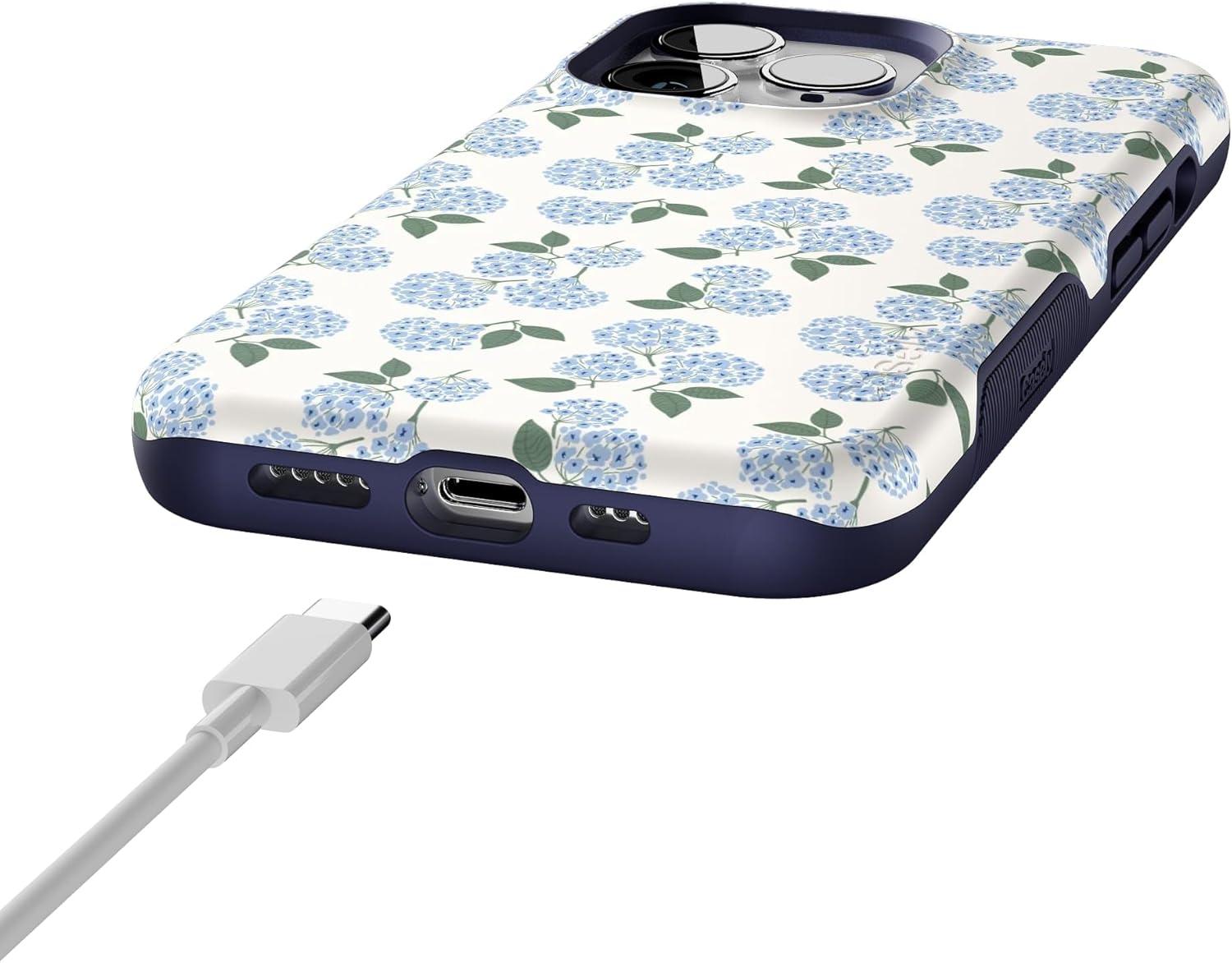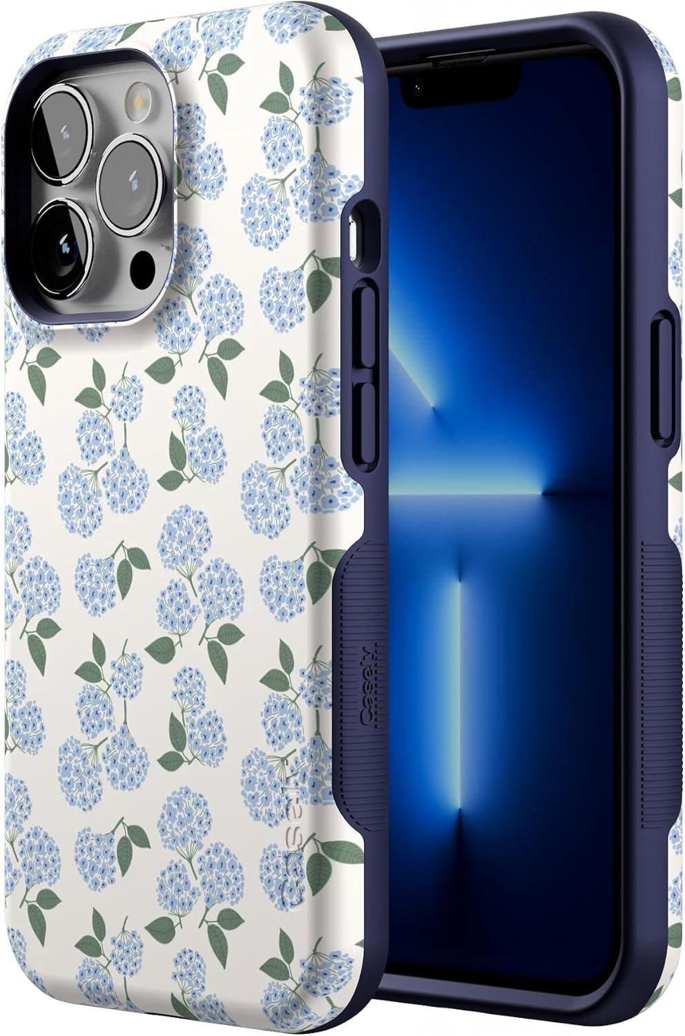 Casely iPhone 13 Pro Case | Into The Wild | Black Leopard | Bold Protective Design | MagSafe Compatible Design(Nantucket Cottage | Blue Hydrangea)