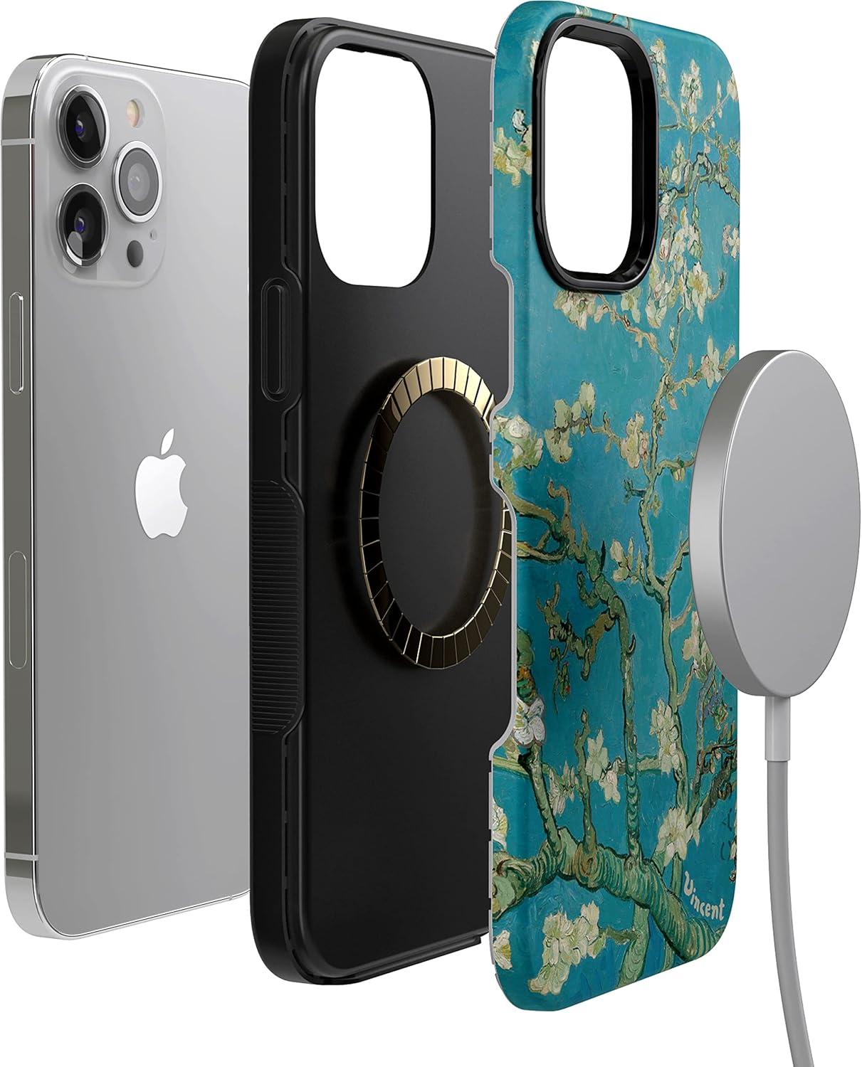 Casely iPhone 13 Pro Case | Into The Wild | Black Leopard | Bold Protective Design | MagSafe Compatible Design(Van Gogh | Almond Blossom Floral)