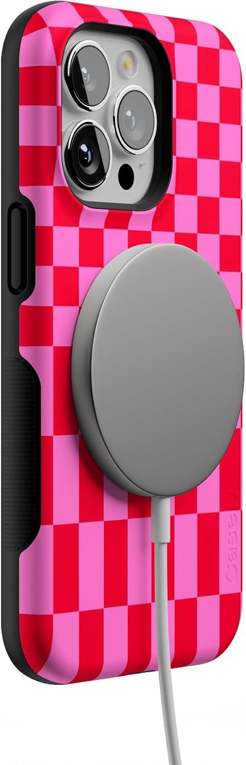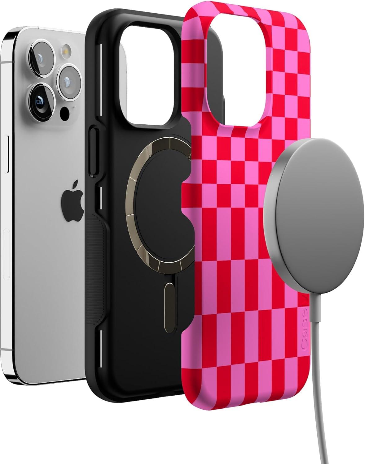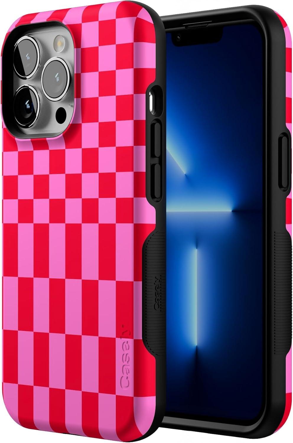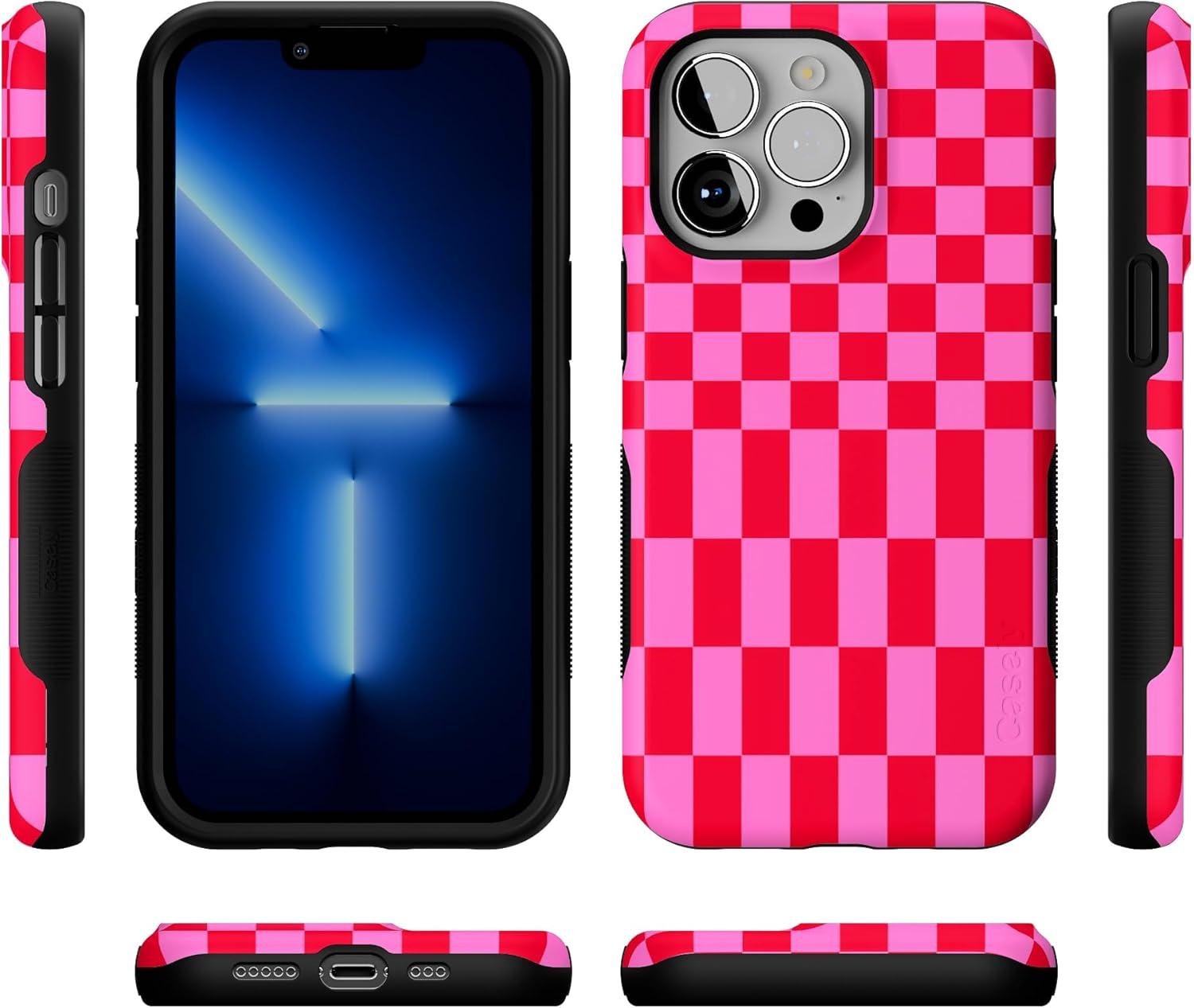 Casely iPhone 13 Pro Case | Into The Wild | Black Leopard | Bold Protective Design | MagSafe Compatible Design(Vibe Check | Pink Checkerboard)