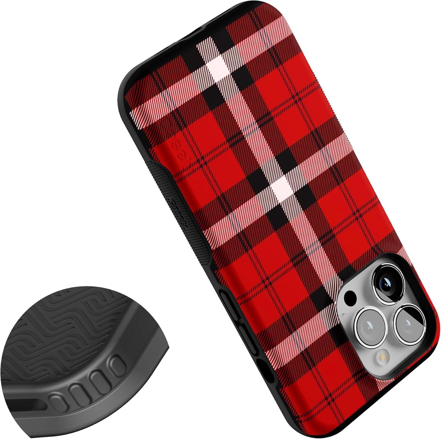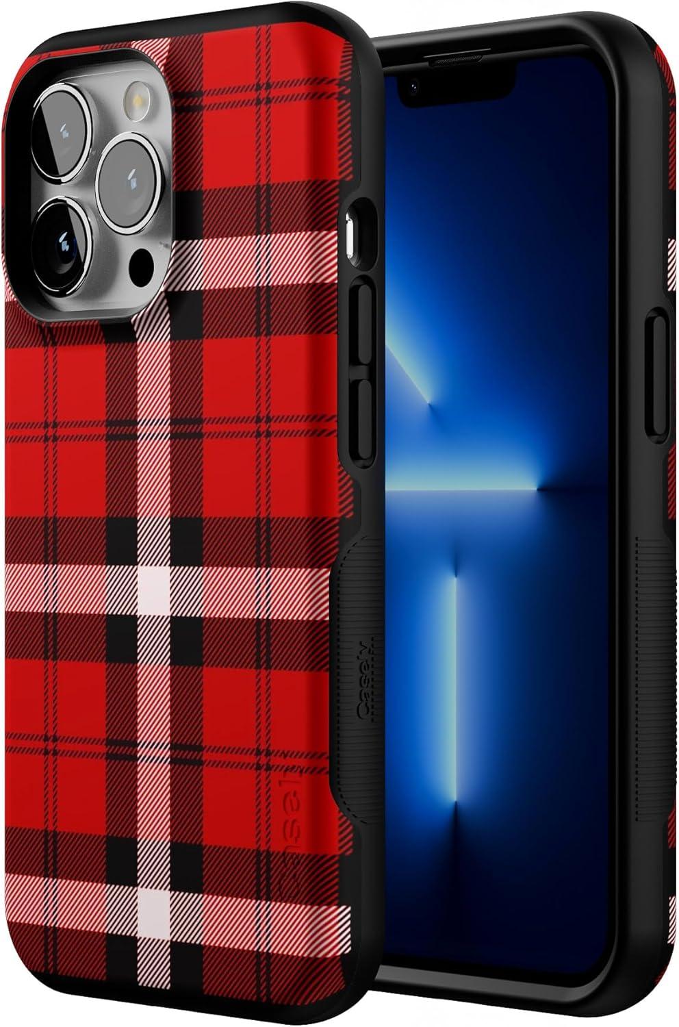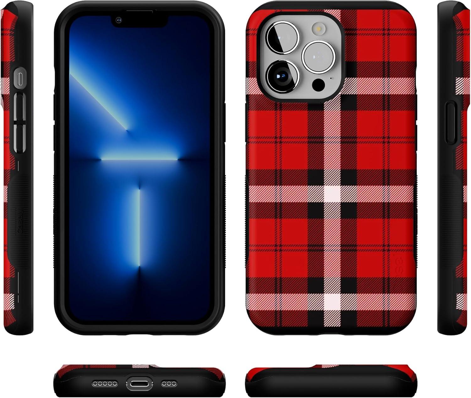 Casely iPhone 13 Pro Case | Ride The Wave | Pastel Rainbow Lined | Compatible with MagSafe | Bold Protective Design(As if! Red Plaid)