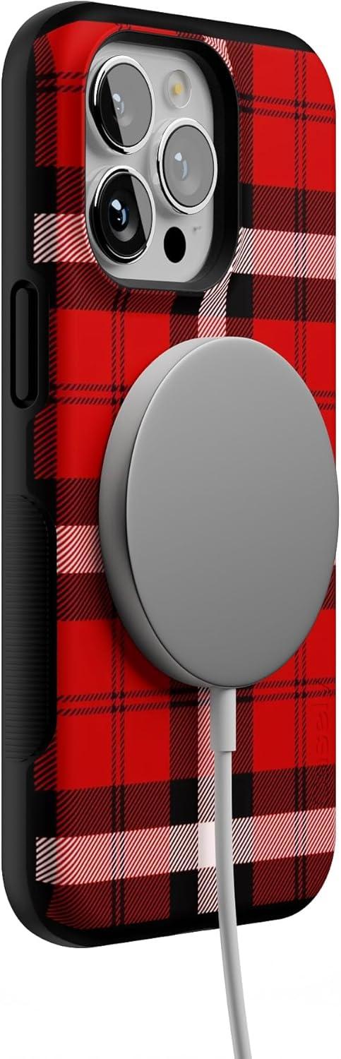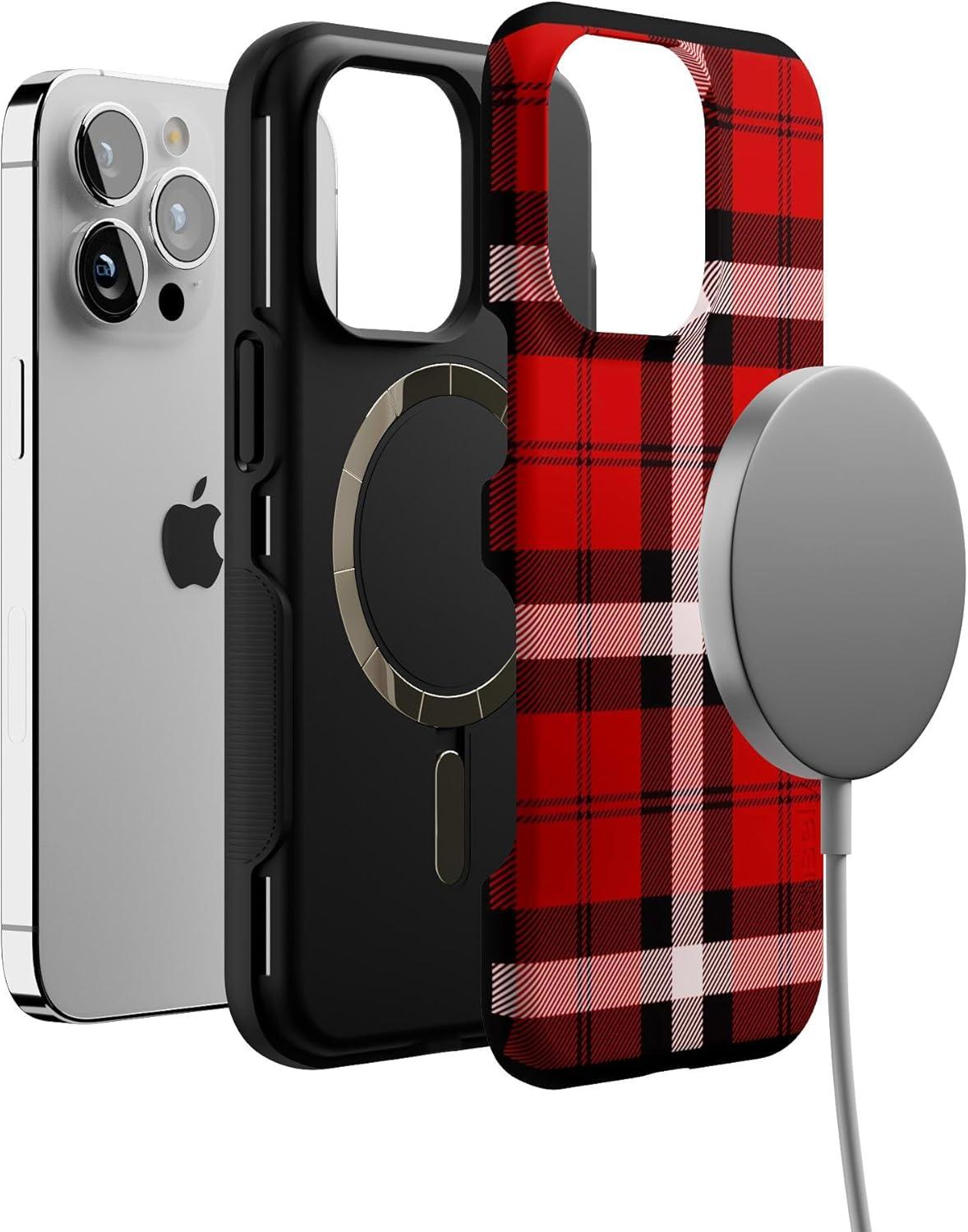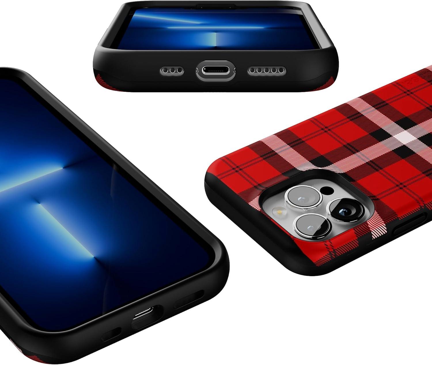 Casely iPhone 13 Pro Case | Ride The Wave | Pastel Rainbow Lined | Compatible with MagSafe | Bold Protective Design(As if! Red Plaid)