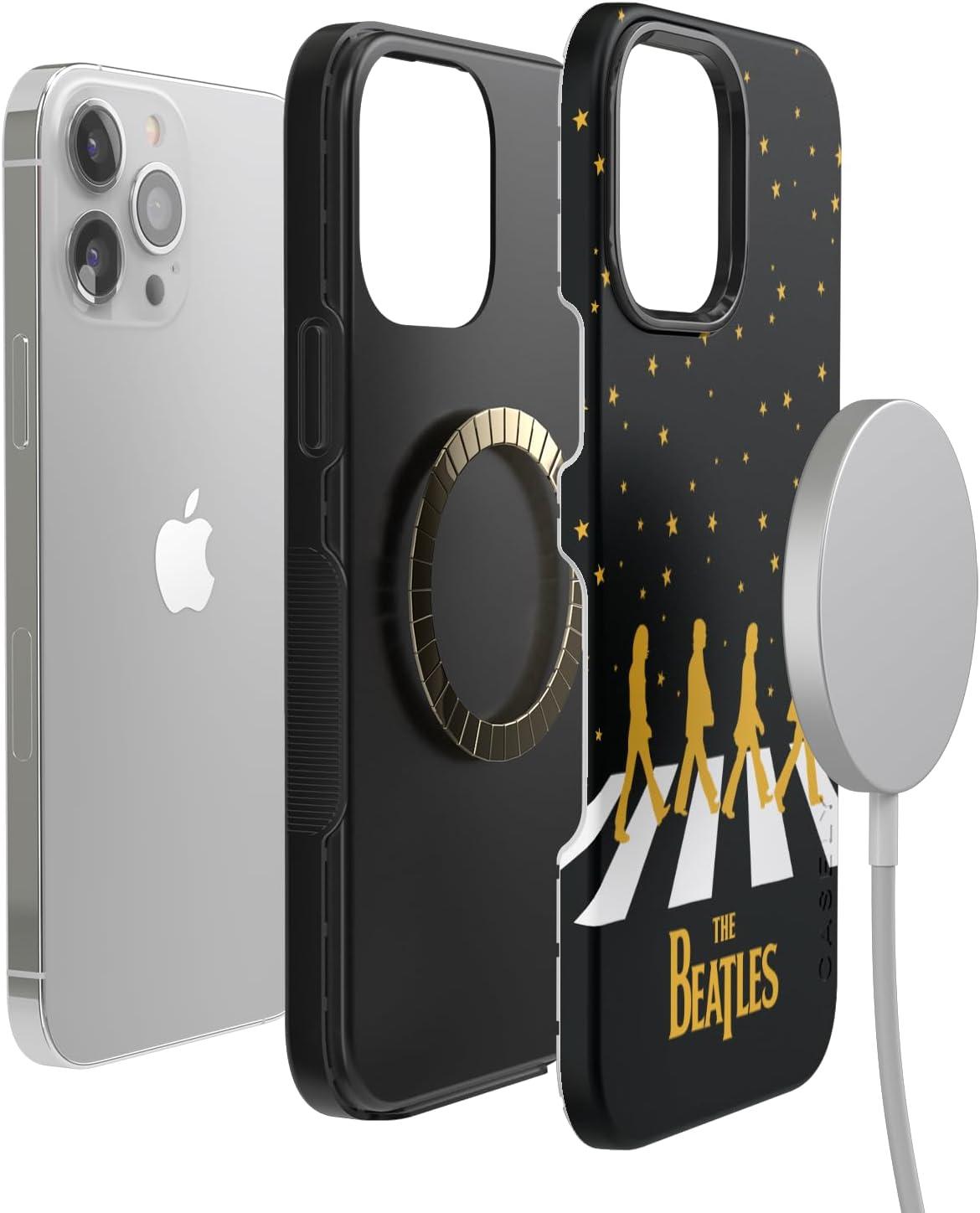 Casely iPhone 13 Pro Case | Ride The Wave | Pastel Rainbow Lined | Compatible with MagSafe | Bold Protective Design(Beatles | Night Walk | Abbey Road Dual Image)