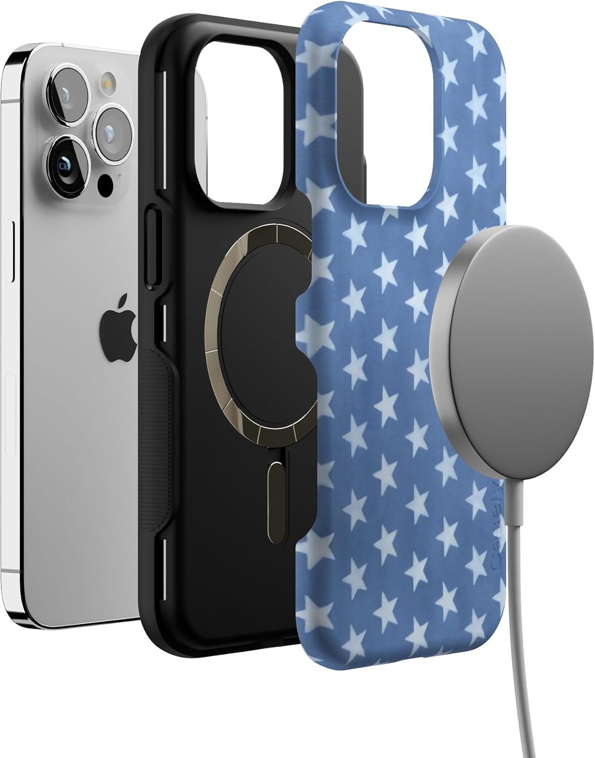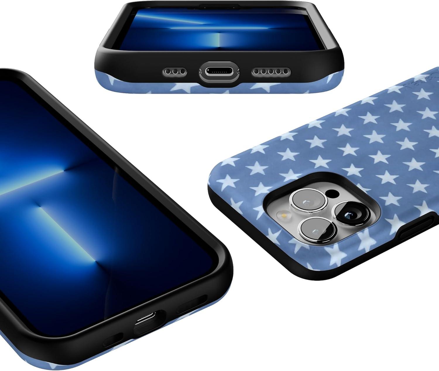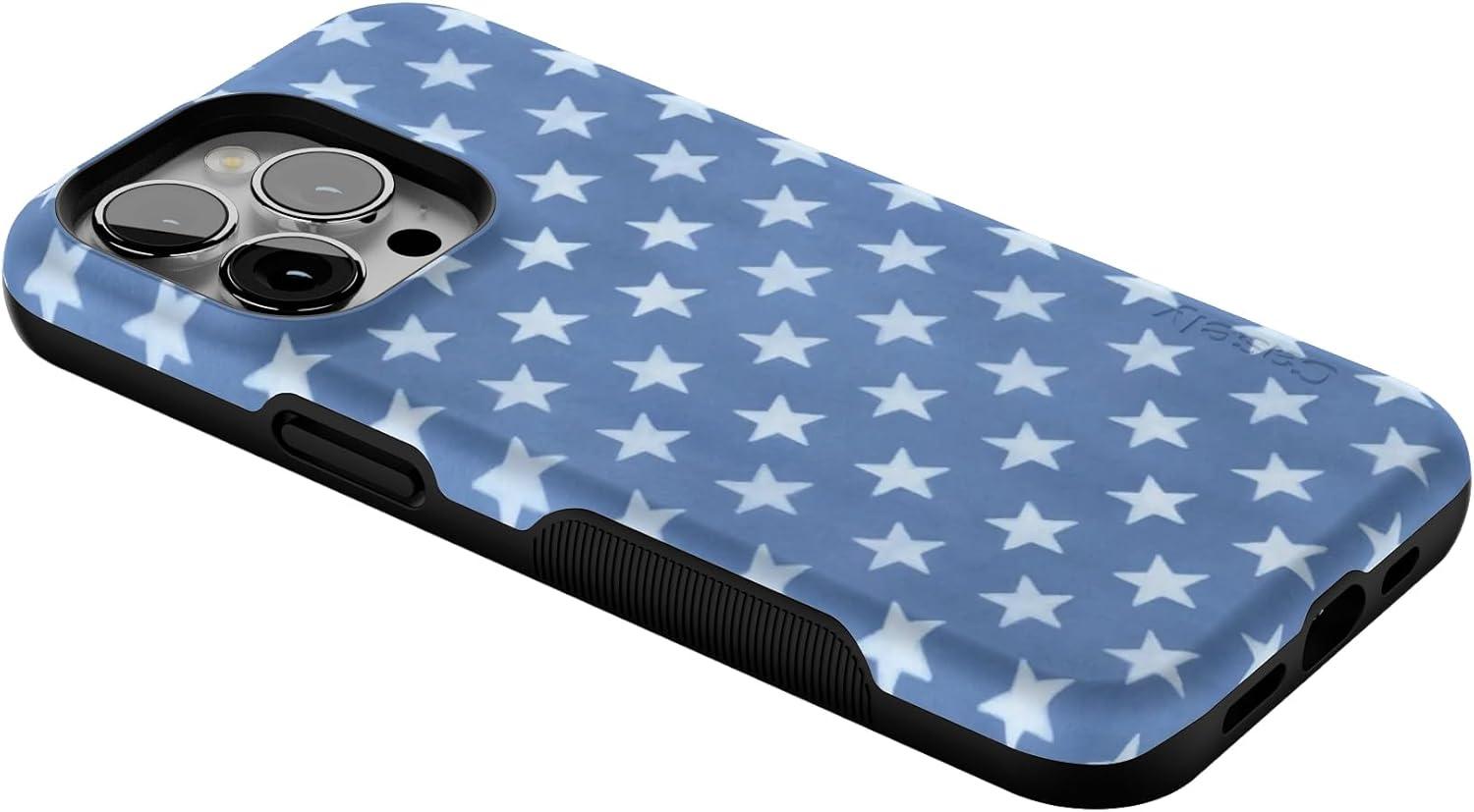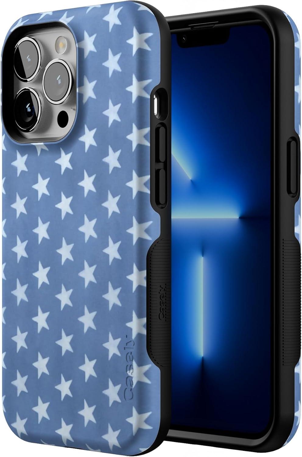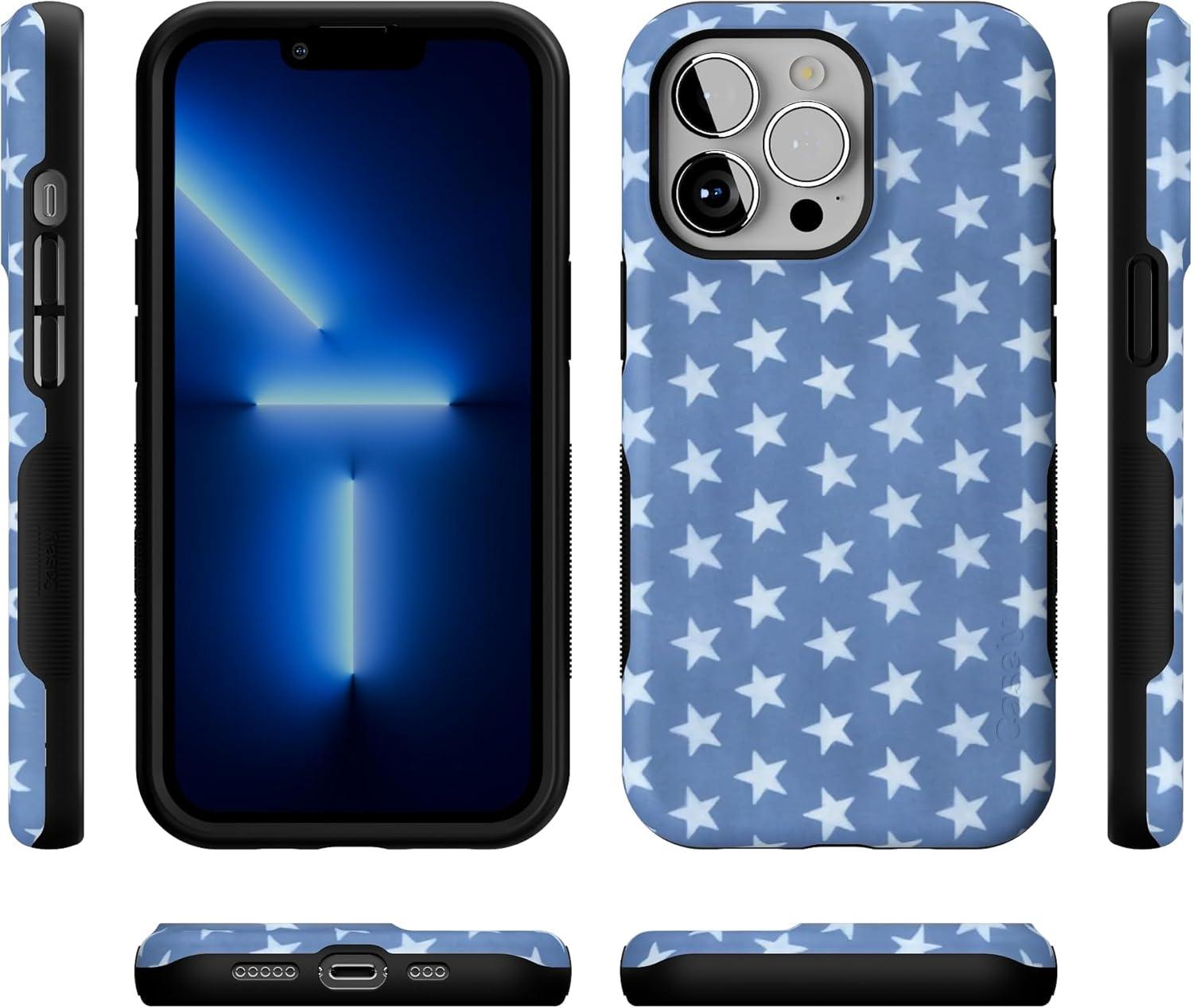 Casely iPhone 13 Pro Case | Ride The Wave | Pastel Rainbow Lined | Compatible with MagSafe | Bold Protective Design(Coastal Blues | Denim Stars)