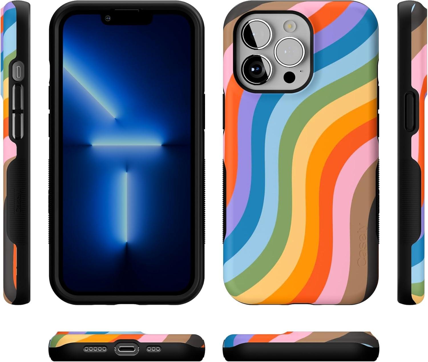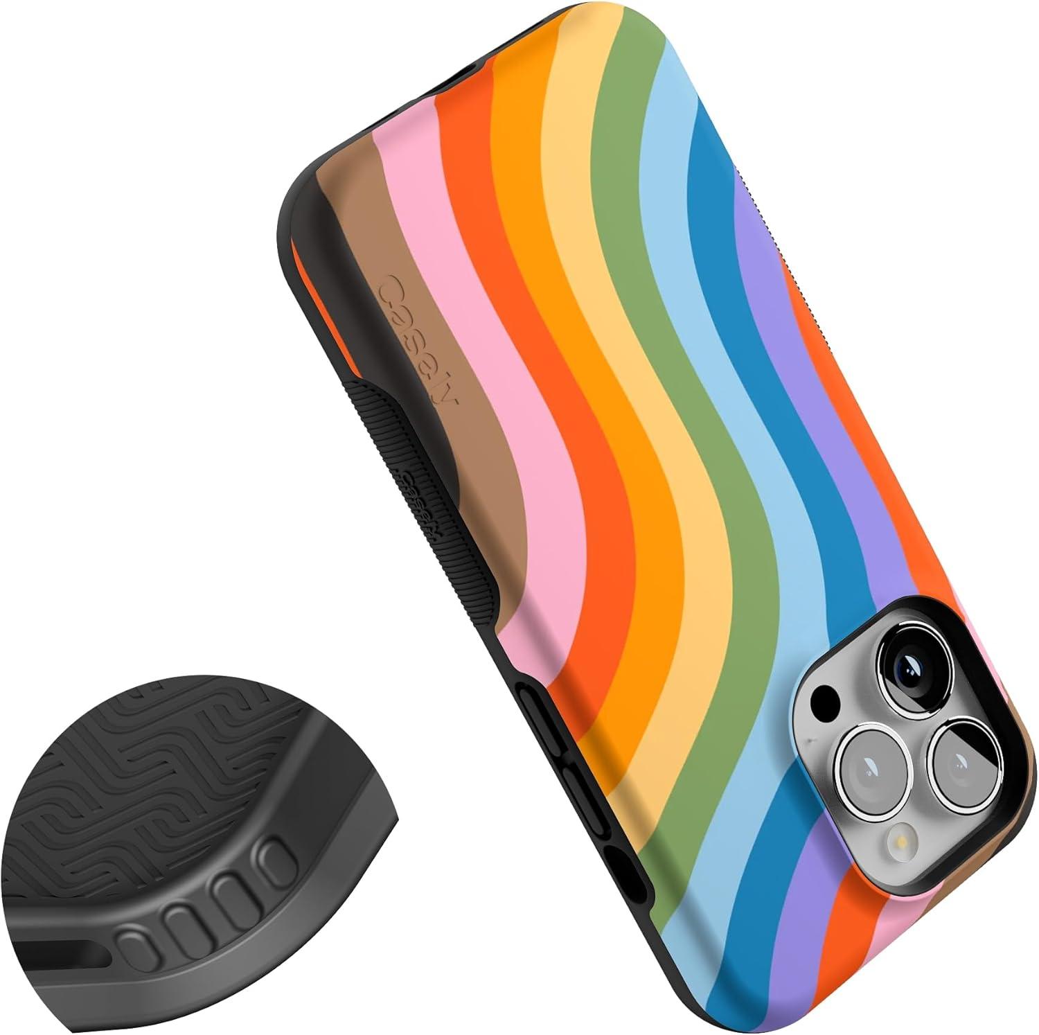 Casely iPhone 13 Pro Case | Ride The Wave | Pastel Rainbow Lined | Compatible with MagSafe | Bold Protective Design(Love for All | Rainbow Pride)