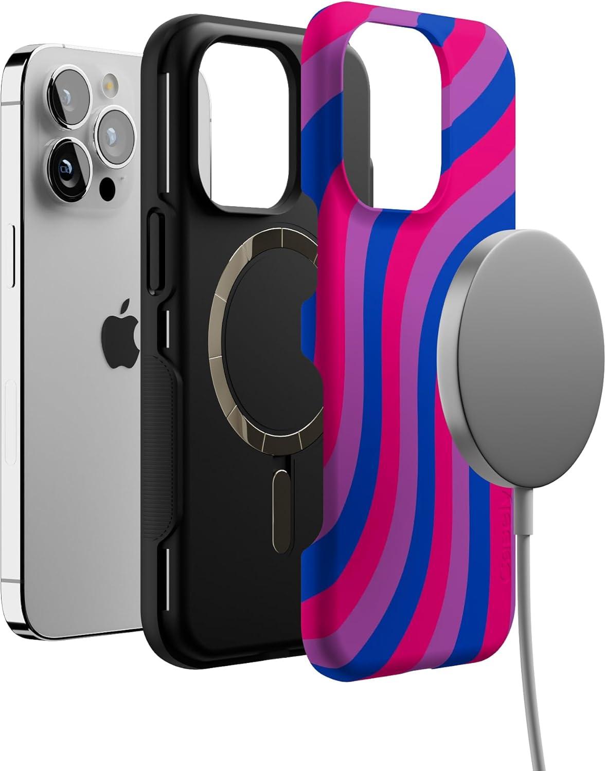 Casely iPhone 13 Pro Case | Ride The Wave | Pastel Rainbow Lined | Compatible with MagSafe | Bold Protective Design(Love Wins | Pride)