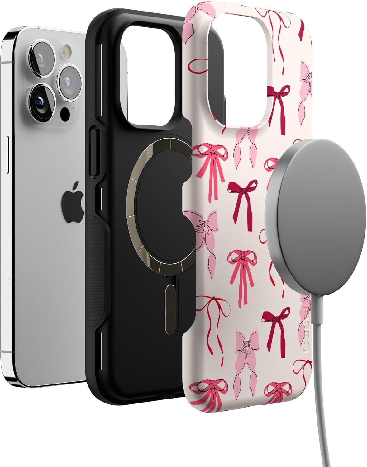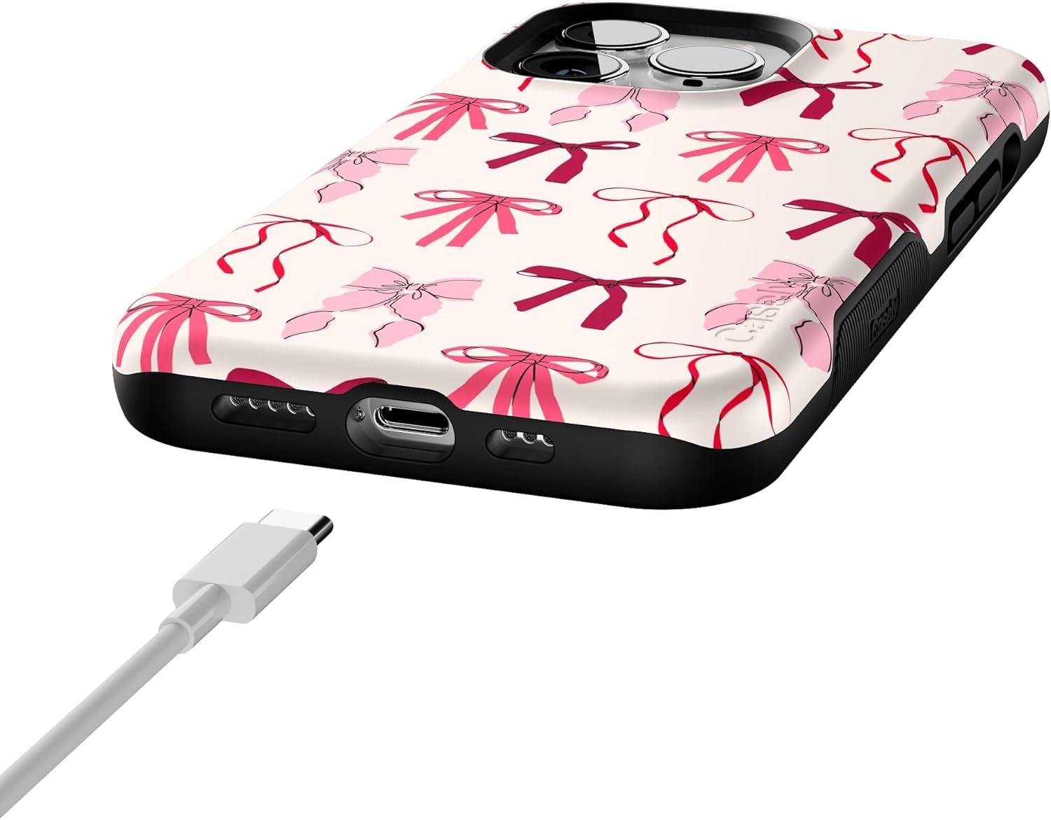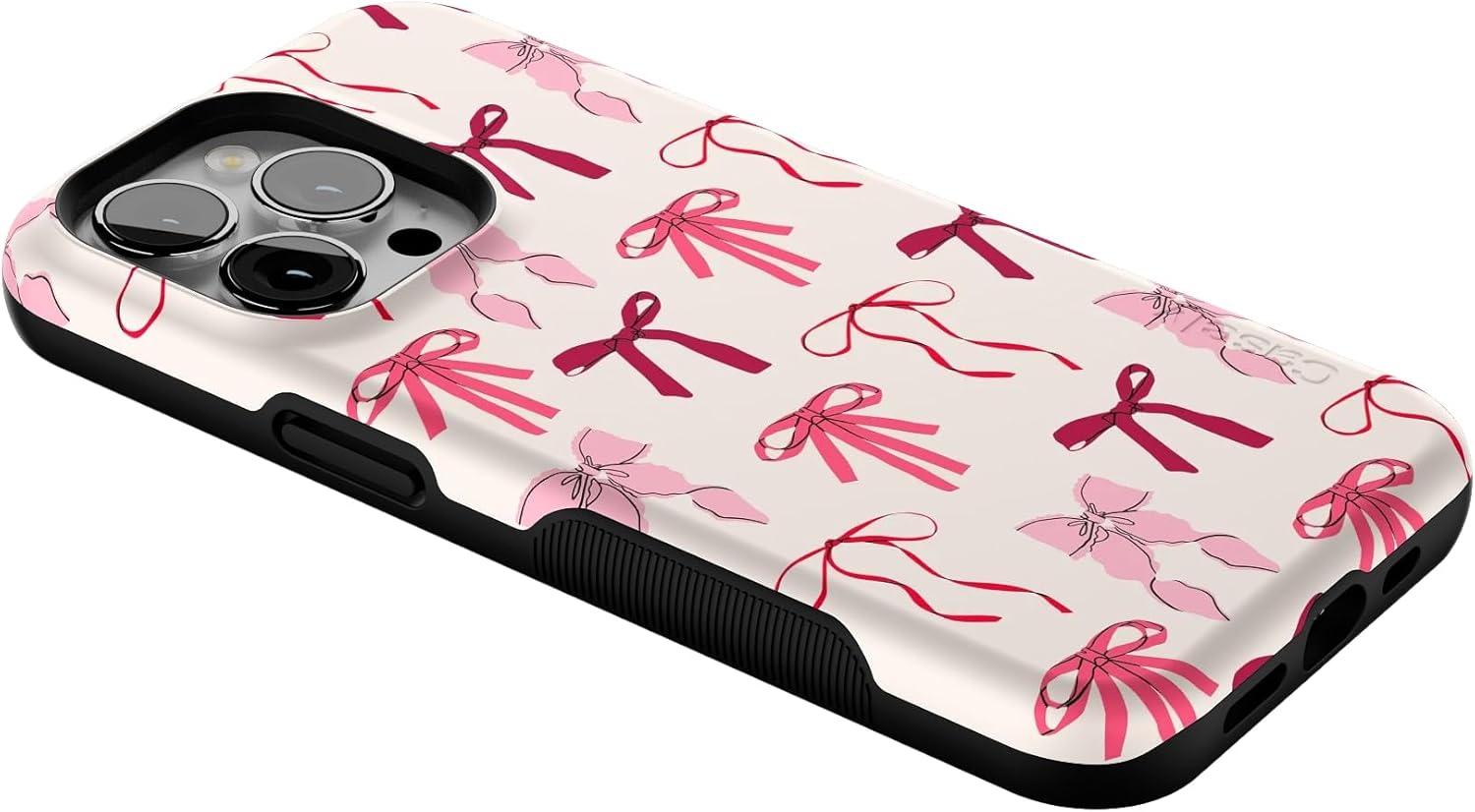 Casely iPhone 13 Pro Case | Ride The Wave | Pastel Rainbow Lined | Compatible with MagSafe | Bold Protective Design(Lover Girlie | Pink Bows)