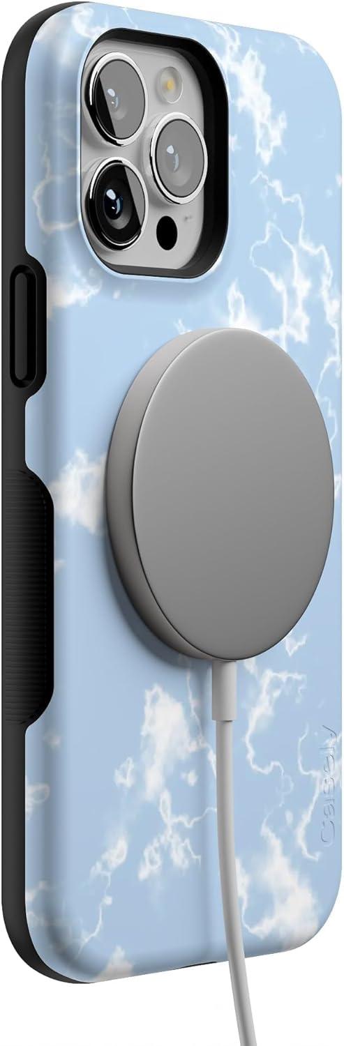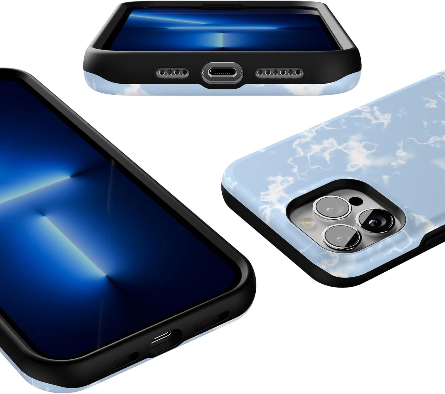 Casely iPhone 13 Pro Case | Ride The Wave | Pastel Rainbow Lined | Compatible with MagSafe | Bold Protective Design(Marble Clouds | Light Blue Skies)