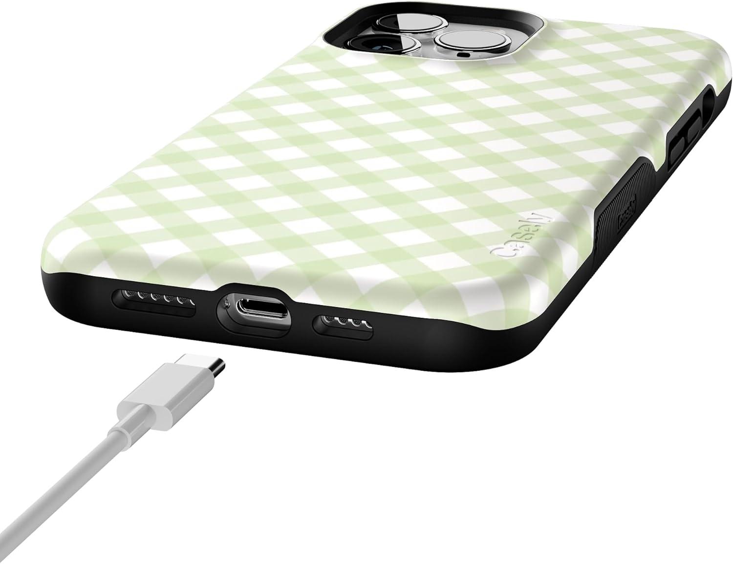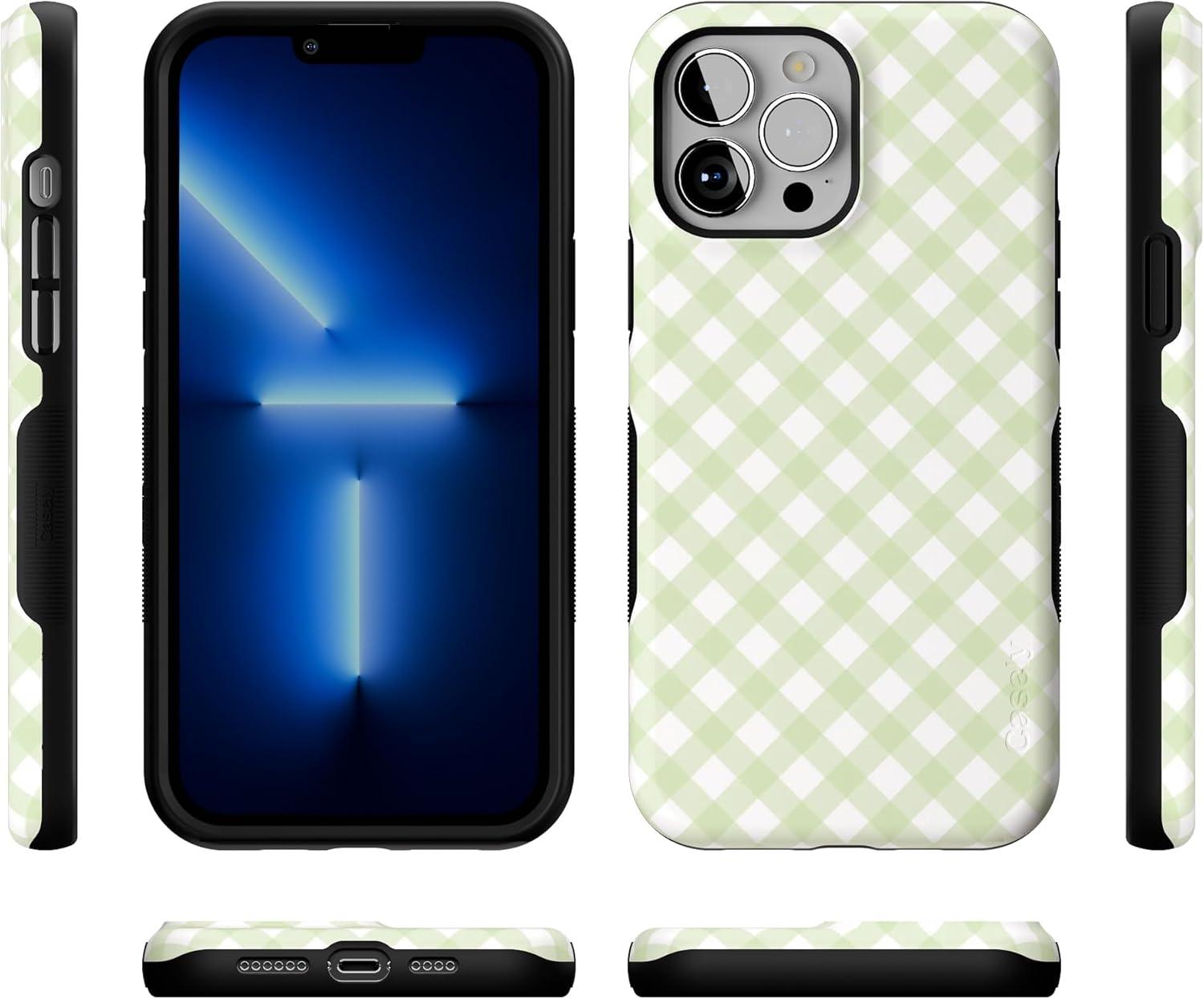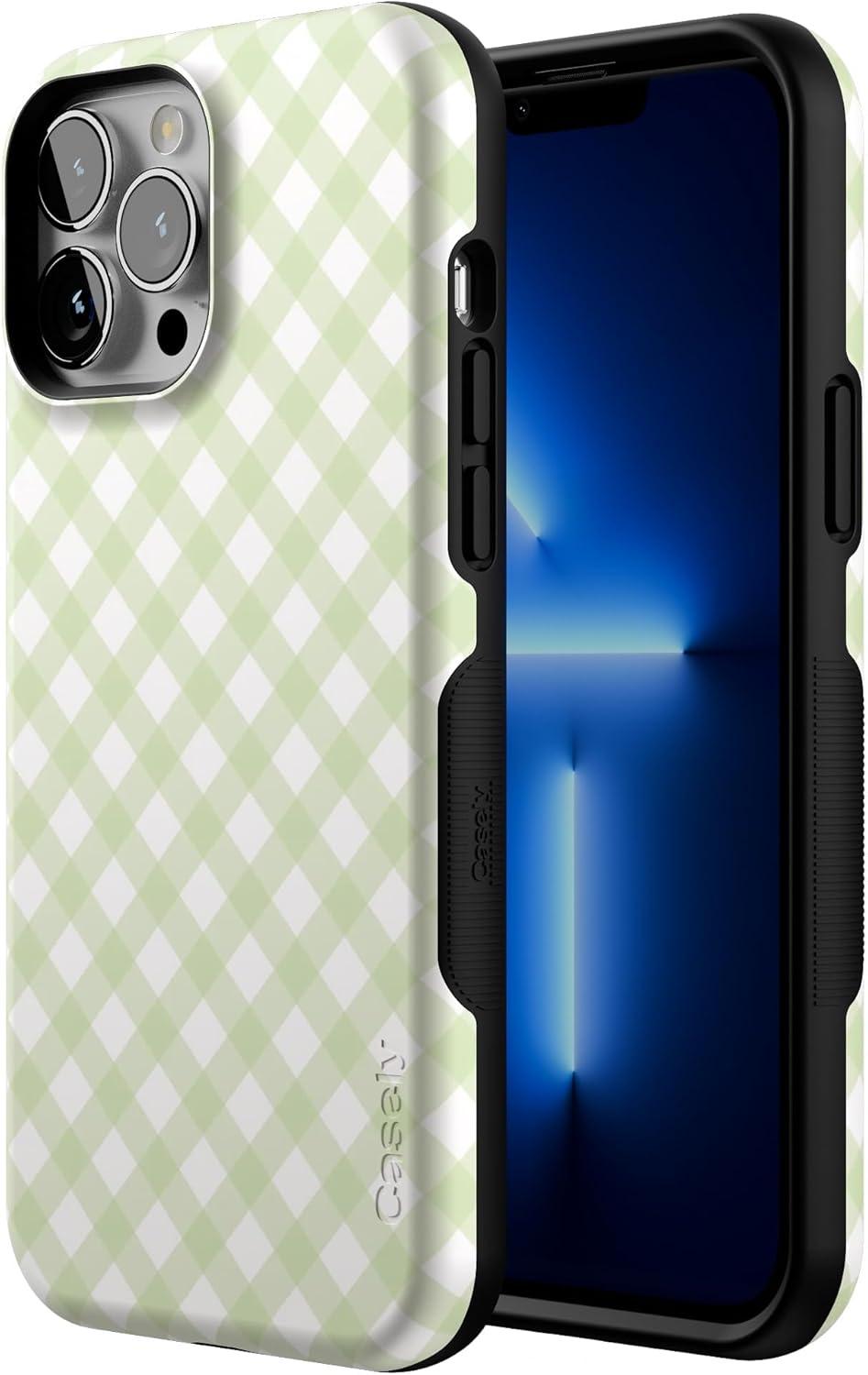 Casely iPhone 13 Pro Case | Ride The Wave | Pastel Rainbow Lined | Compatible with MagSafe | Bold Protective Design(Mint Lattice | Sunday Best | Green Gingham)