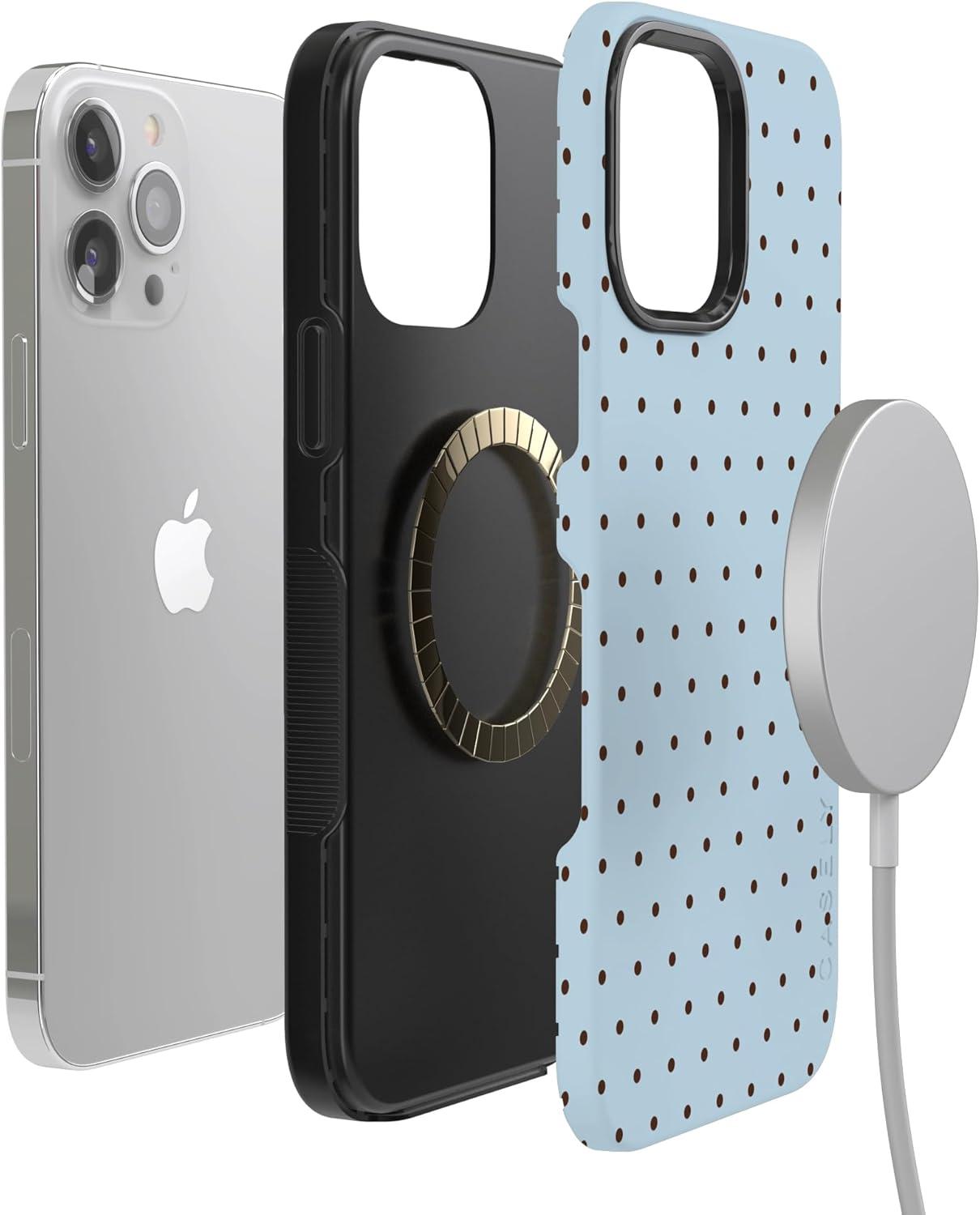 Casely iPhone 13 Pro Case | Ride The Wave | Pastel Rainbow Lined | Compatible with MagSafe | Bold Protective Design(On the Dot | Blue Polka Dot)