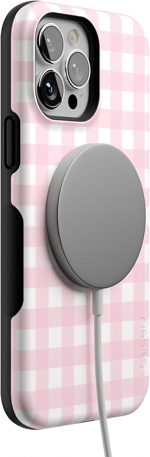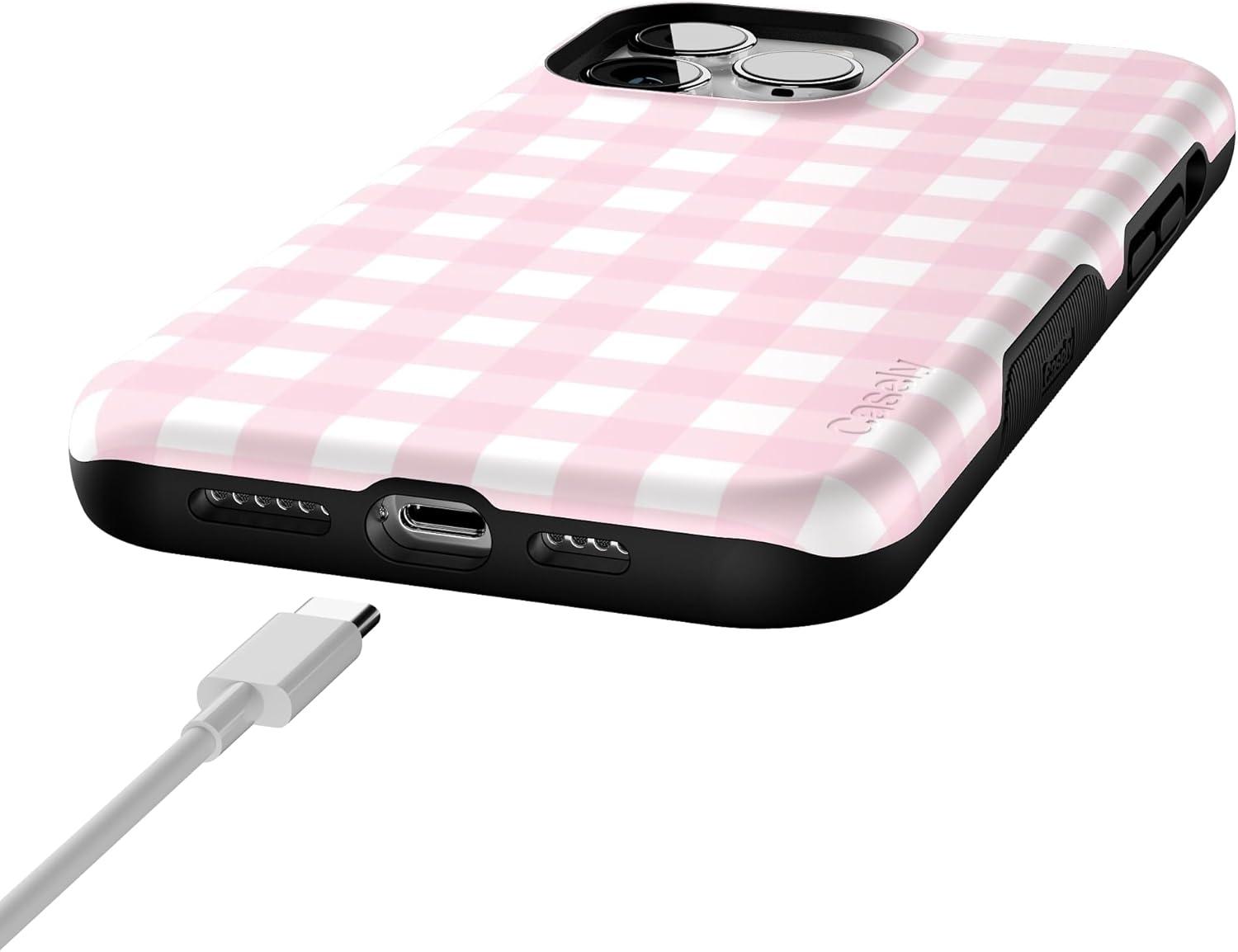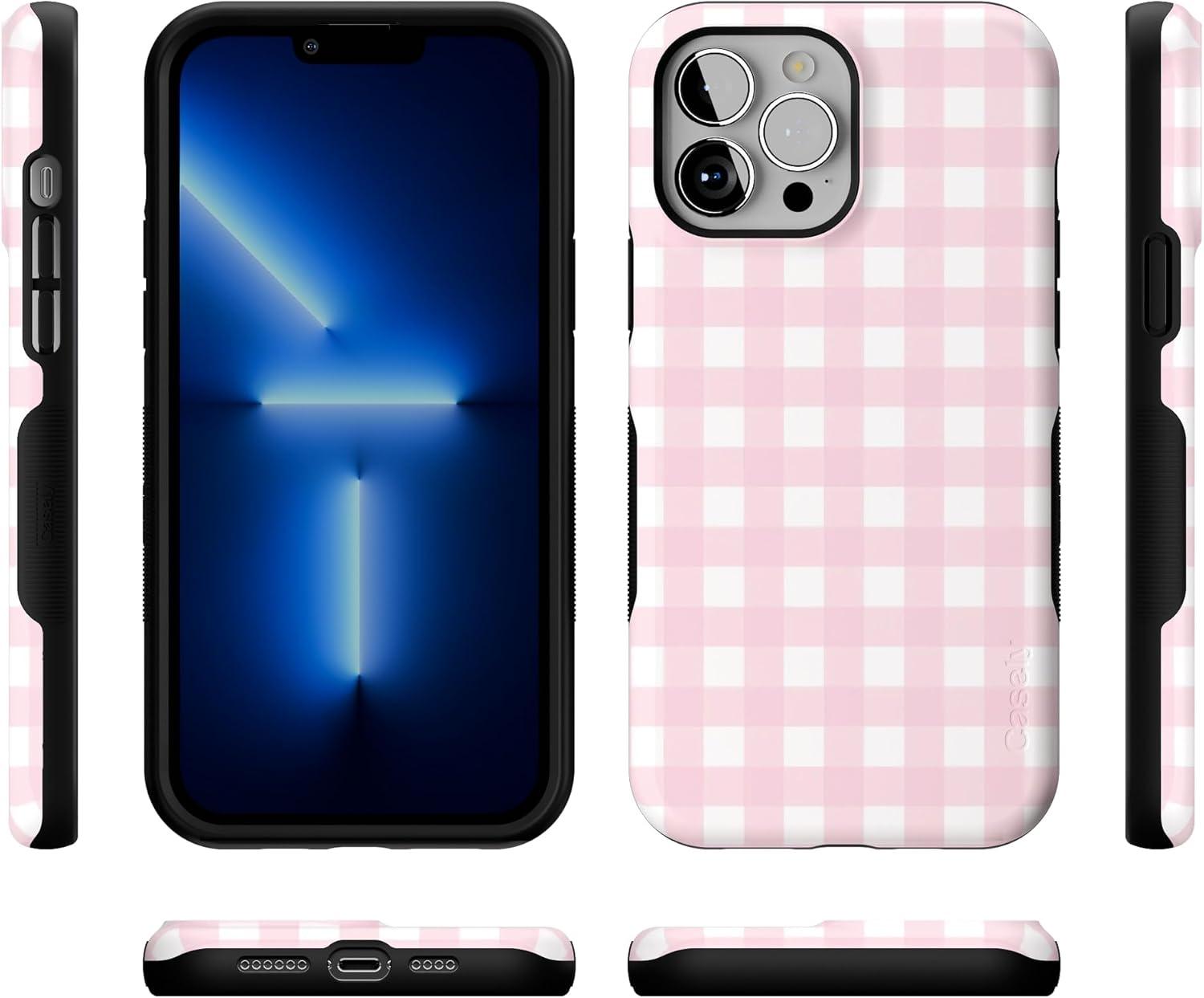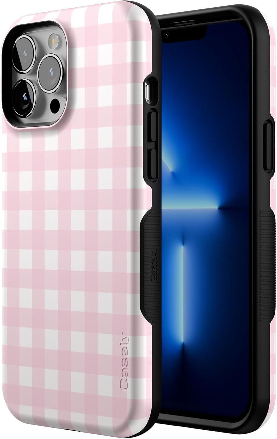 Casely iPhone 13 Pro Case | Ride The Wave | Pastel Rainbow Lined | Compatible with MagSafe | Bold Protective Design(Pink Plaid | Sunday Best)