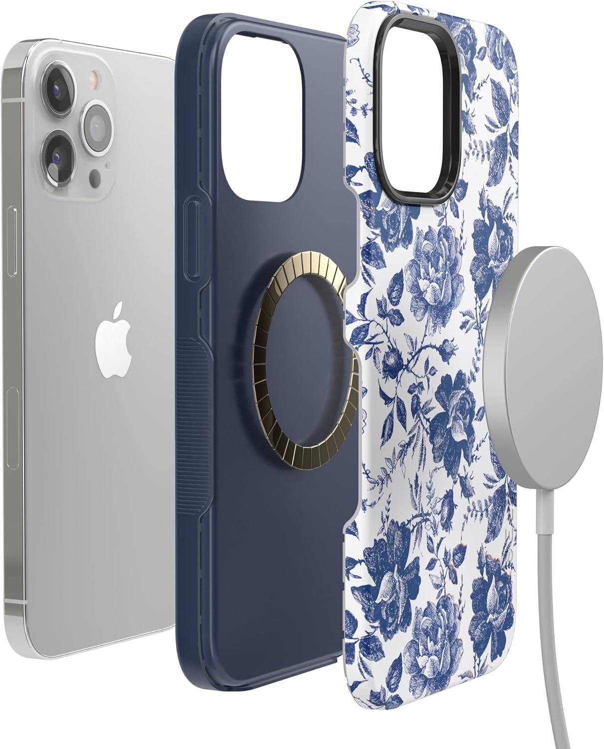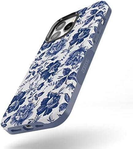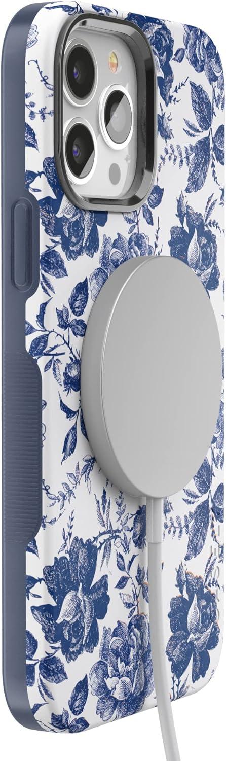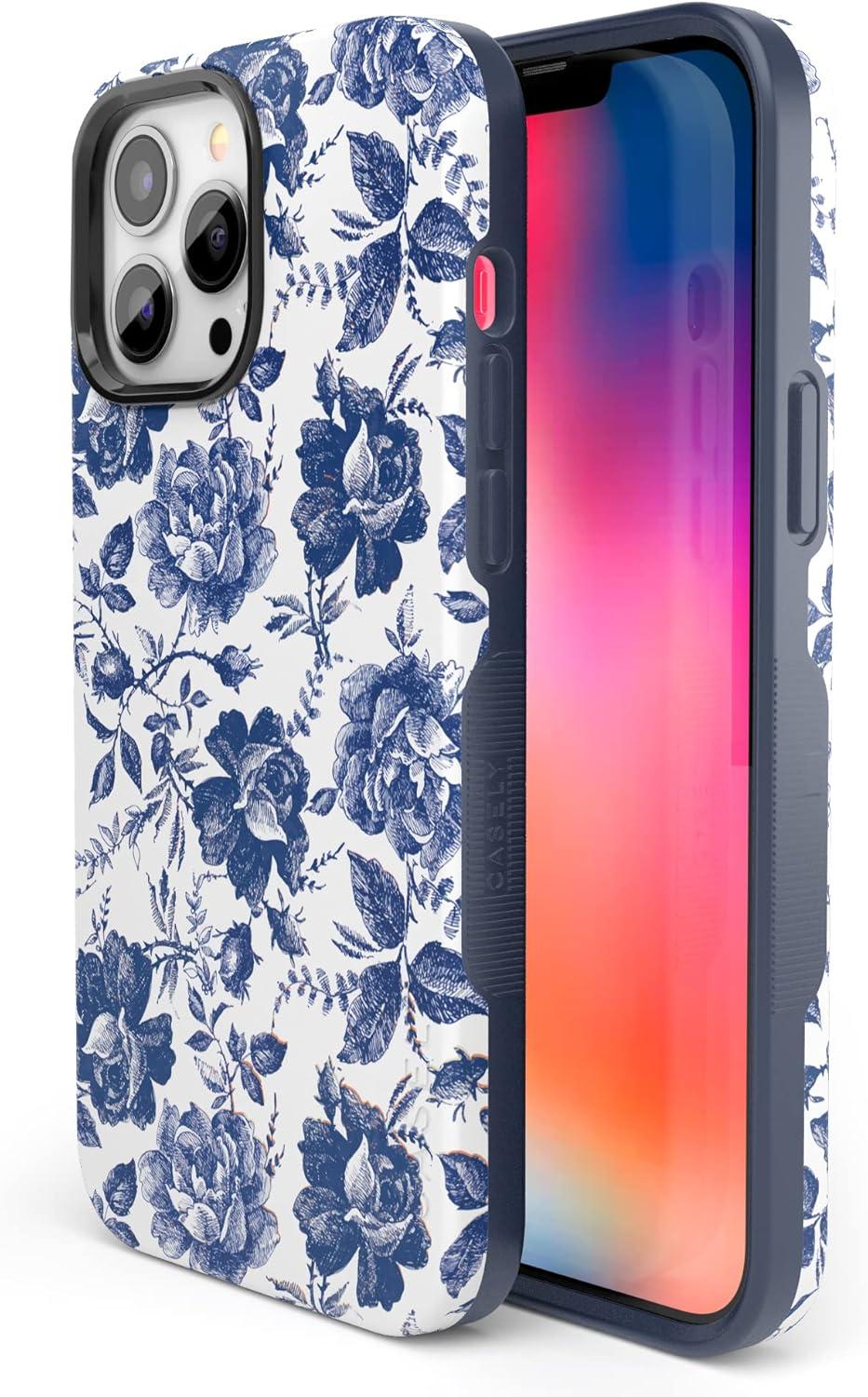 Casely iPhone 13 Pro Case | Ride The Wave | Pastel Rainbow Lined | Compatible with MagSafe | Bold Protective Design(Rose to Fame | Blue & White Rose Floral)