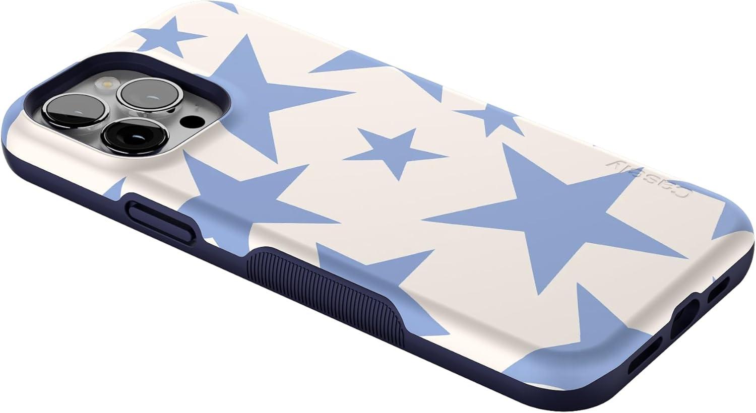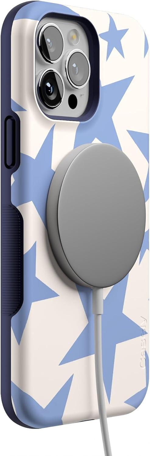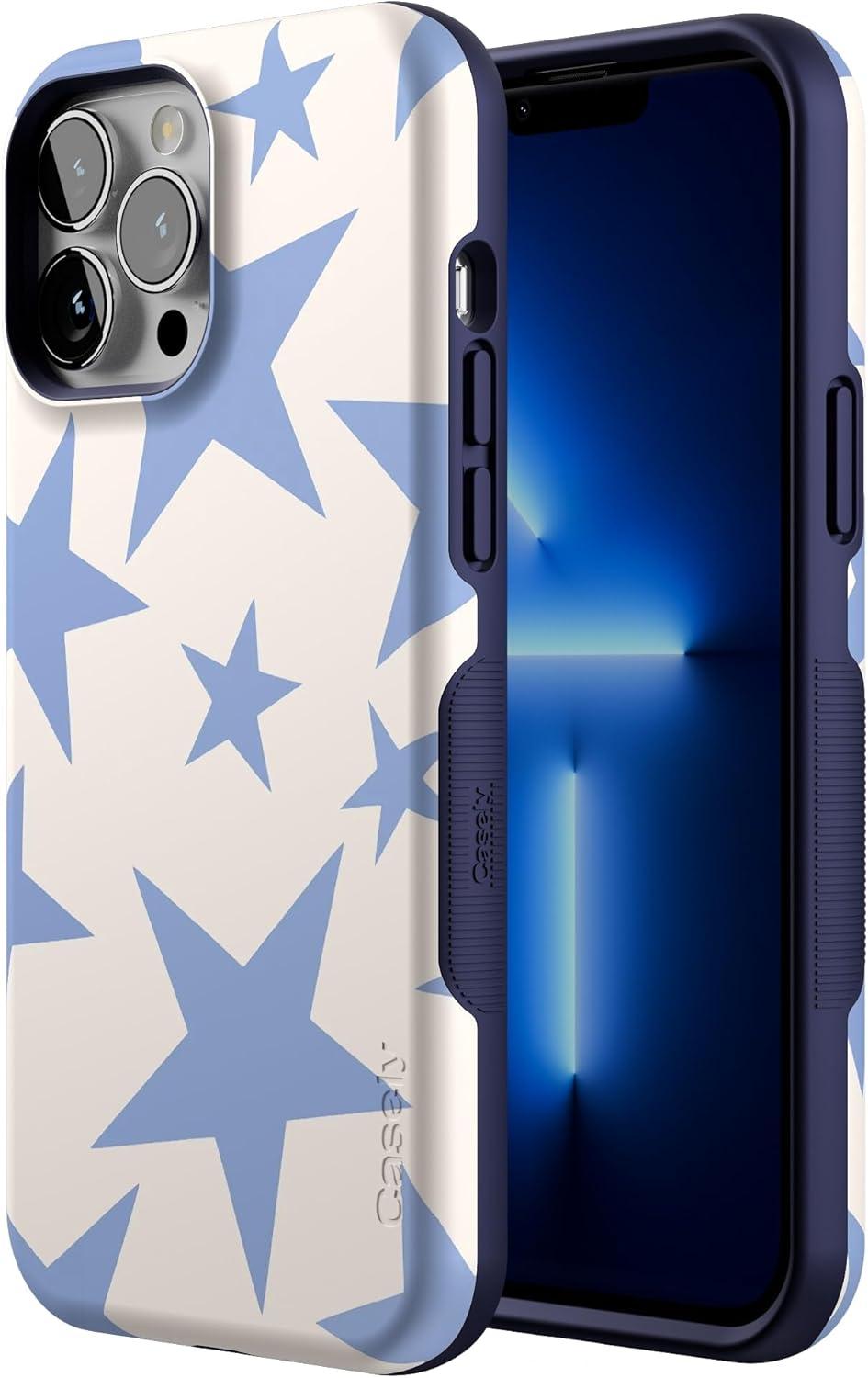 Casely iPhone 13 Pro Case | Ride The Wave | Pastel Rainbow Lined | Compatible with MagSafe | Bold Protective Design(Stars Align | Blue & White Stars)