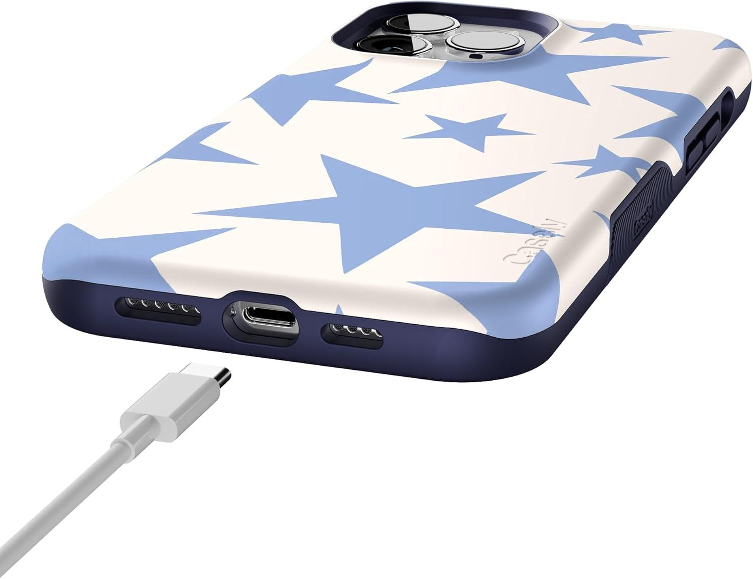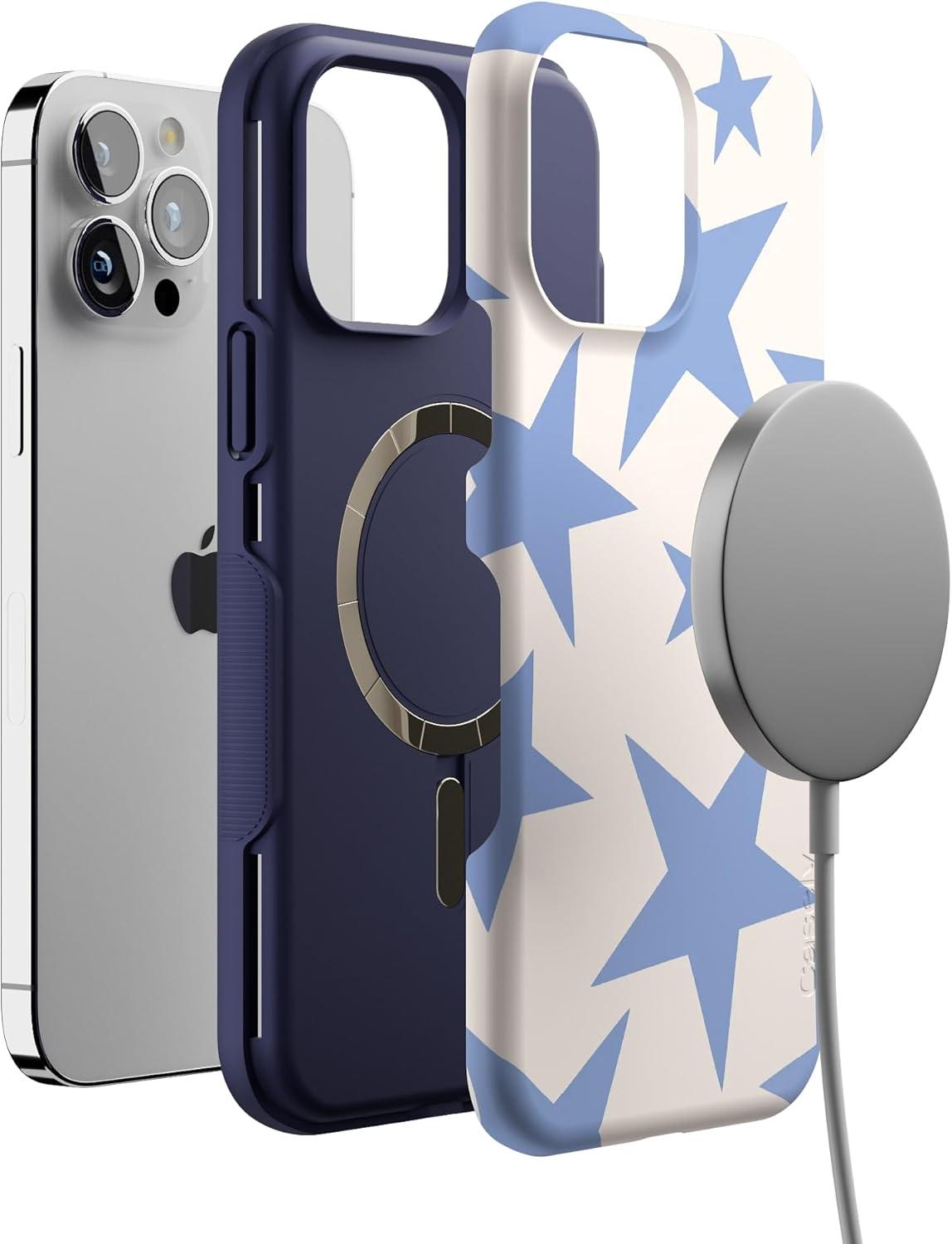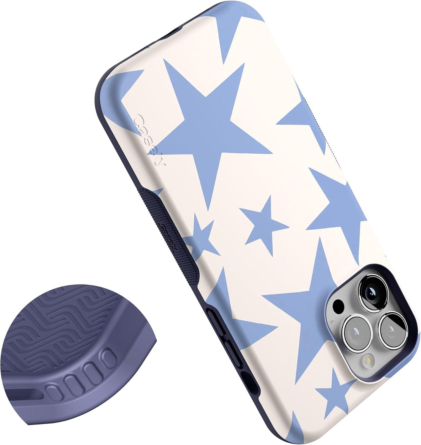 Casely iPhone 13 Pro Case | Ride The Wave | Pastel Rainbow Lined | Compatible with MagSafe | Bold Protective Design(Stars Align | Blue & White Stars)