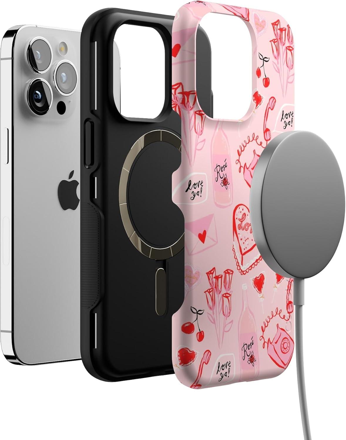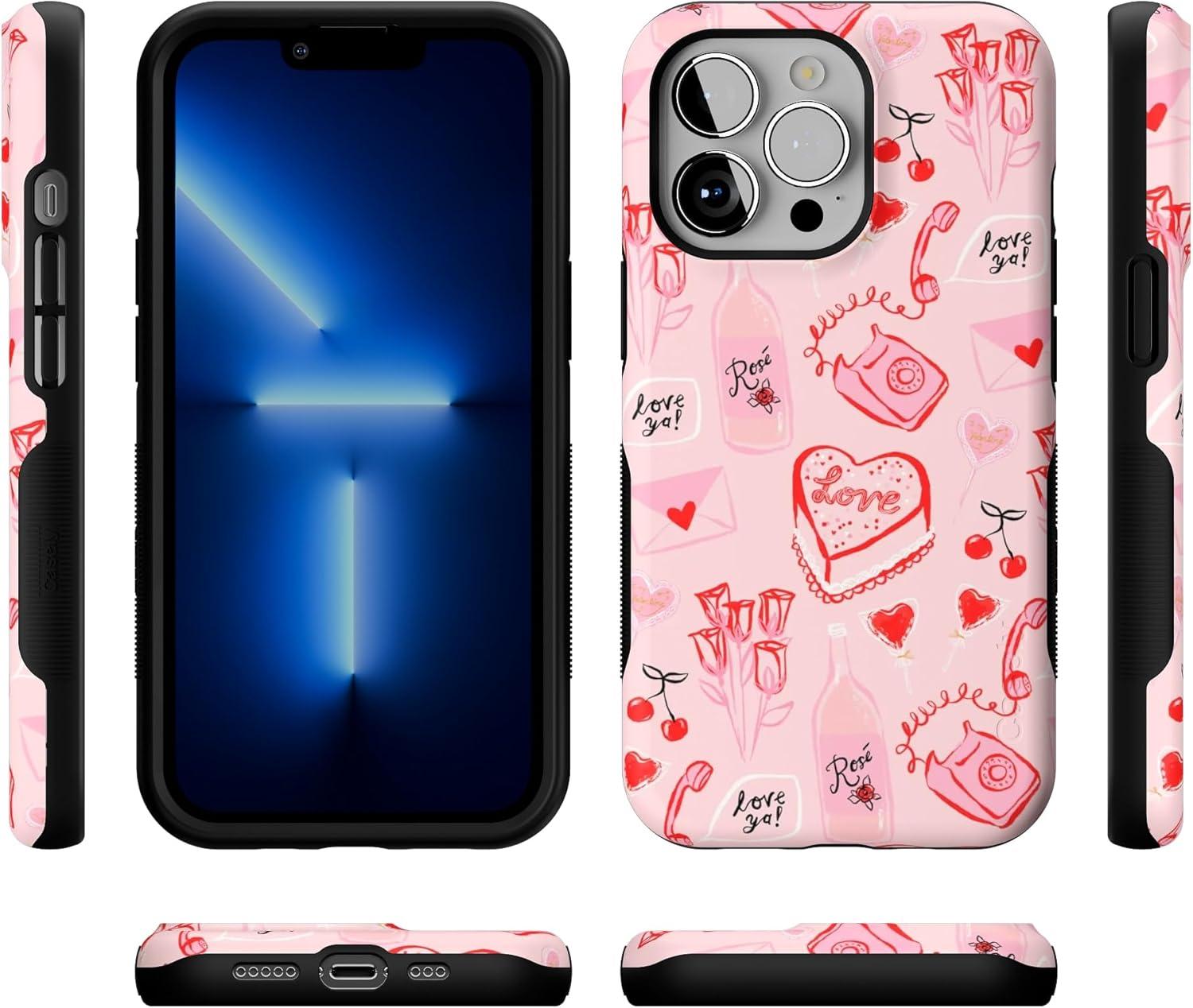 Casely iPhone 13 Pro Case | Ride The Wave | Pastel Rainbow Lined | Compatible with MagSafe | Bold Protective Design(That’s Amore | Valentine’s)