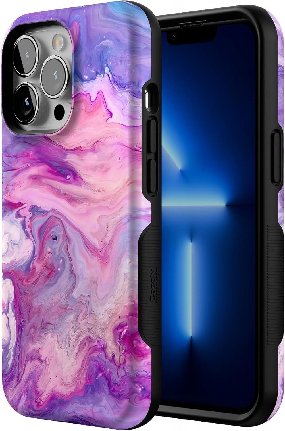 Casely iPhone 13 Pro Case | Ride The Wave | Pastel Rainbow Lined | Compatible with MagSafe | Bold Protective Design(Tie Dying Over You | Purple Marble)