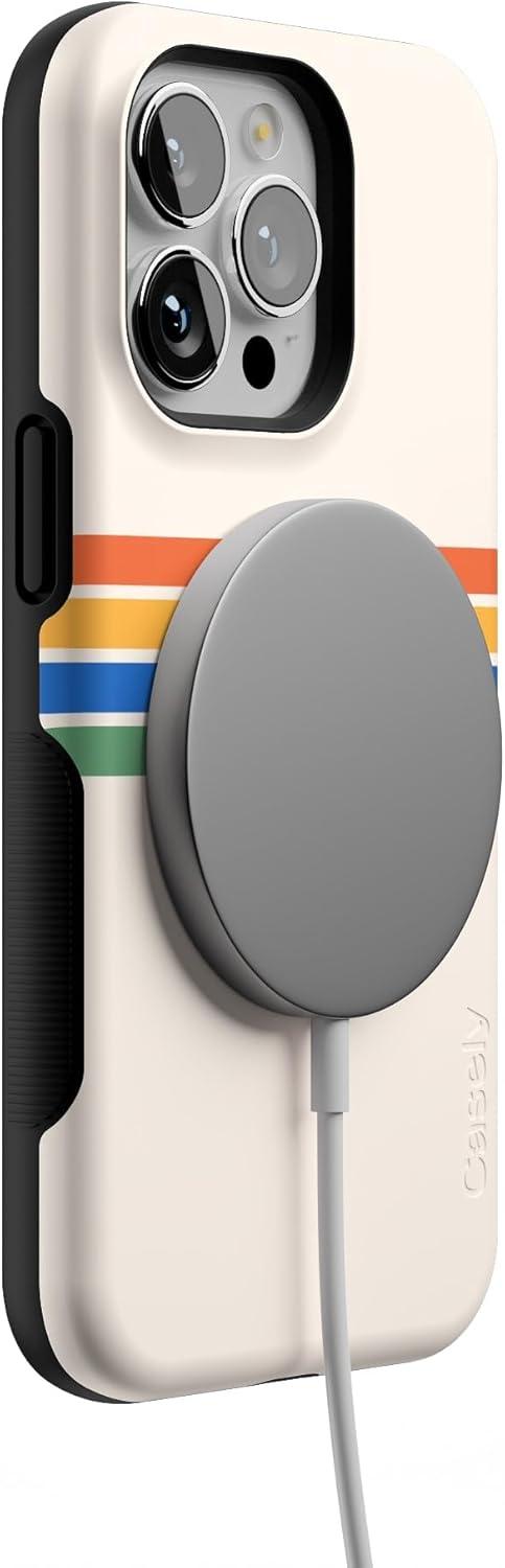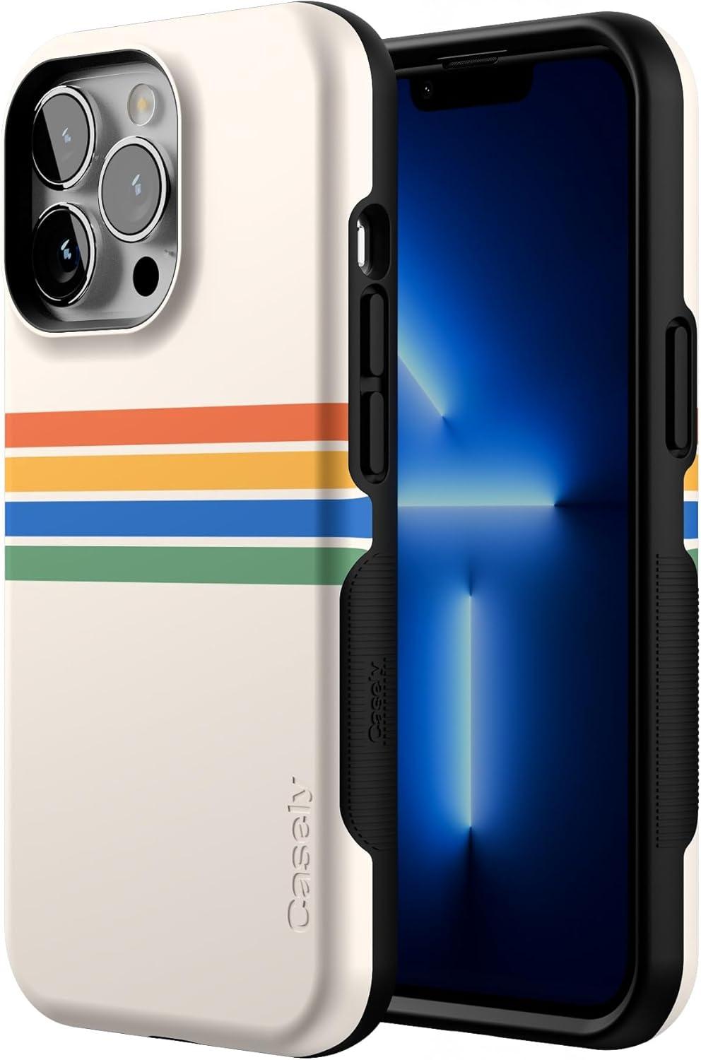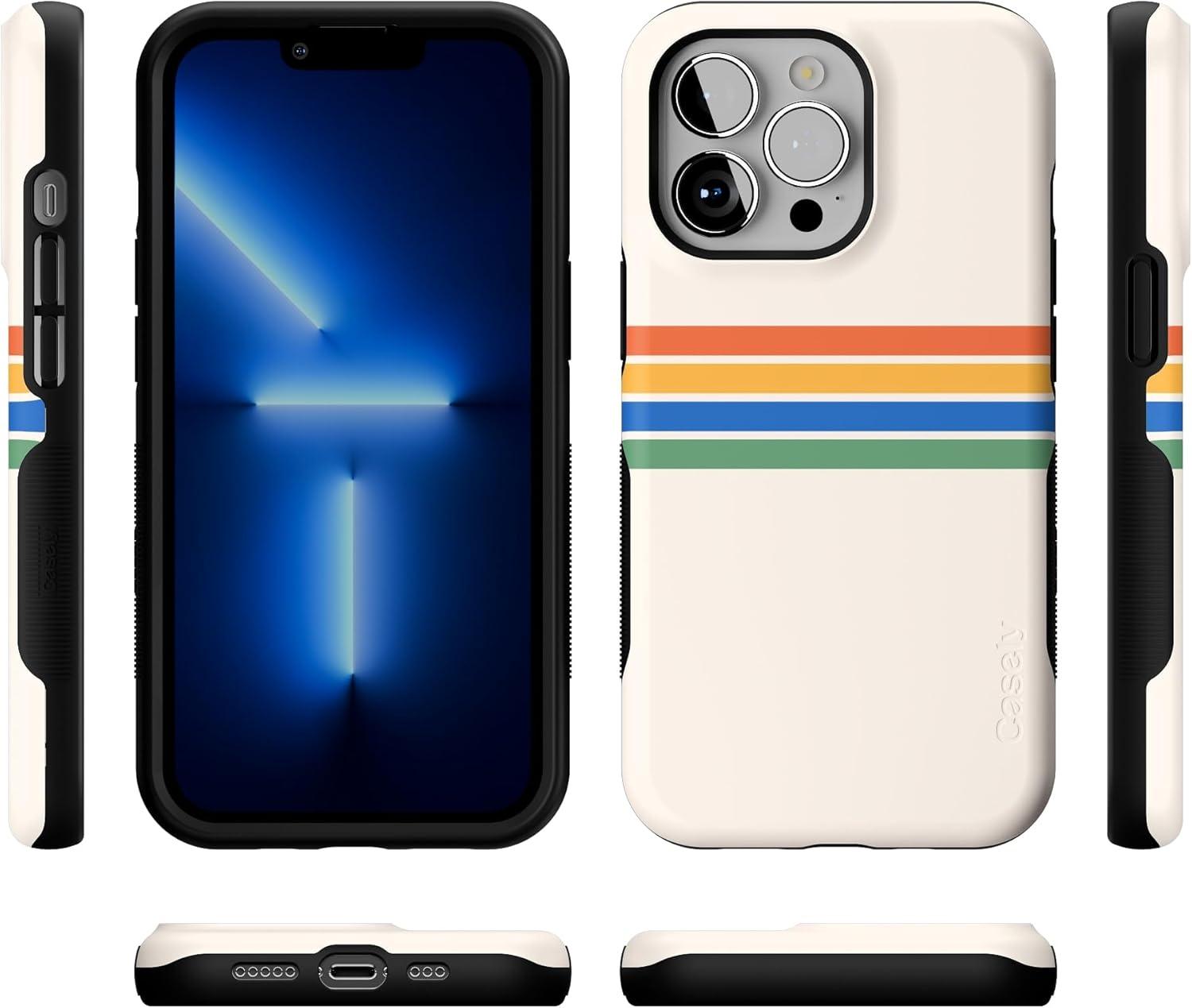 Casely iPhone 13 Pro Case | Ride The Wave | Pastel Rainbow Lined | Compatible with MagSafe | Bold Protective Design(Totally Groovy | Rainbow Stripes Color Block)