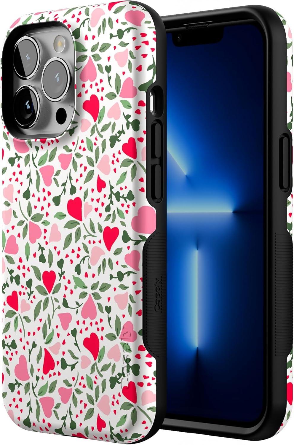 Casely iPhone 13 Pro Case | Ride The Wave | Pastel Rainbow Lined | Compatible with MagSafe | Bold Protective Design(Vines of Love | Floral Heart)