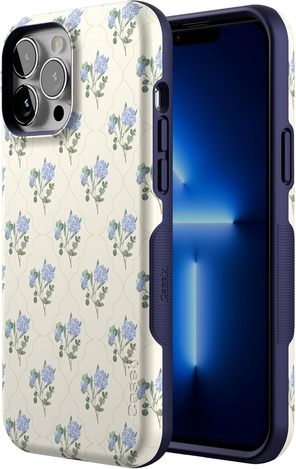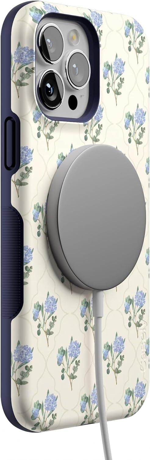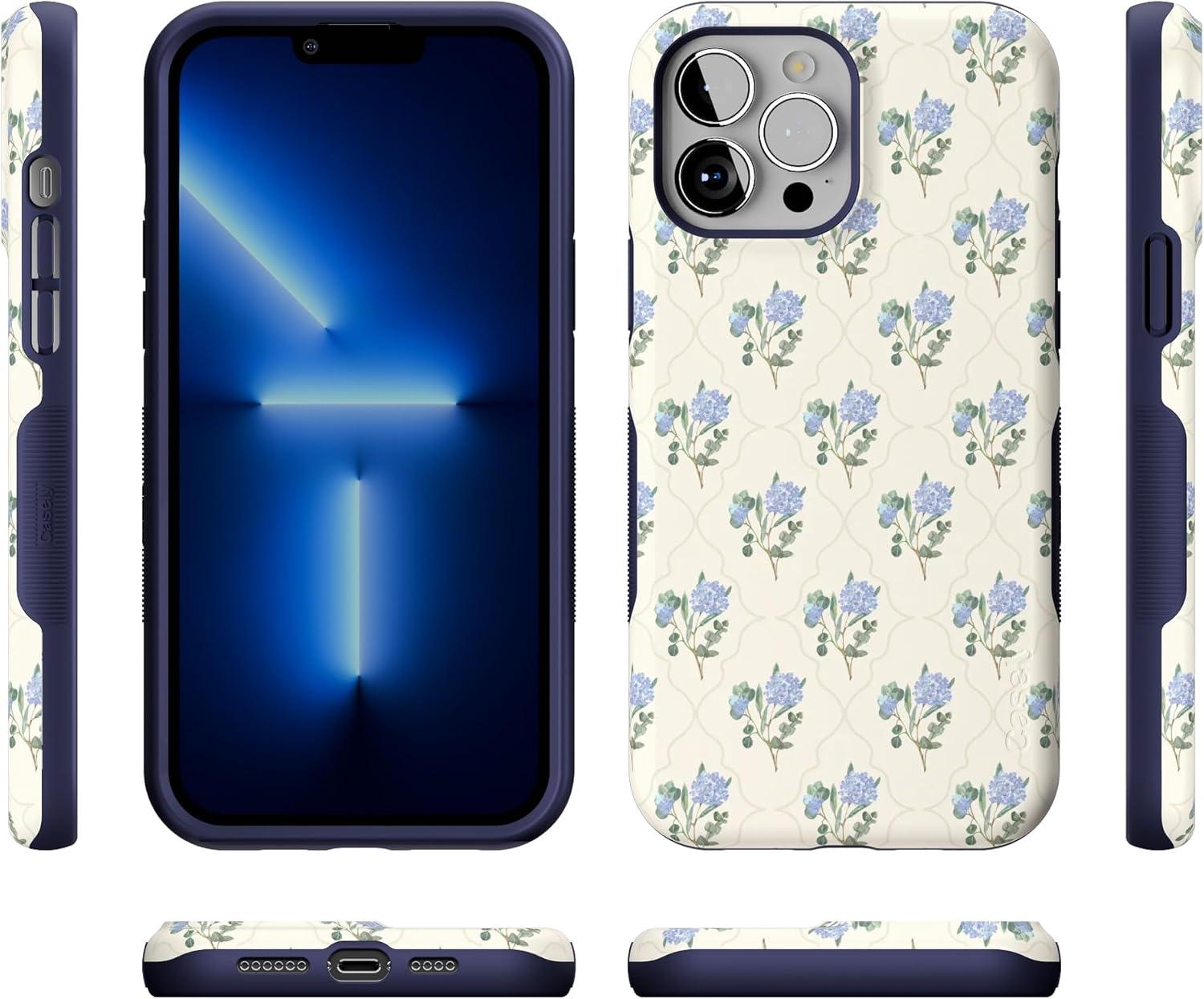 Casely iPhone 13 Pro Case | Ride The Wave | Pastel Rainbow Lined | Compatible with MagSafe | Bold Protective Design(Vintage Garden | Blue Hydrangea)