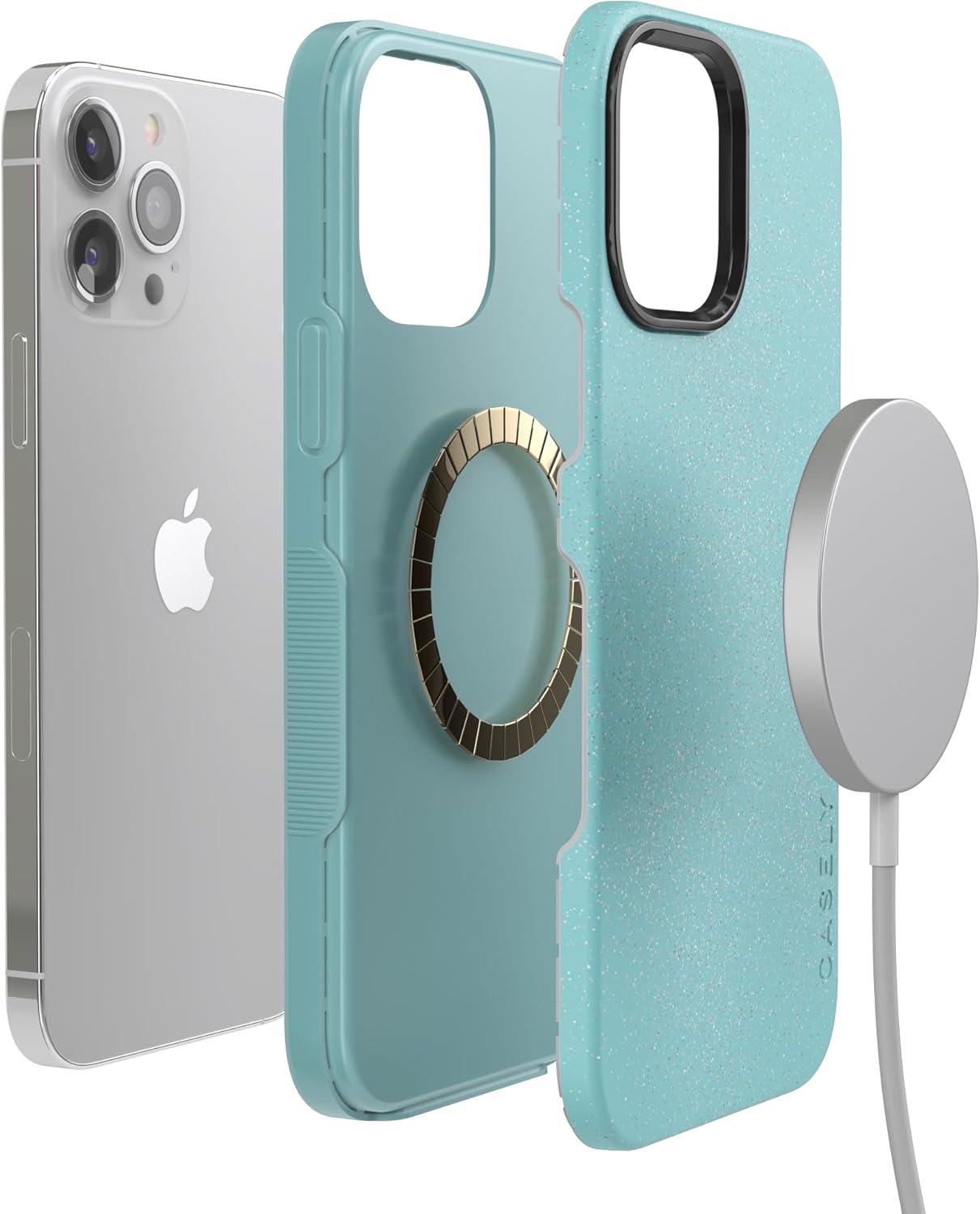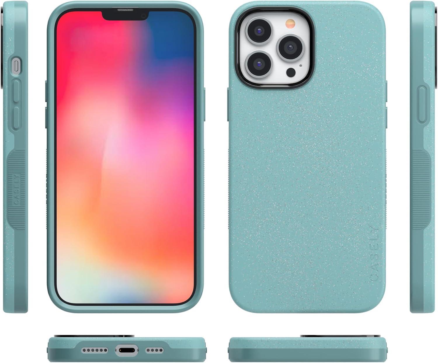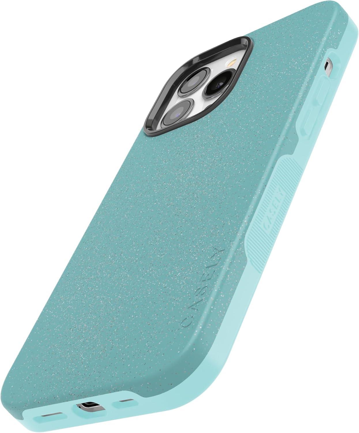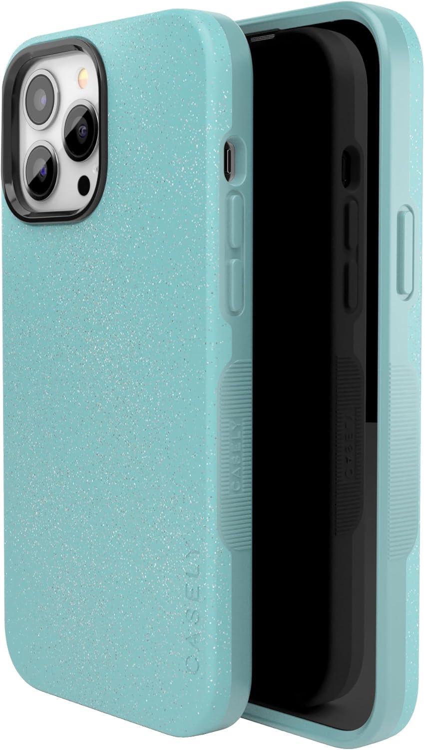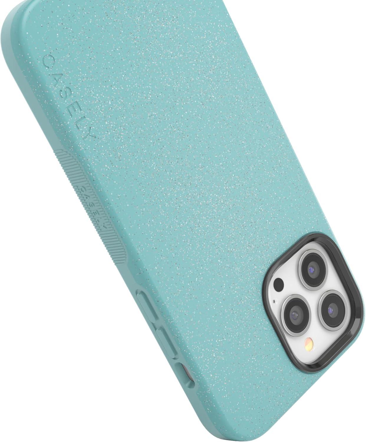 Casely iPhone 13 Pro Case | Sage Garden | Green Floral | Bold Protective Design | Compatible with MagSafe(Aquamarine | Ocean Blue Shimmer Glitter)