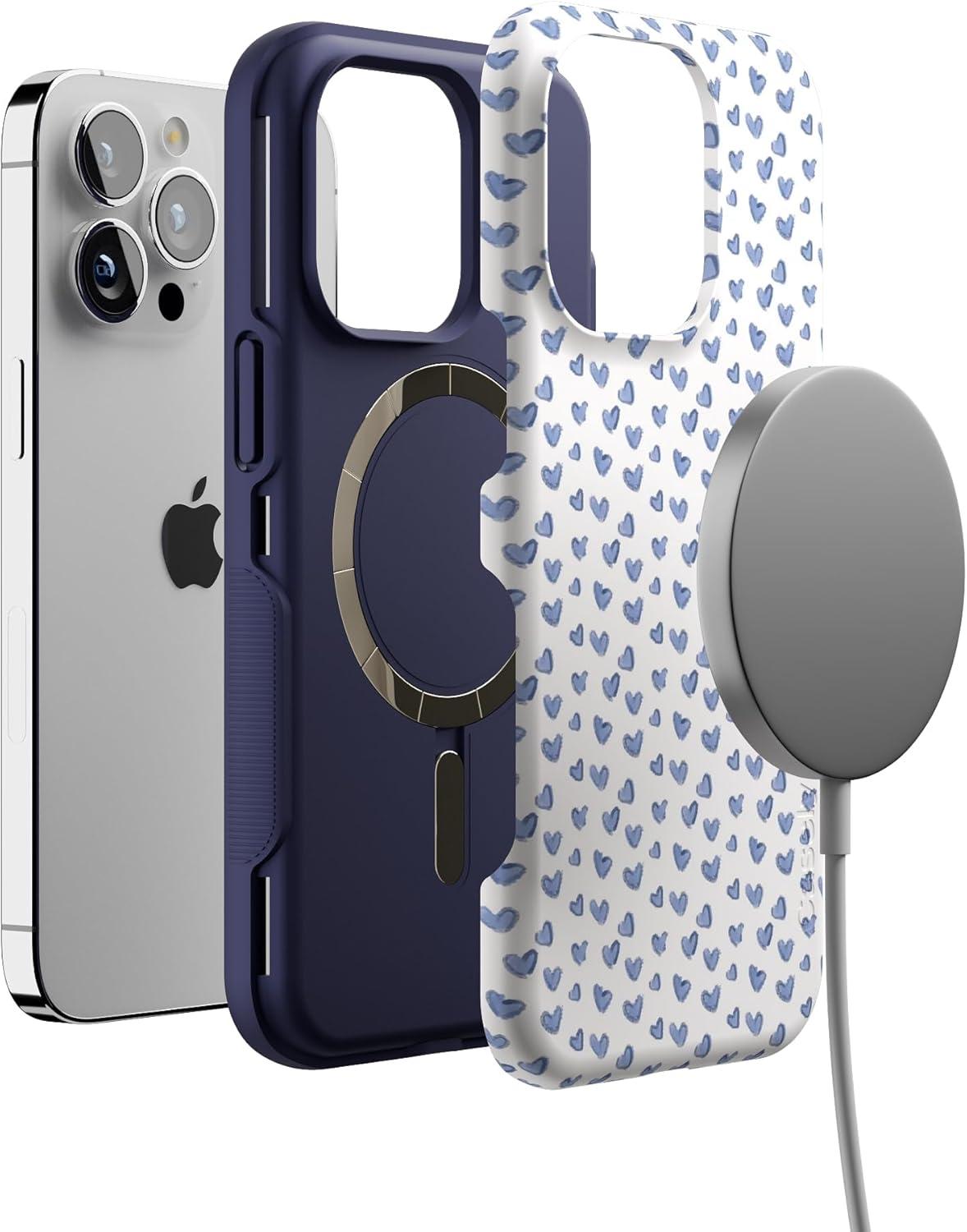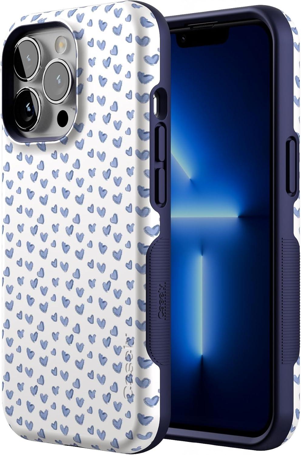Casely iPhone 13 Pro Case | Sage Garden | Green Floral | Bold Protective Design | Compatible with MagSafe(Lovebug | Blue Hearts)