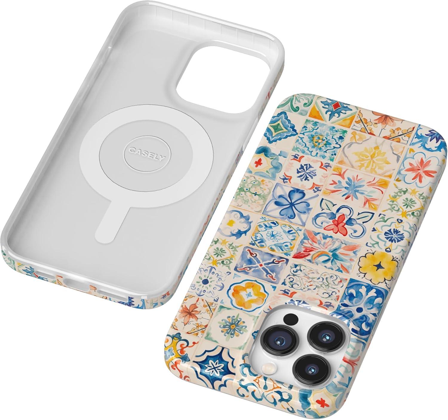 Casely iPhone 13 Pro Max Case | Clear Skies | Clear Shimmer | Compatible with MagSafe | Classic Ultra Slim Design(Tuscan Tiles | Dolce Vita)