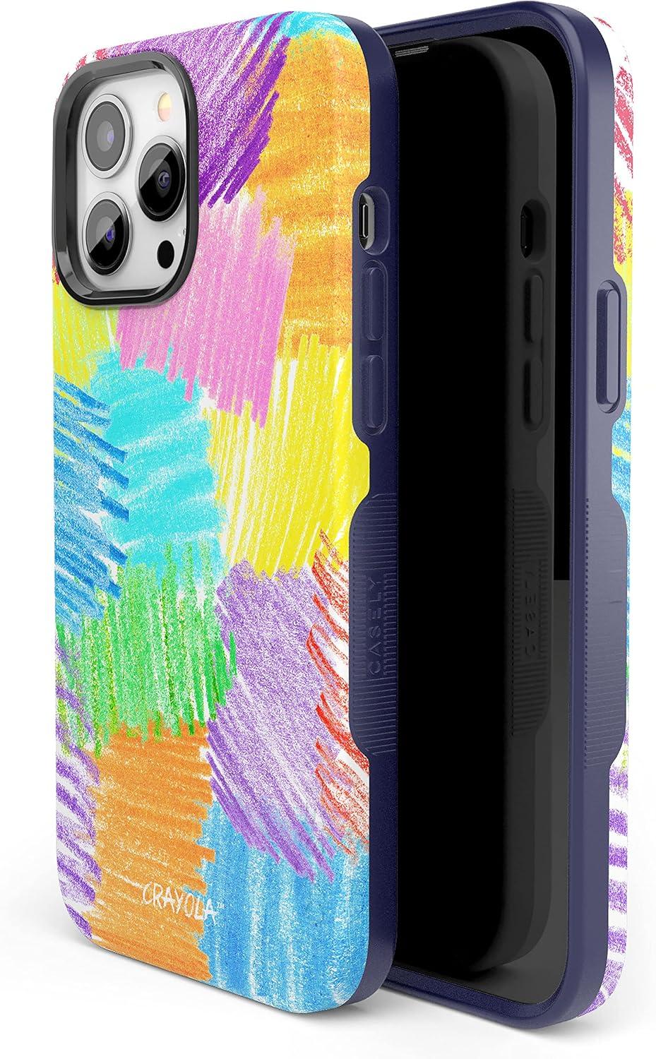 Casely iPhone 13 Pro Max Case | Compatible with MagSafe | Scribble Me That | Crayola Rainbow Pencil Case