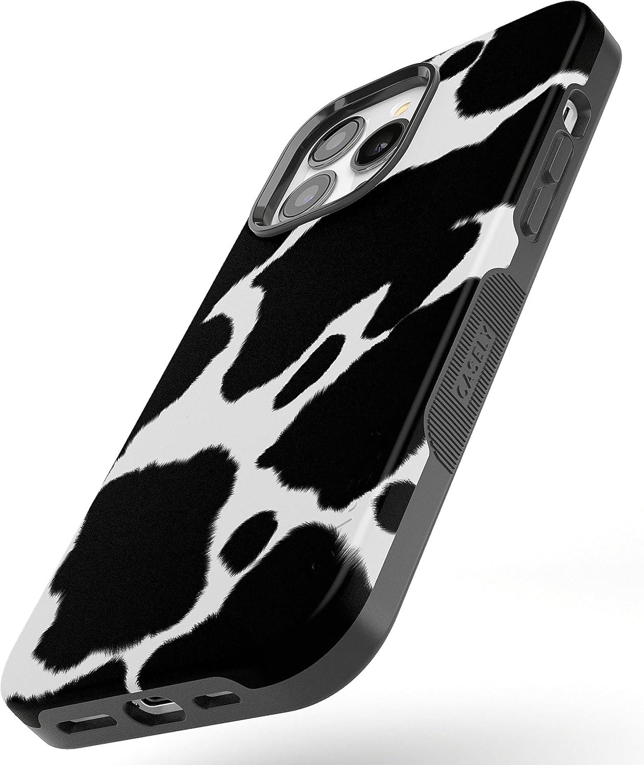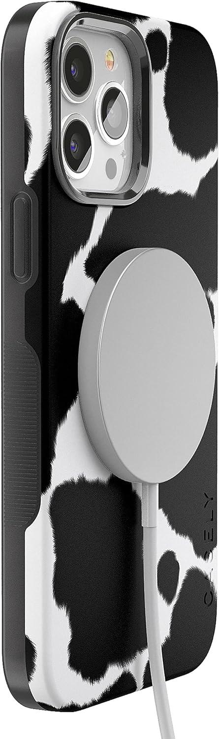 Casely iPhone 13 Pro Max Case | Falling for You | Plum Floral | Bold Protective Design | Compatible with MagSafe(Current MOOd | Cow Print)