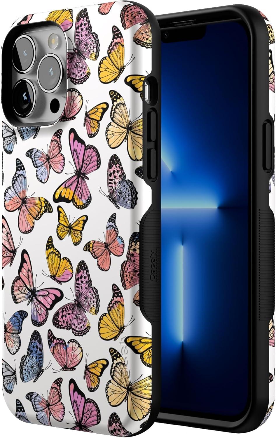 Casely iPhone 13 Pro Max Case | Falling for You | Plum Floral | Bold Protective Design | Compatible with MagSafe(Free Spirit | Rainbow Butterfly)