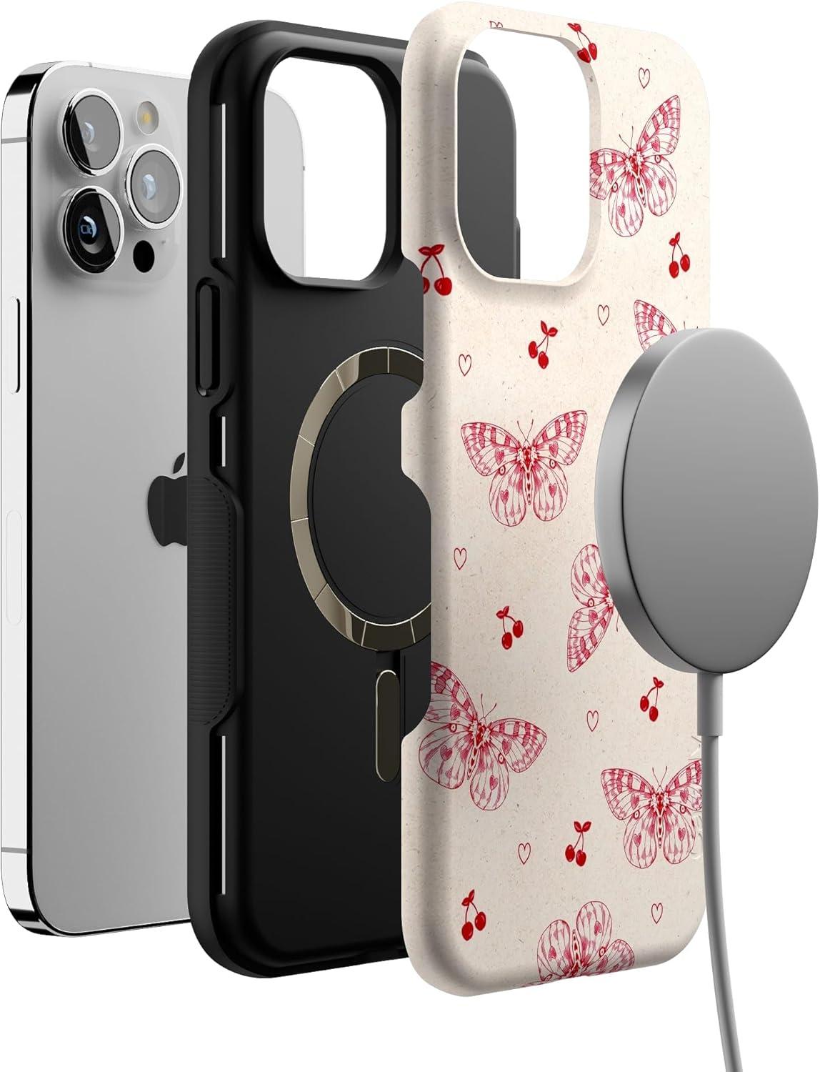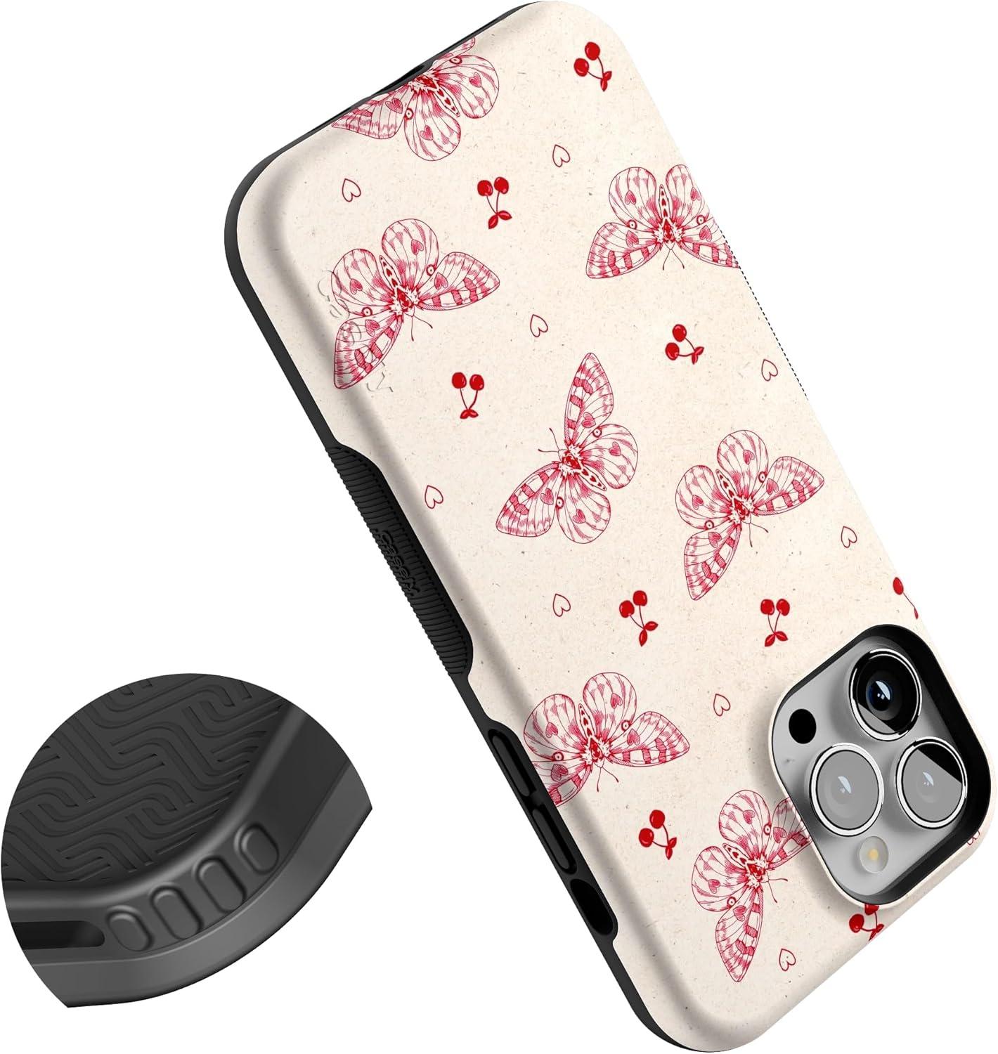 Casely iPhone 13 Pro Max Case | Falling for You | Plum Floral | Bold Protective Design | Compatible with MagSafe(Heart Flutters | Butterfly)