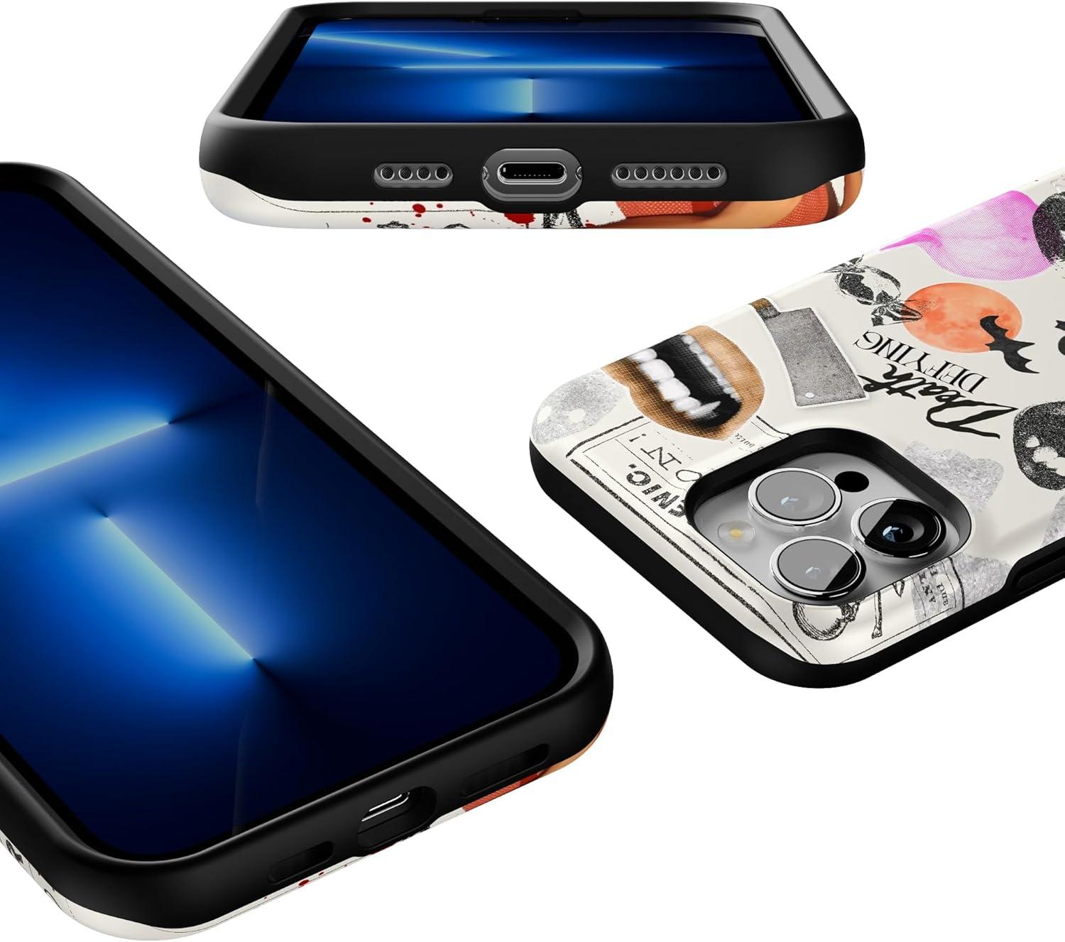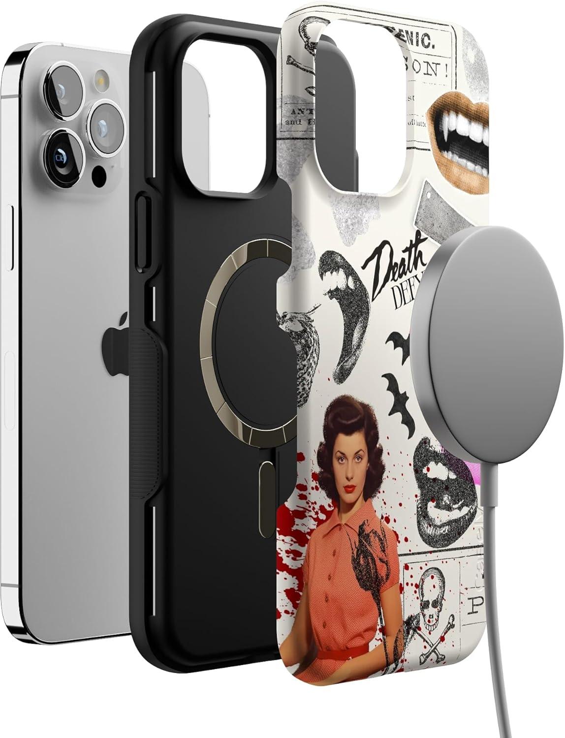 Casely iPhone 13 Pro Max Case | Falling for You | Plum Floral | Bold Protective Design | Compatible with MagSafe(If You Dare | Horror Collage)