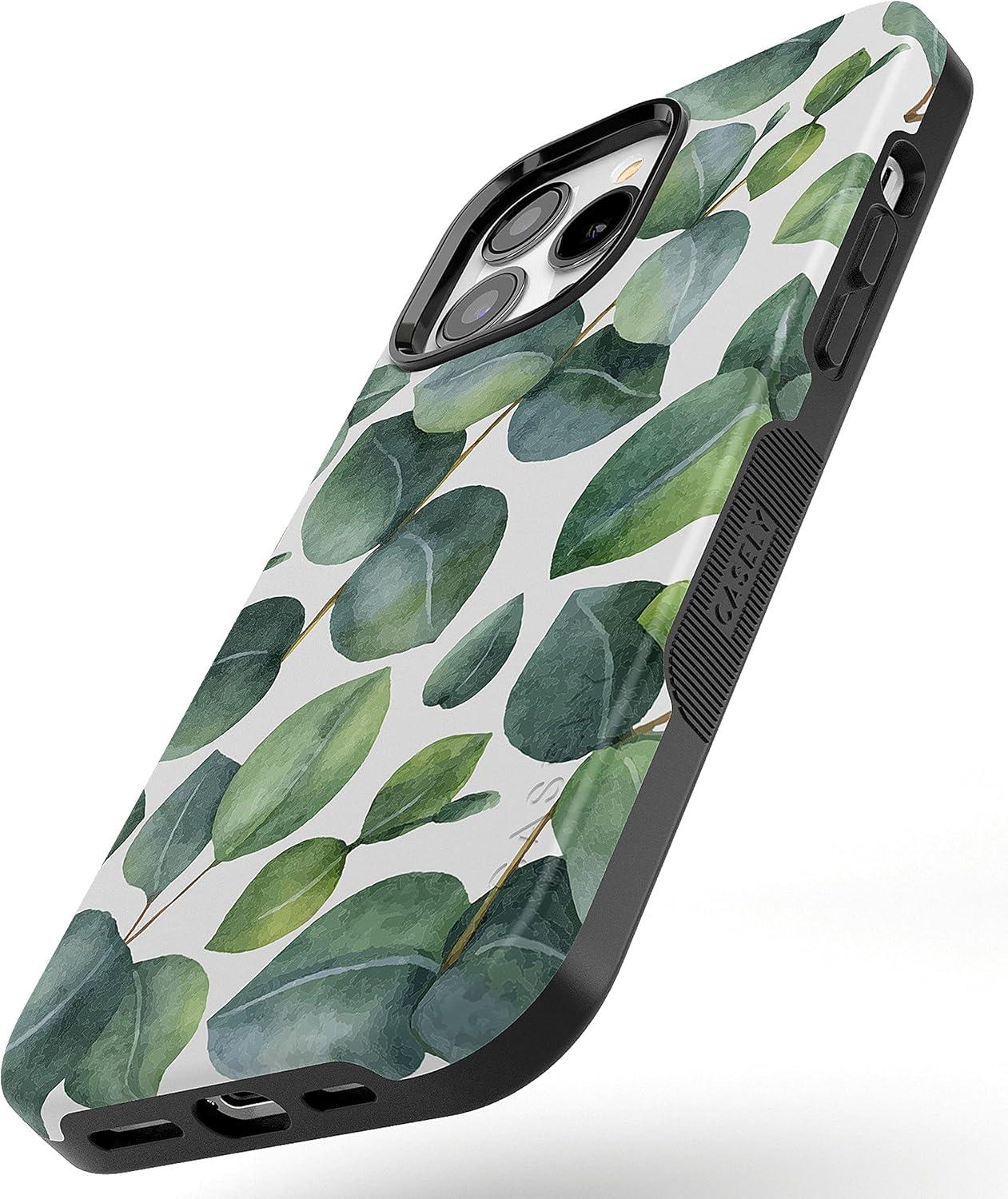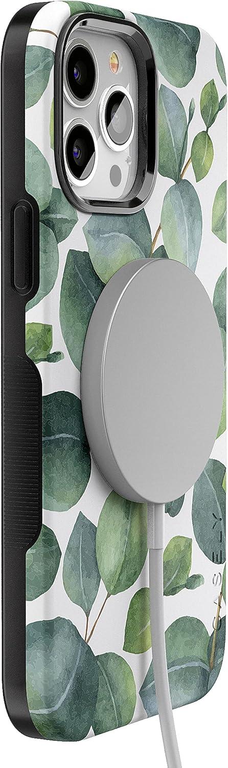 Casely iPhone 13 Pro Max Case | Falling for You | Plum Floral | Bold Protective Design | Compatible with MagSafe(Leaf Me Alone | Green Floral Print)