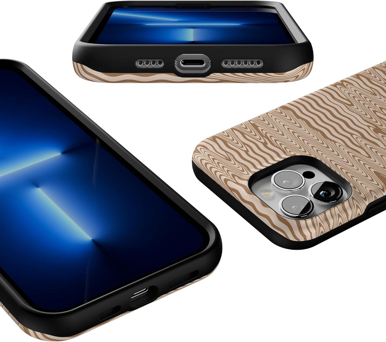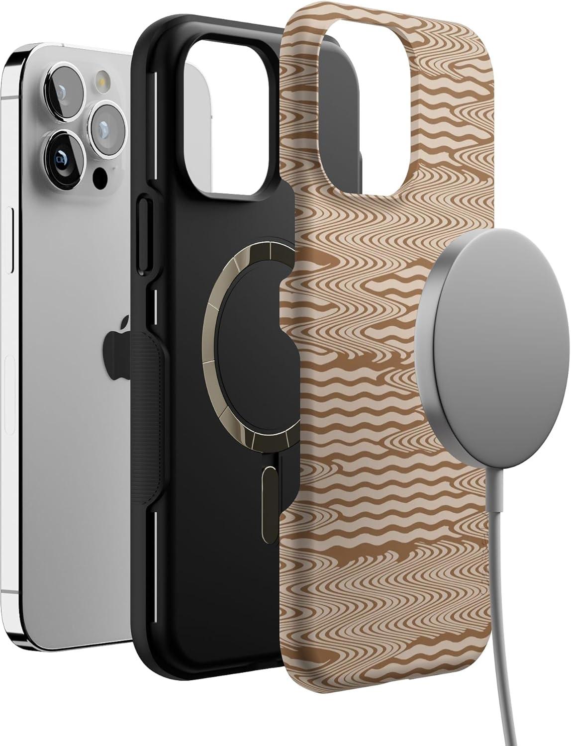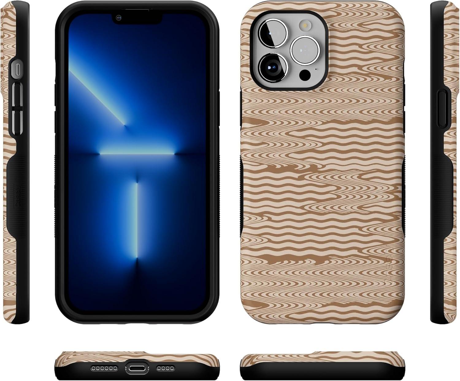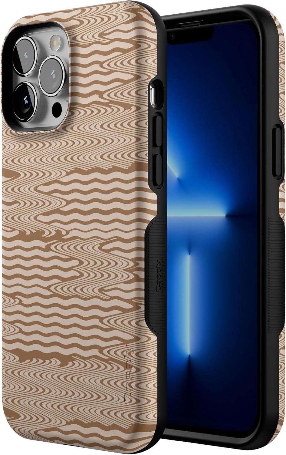 Casely iPhone 13 Pro Max Case | Falling for You | Plum Floral | Bold Protective Design | Compatible with MagSafe(Mocha Ripple | Brown Waves)