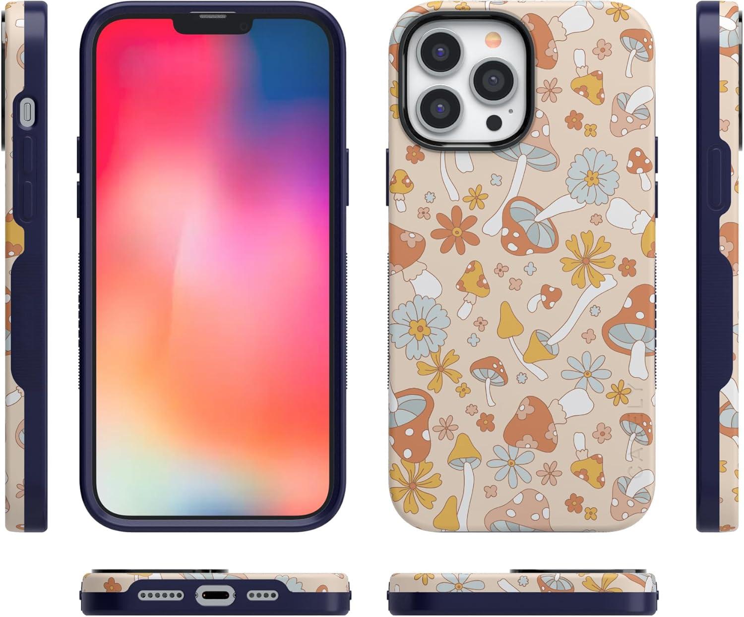 Casely iPhone 13 Pro Max Case | Falling for You | Plum Floral | Bold Protective Design | Compatible with MagSafe(Mushroom Magic | Retro Floral)