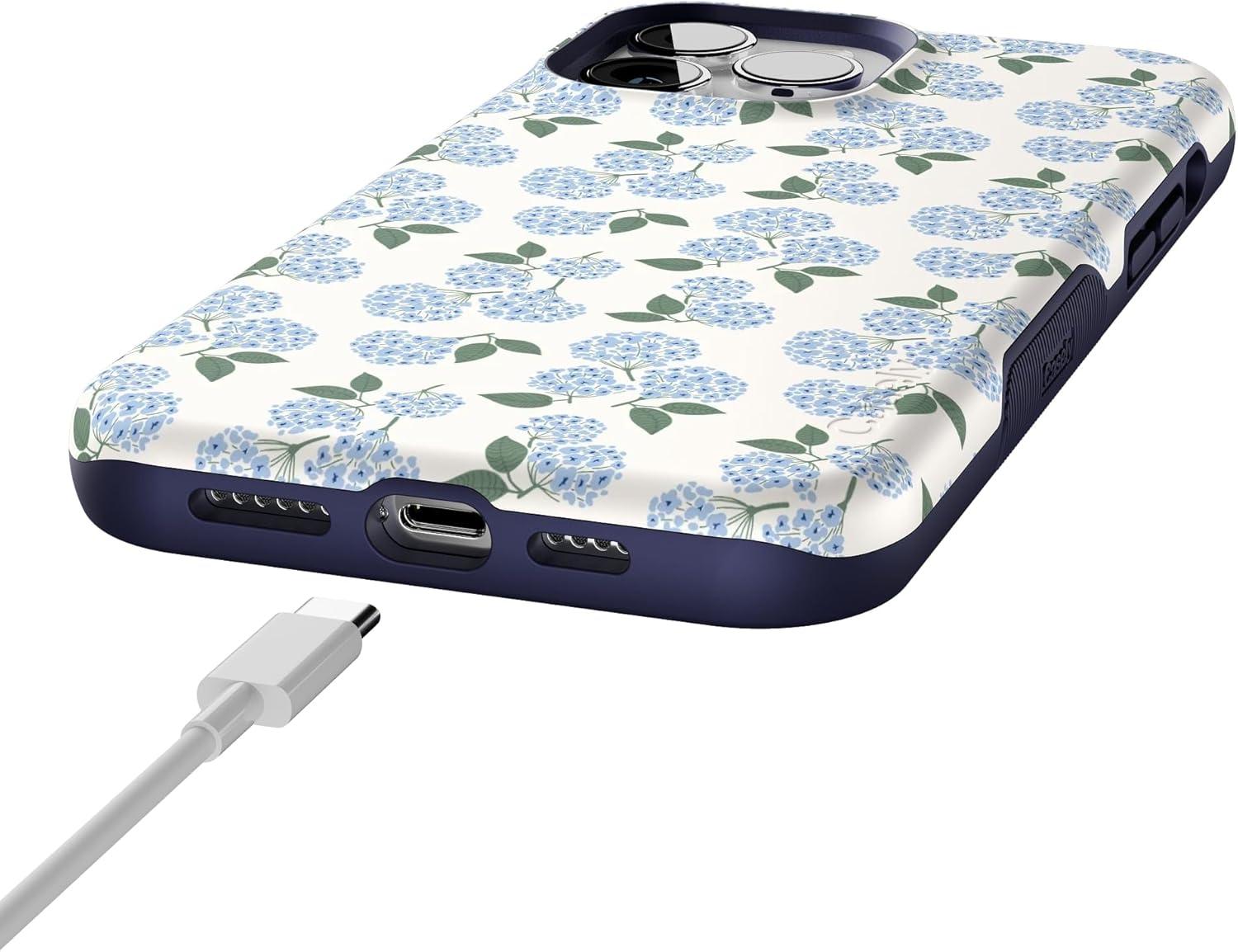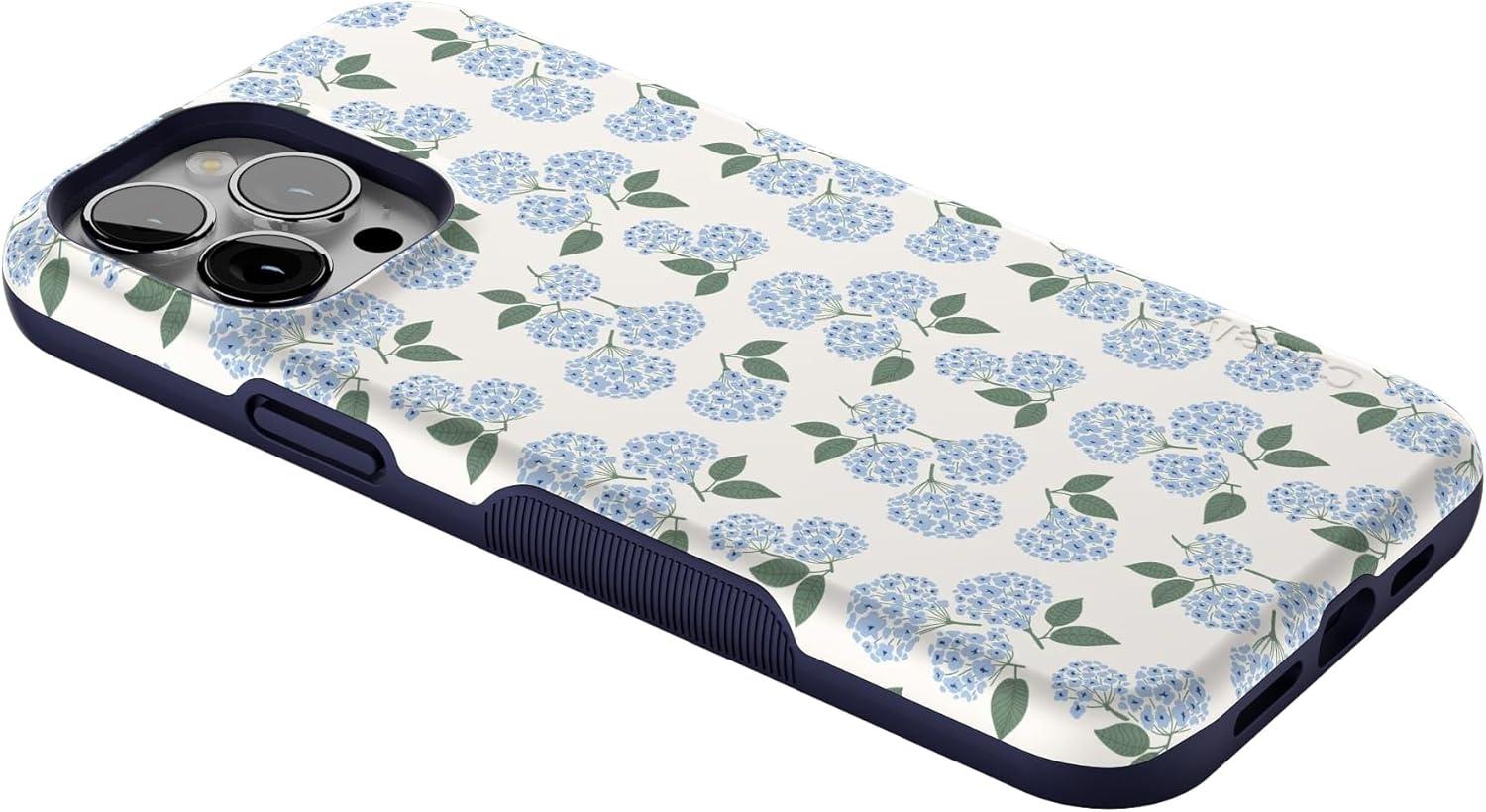 Casely iPhone 13 Pro Max Case | Falling for You | Plum Floral | Bold Protective Design | Compatible with MagSafe(Nantucket Cottage | Blue Hydrangea)