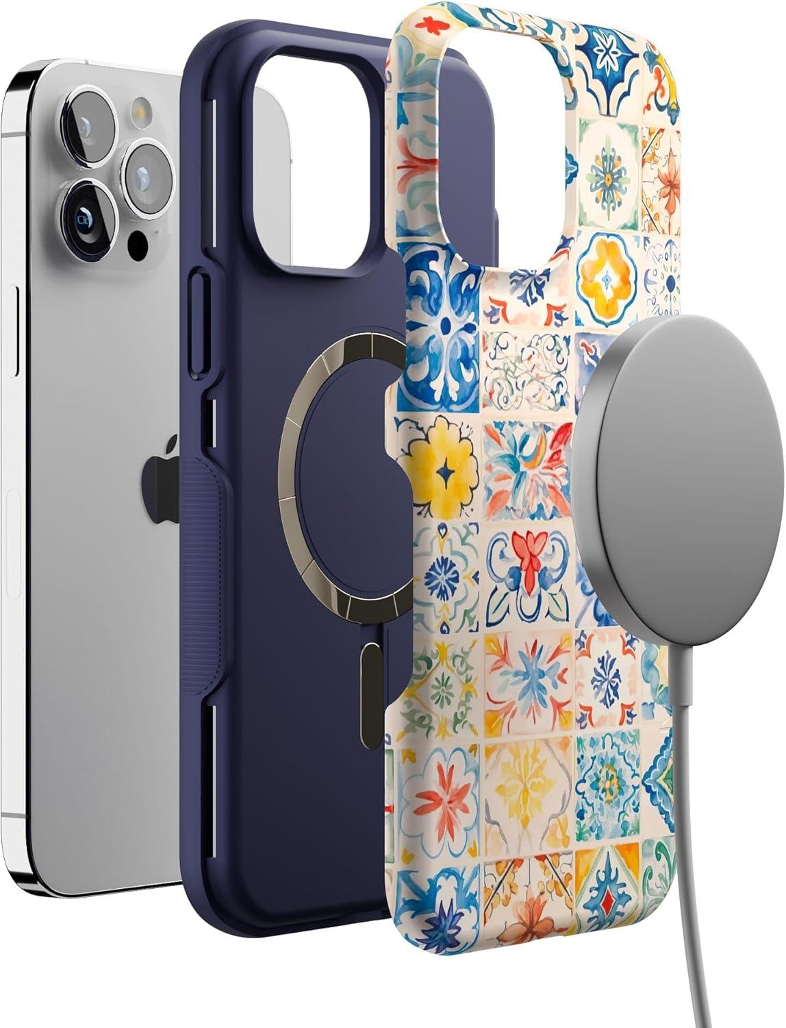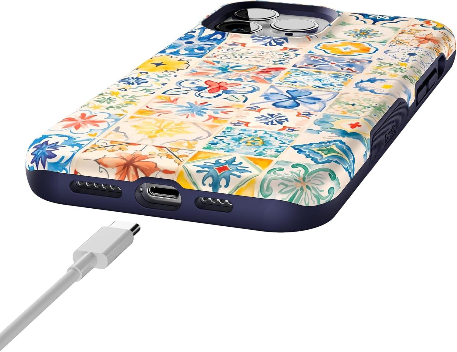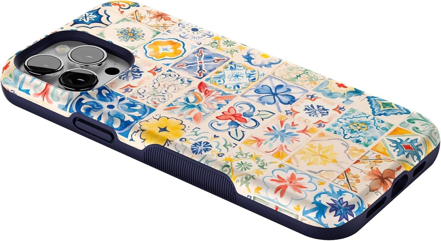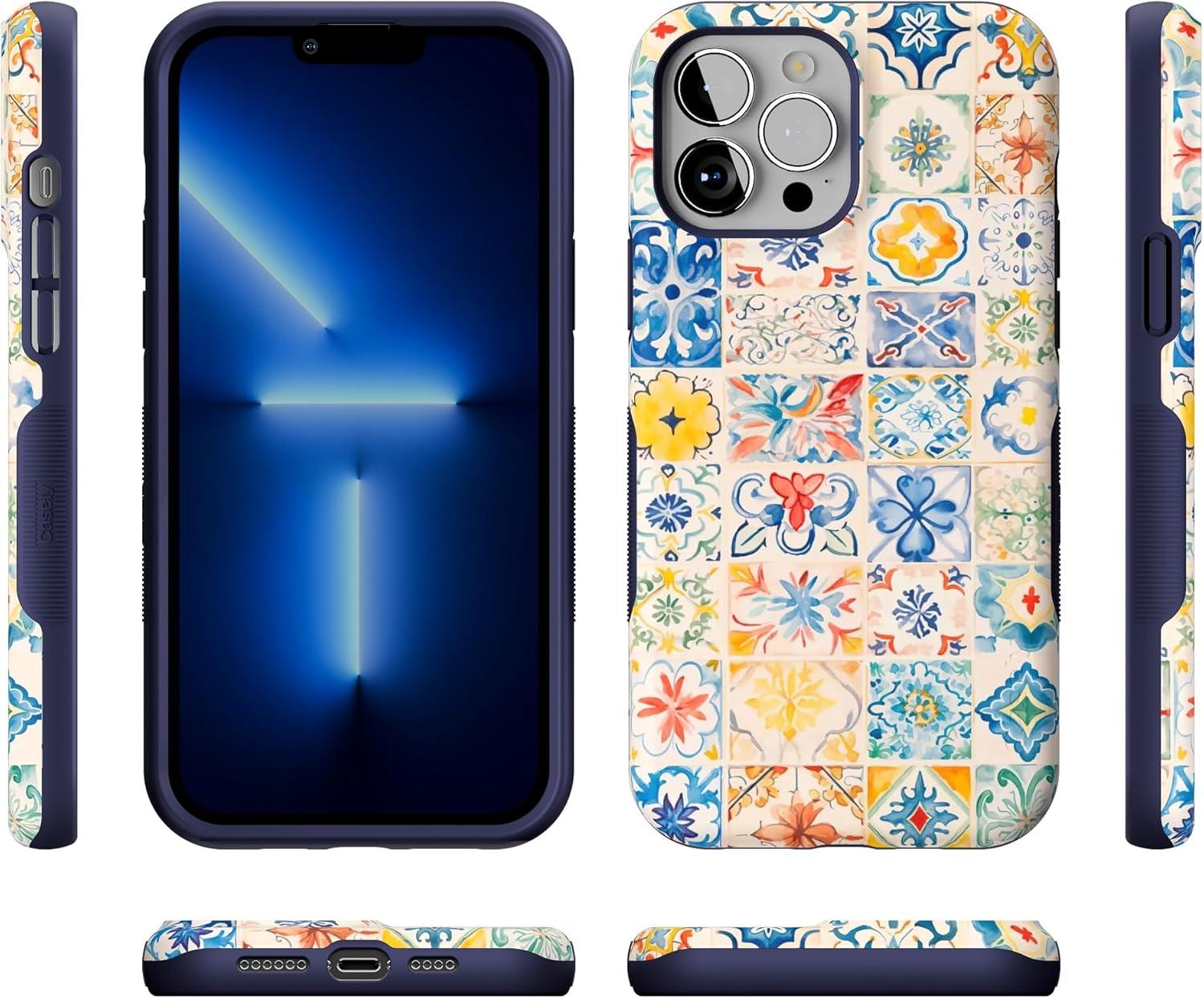Casely iPhone 13 Pro Max Case | Falling for You | Plum Floral | Bold Protective Design | Compatible with MagSafe(Tuscan Tiles | Dolce Vita)