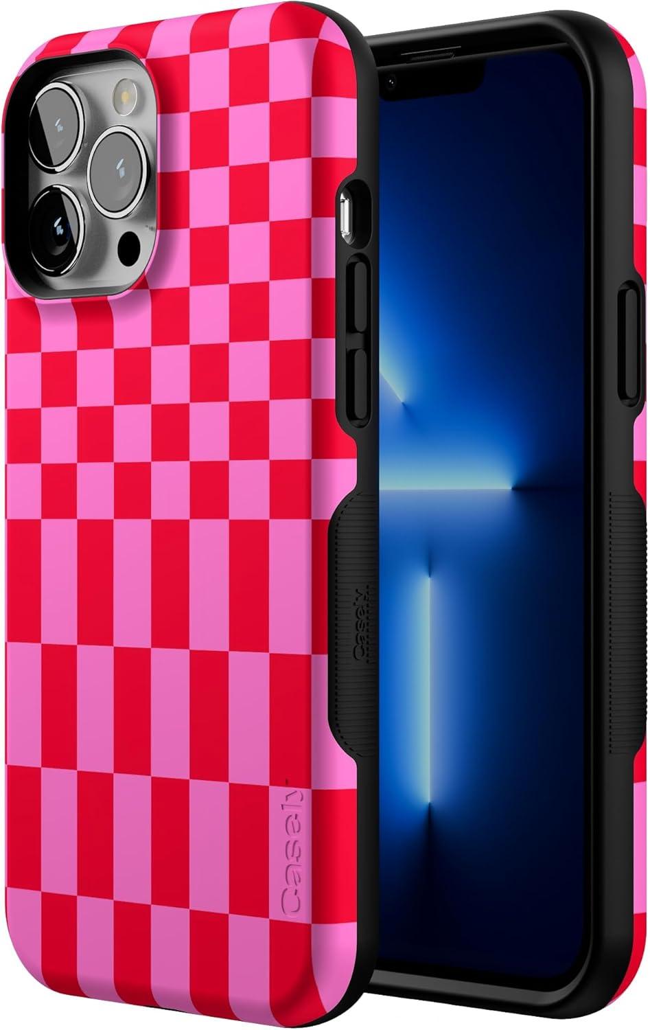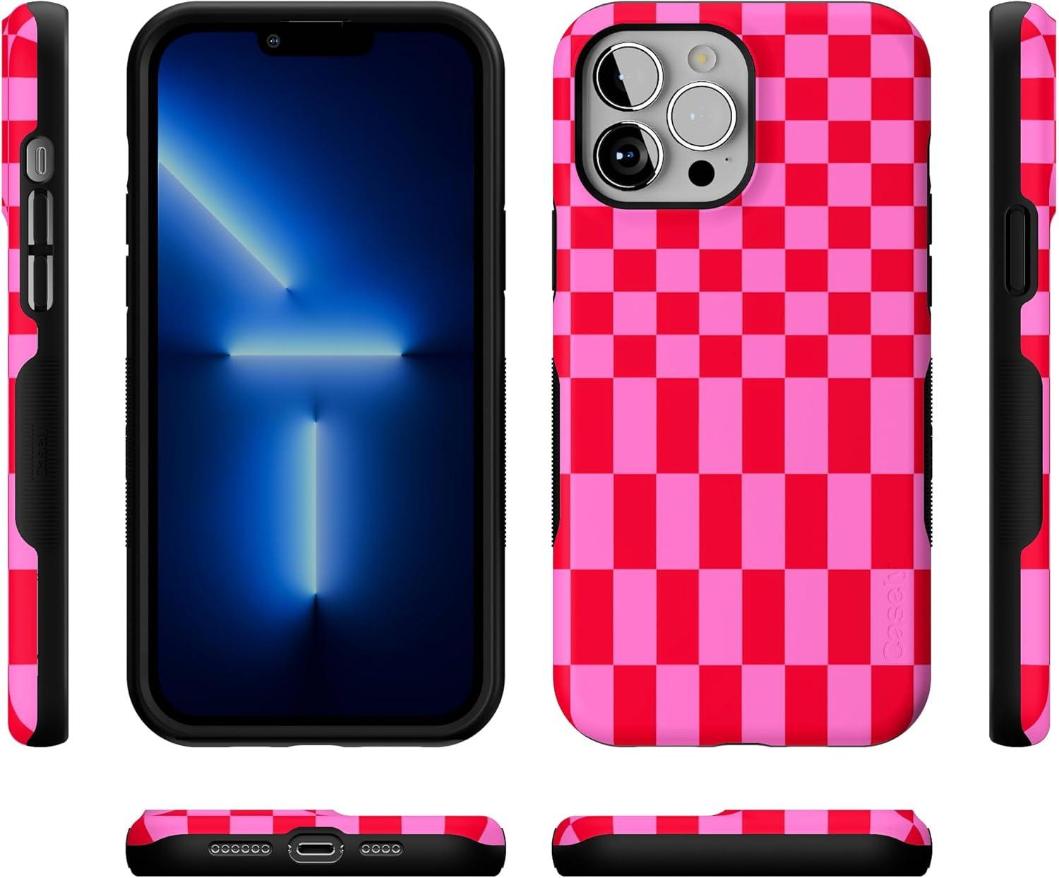 Casely iPhone 13 Pro Max Case | Falling for You | Plum Floral | Bold Protective Design | Compatible with MagSafe(Vibe Check | Pink Checkerboard)
