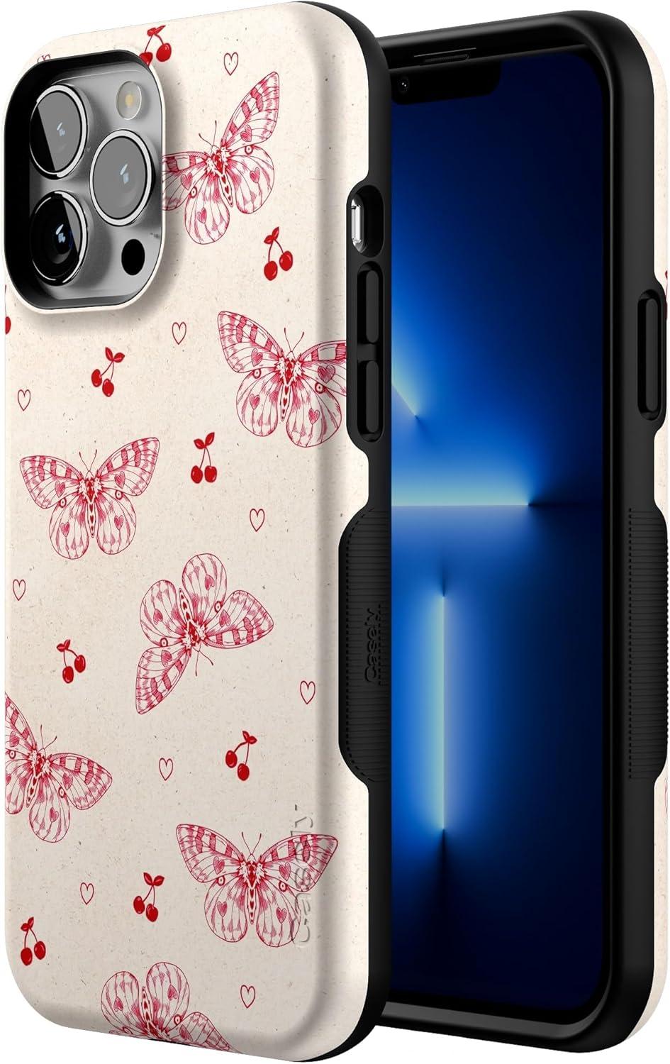 Casely iPhone 13 Pro Max Case | Field of Flowers | Pastel Floral | Compatible with MagSafe | Bold Protective Design(Heart Flutters | Butterfly)