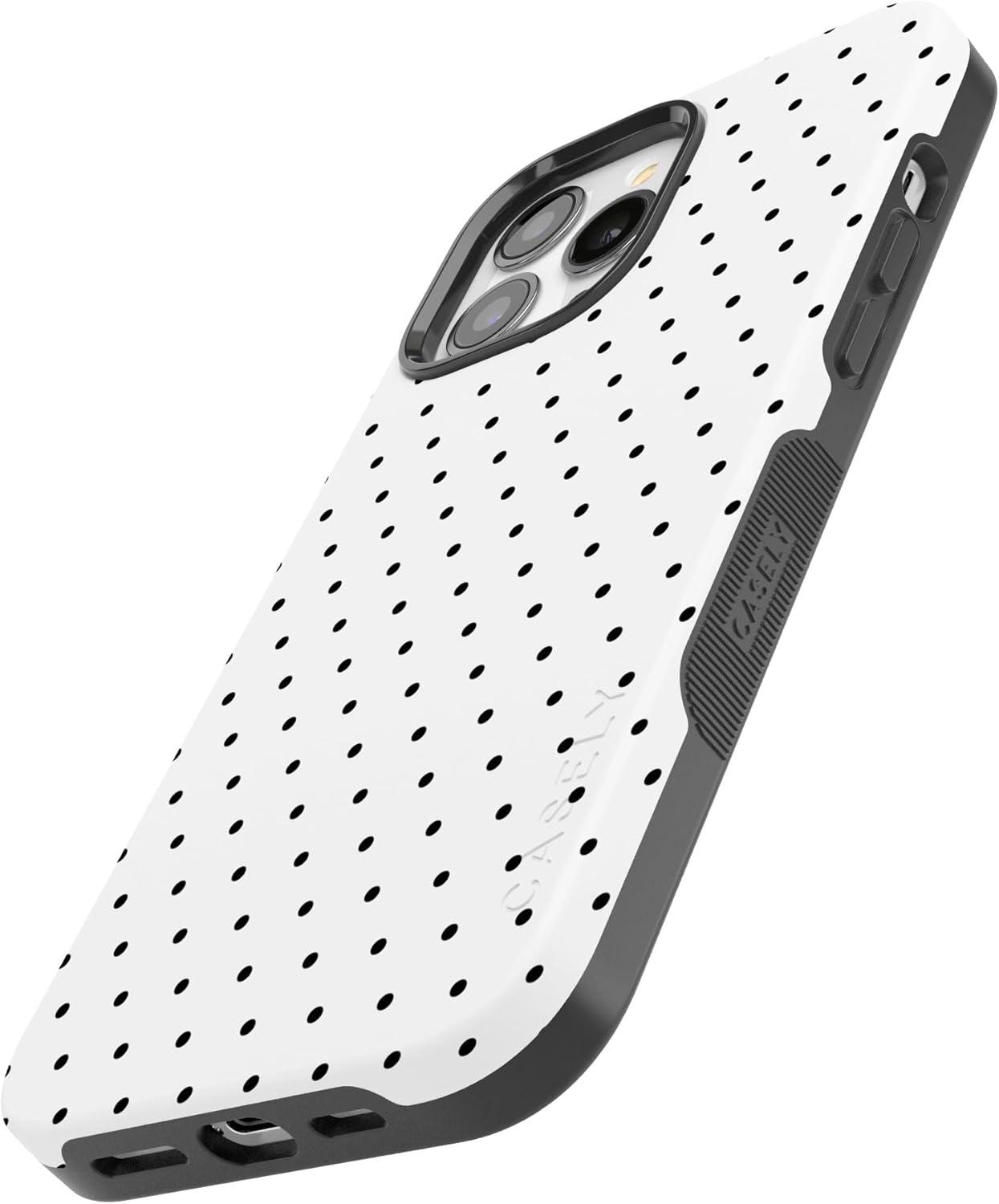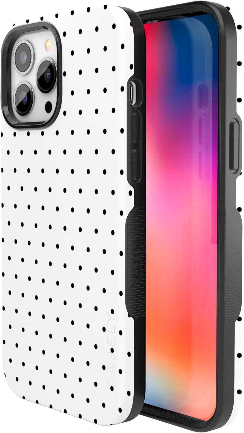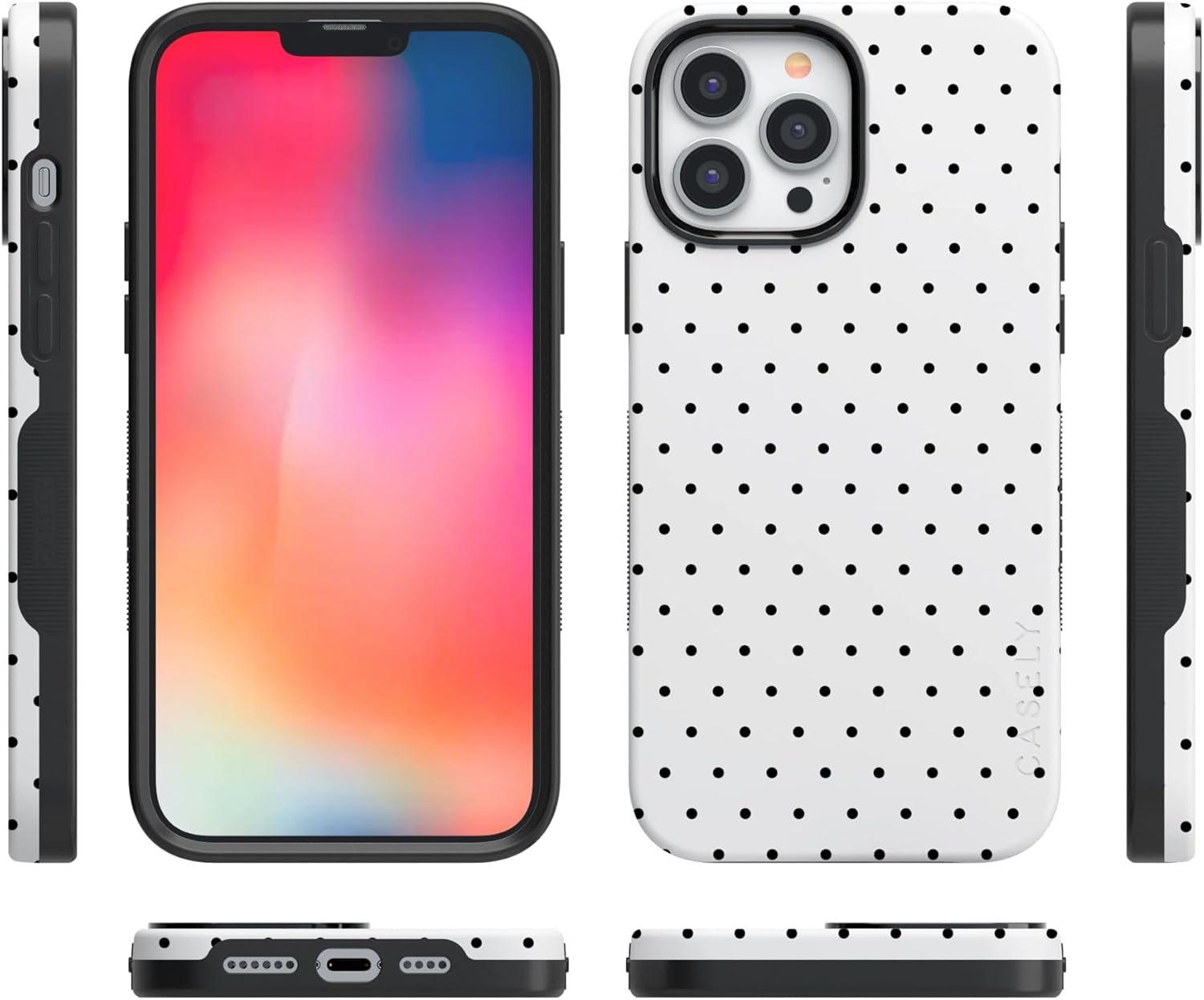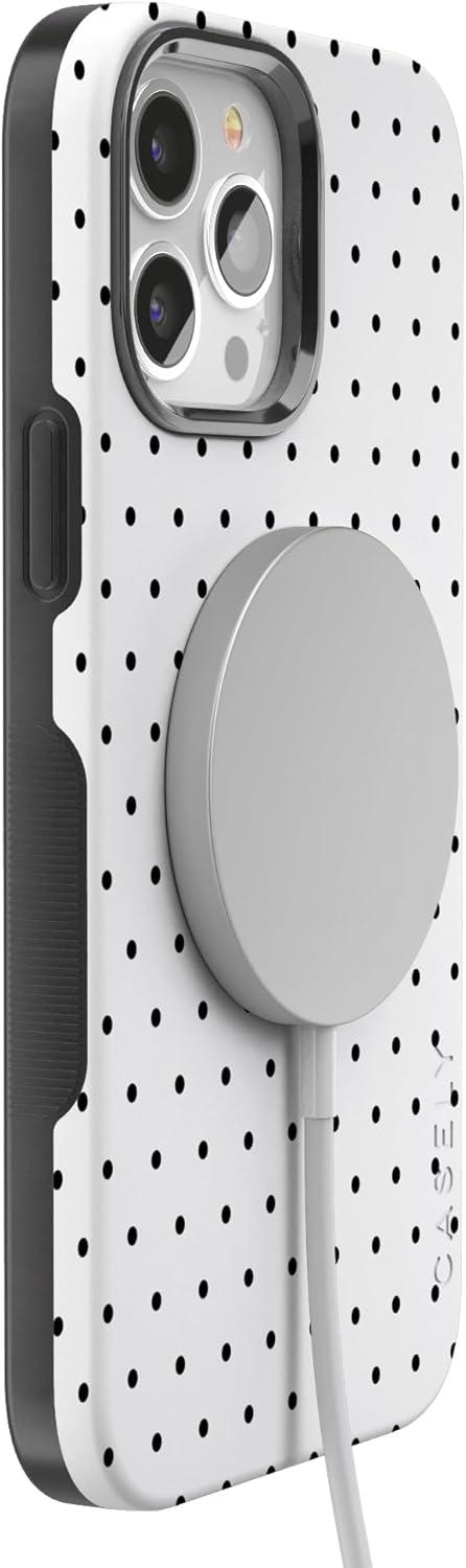 Casely iPhone 13 Pro Max Case | Field of Flowers | Pastel Floral | Compatible with MagSafe | Bold Protective Design(On the Dot | White Polka Dot)