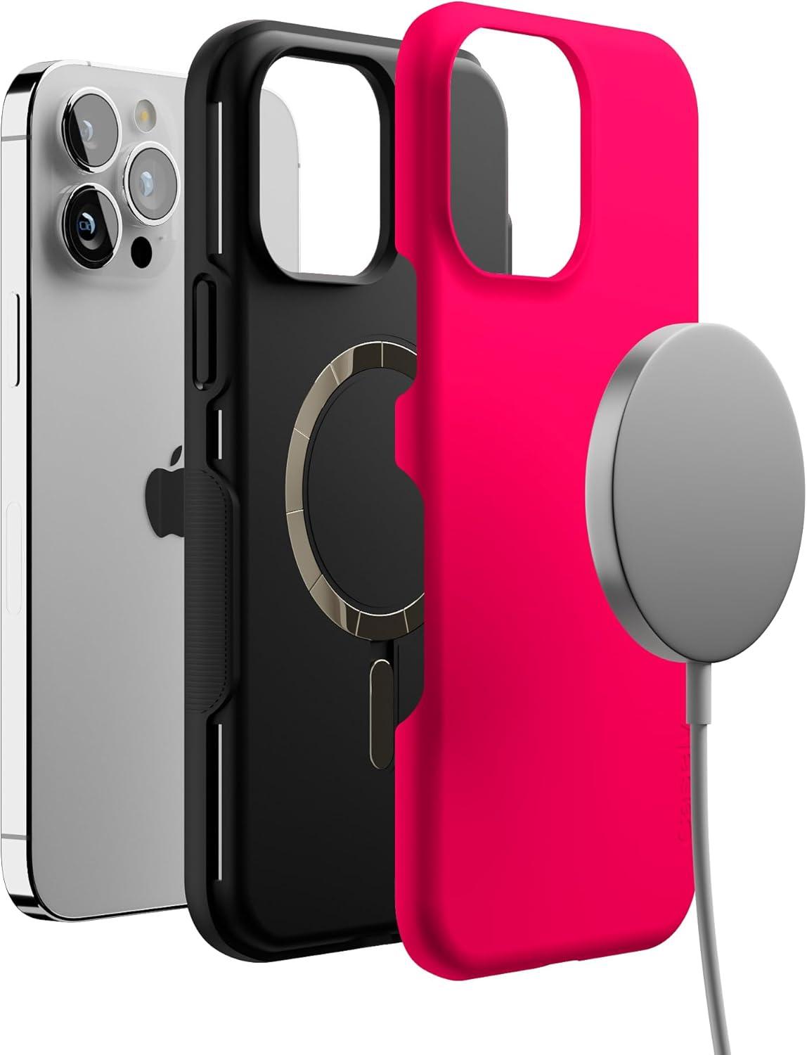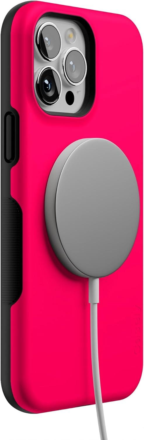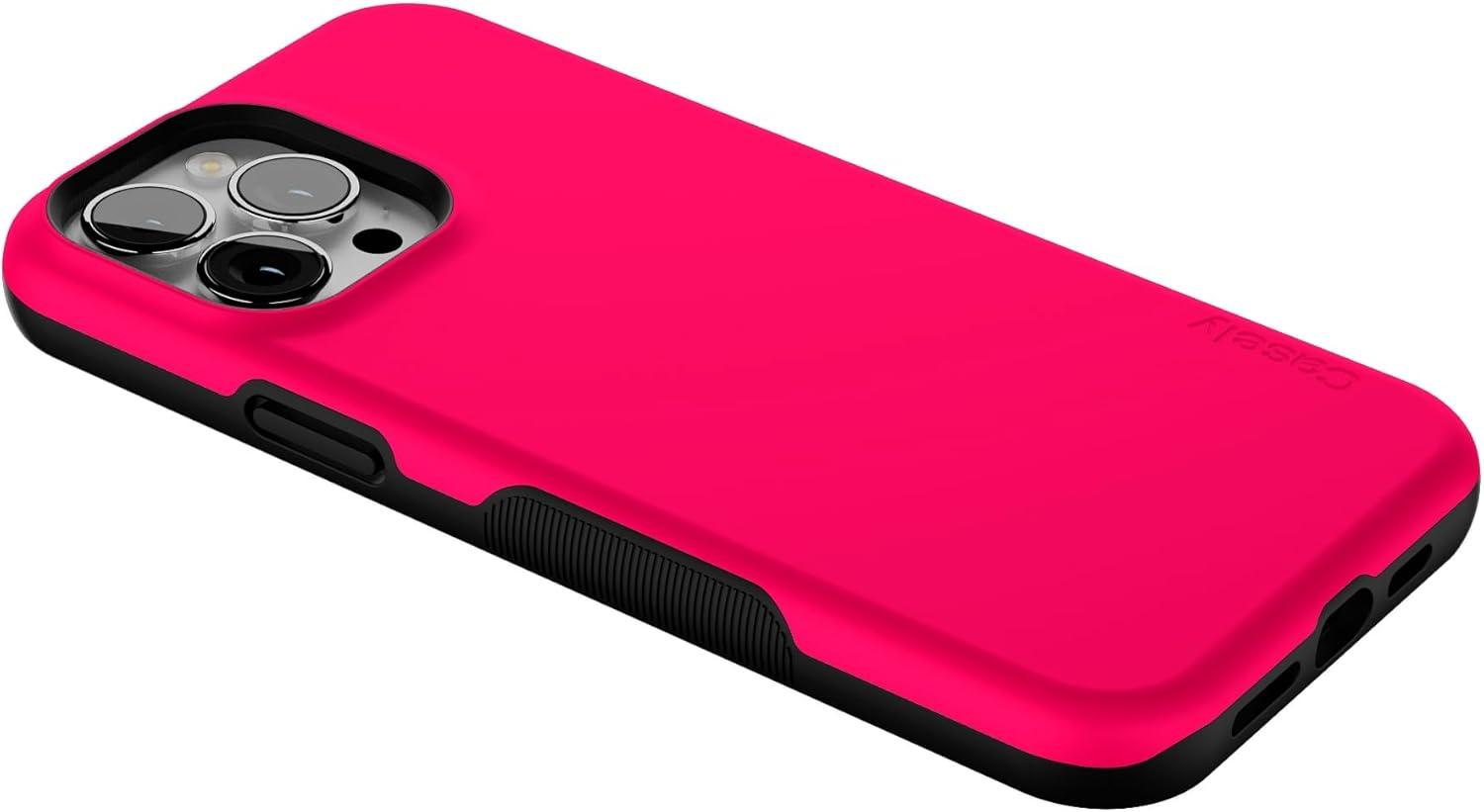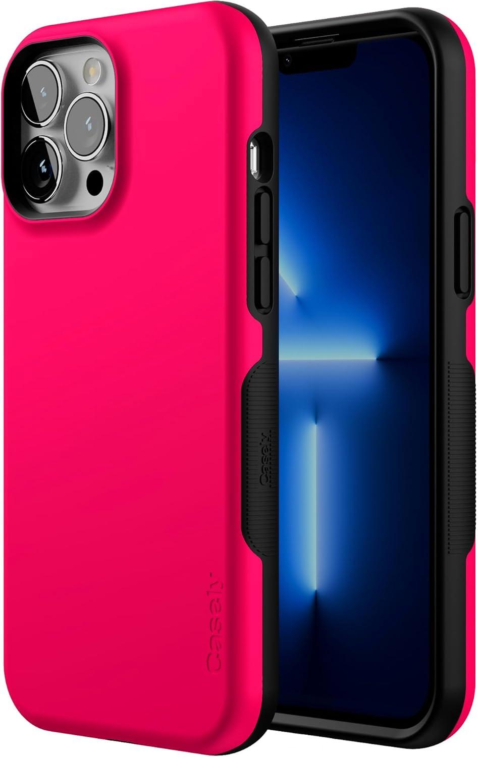Casely iPhone 13 Pro Max Case | Field of Flowers | Pastel Floral | Compatible with MagSafe | Bold Protective Design(Think Pink | Solid Neon Pink)