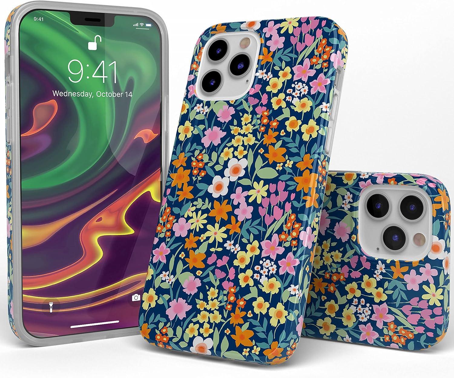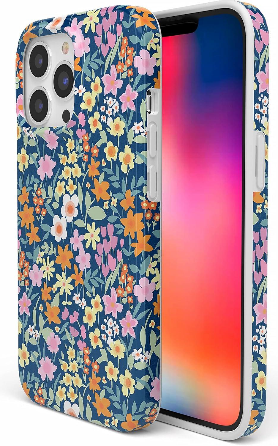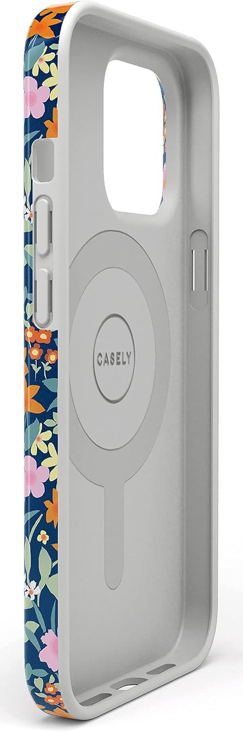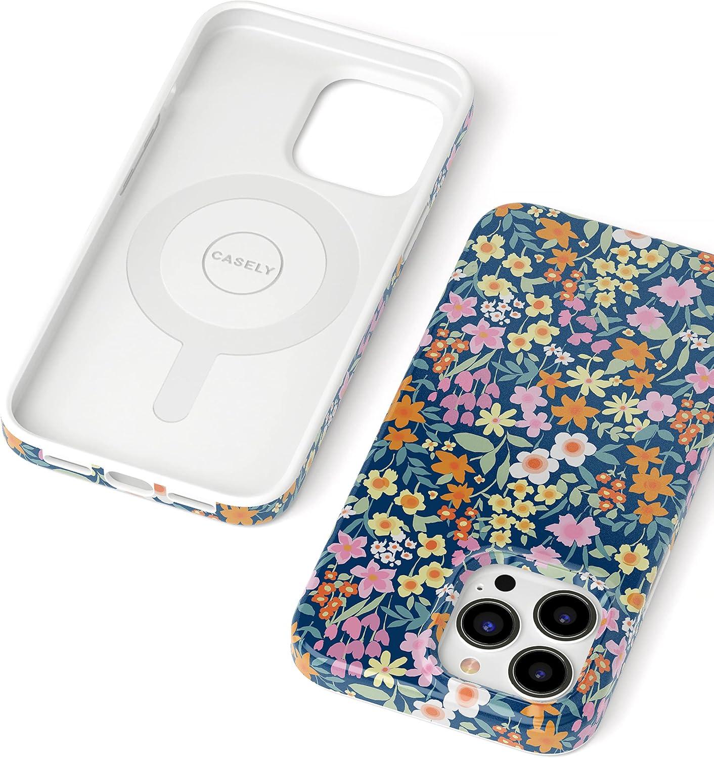 Casely iPhone 13 Pro Max Case | Field of Flowers | Pastel Floral | Compatible with MagSafe | Classic Ultra Slim Design(Full Bloom | Navy Floral)