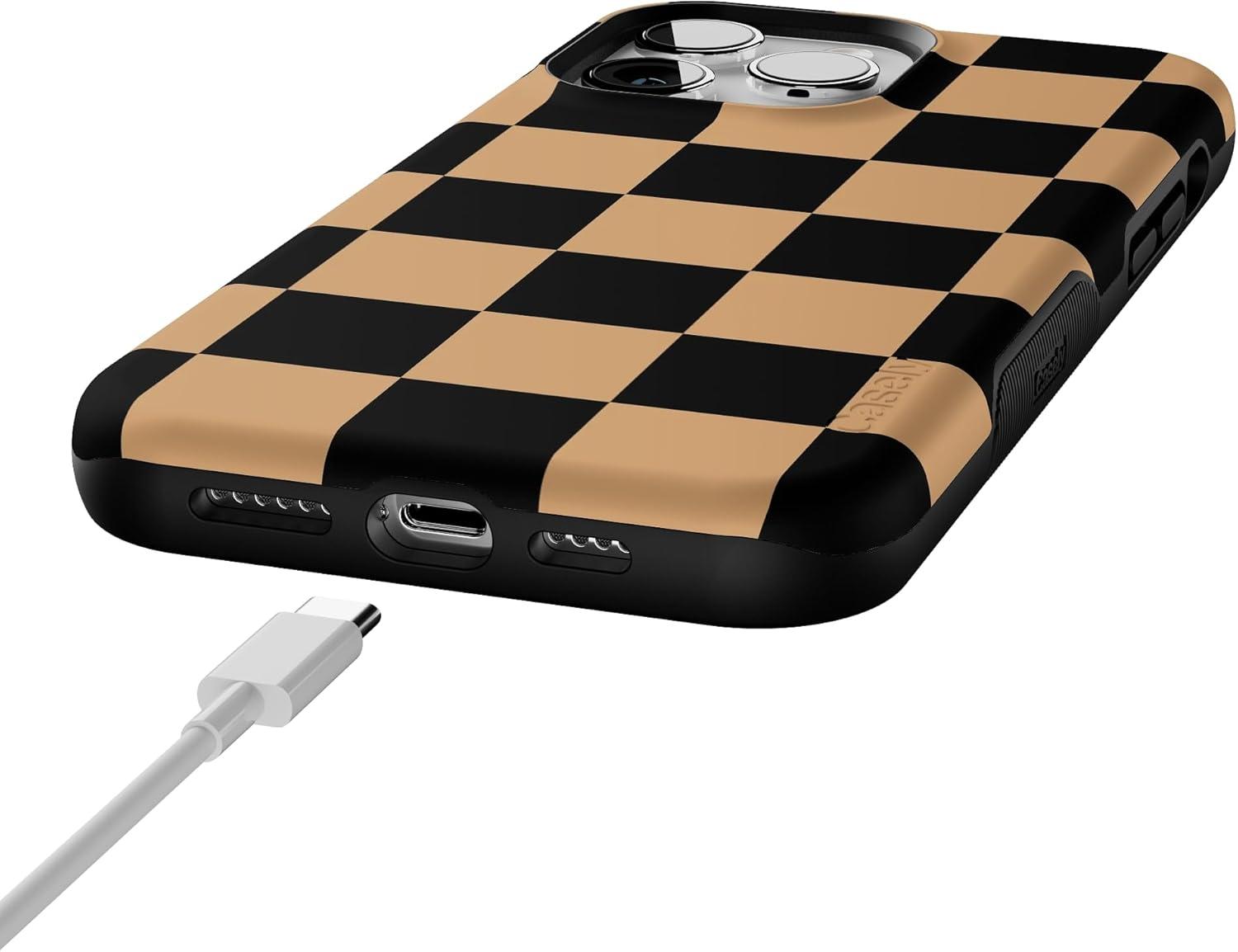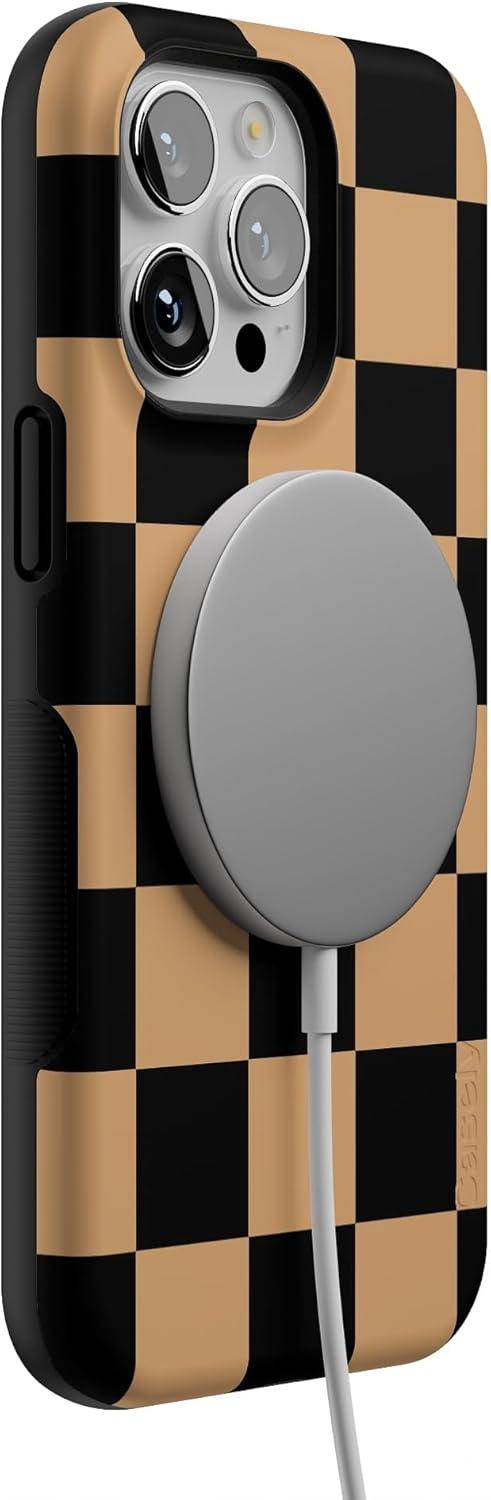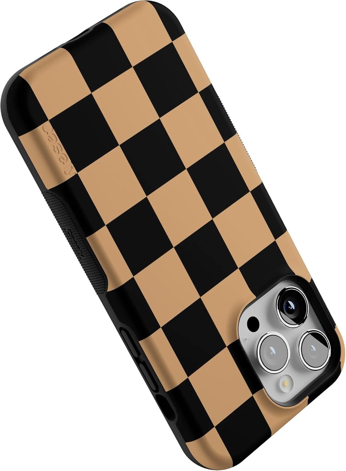 Casely iPhone 13 Pro Max Case | Fit Check | Black & Brown Checkerboard | Bold Protective Design | MagSafe Compatible Design