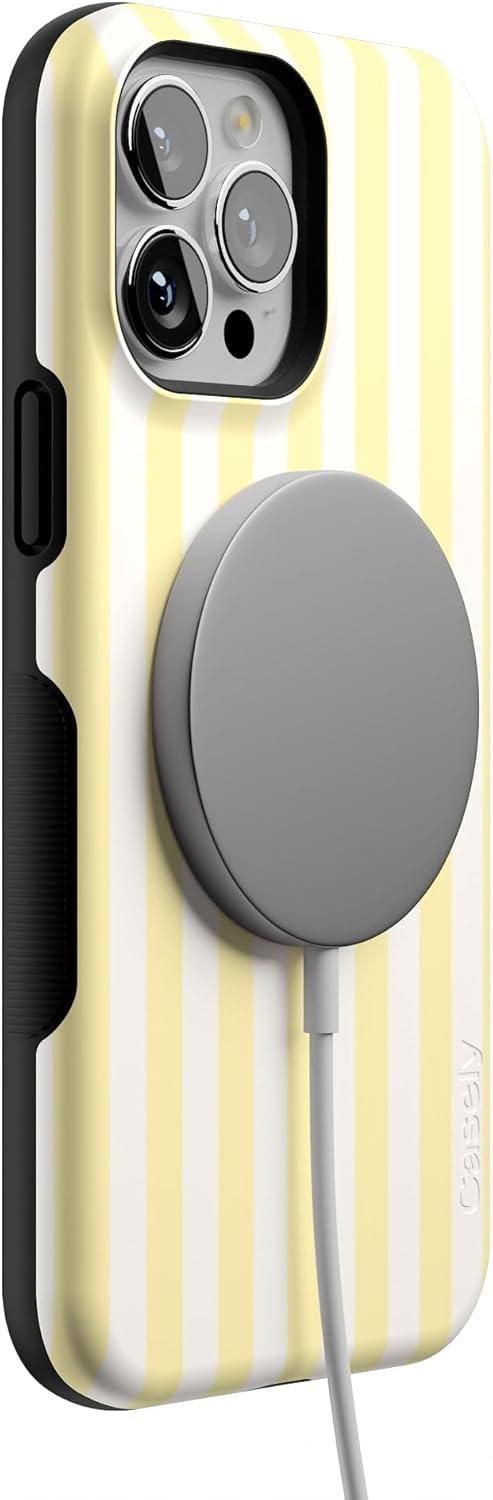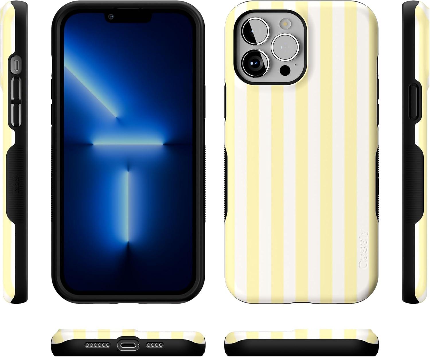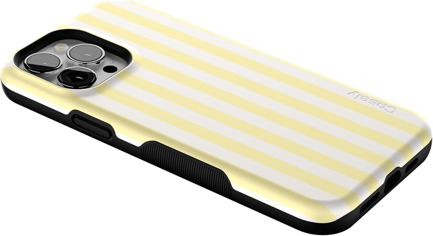 Casely iPhone 13 Pro Max Case | Poppy Meadows | Pastel Floral | Bold Protective Design | Compatible with MagSafe(Butter Yellow Stripes | Sunday Best)