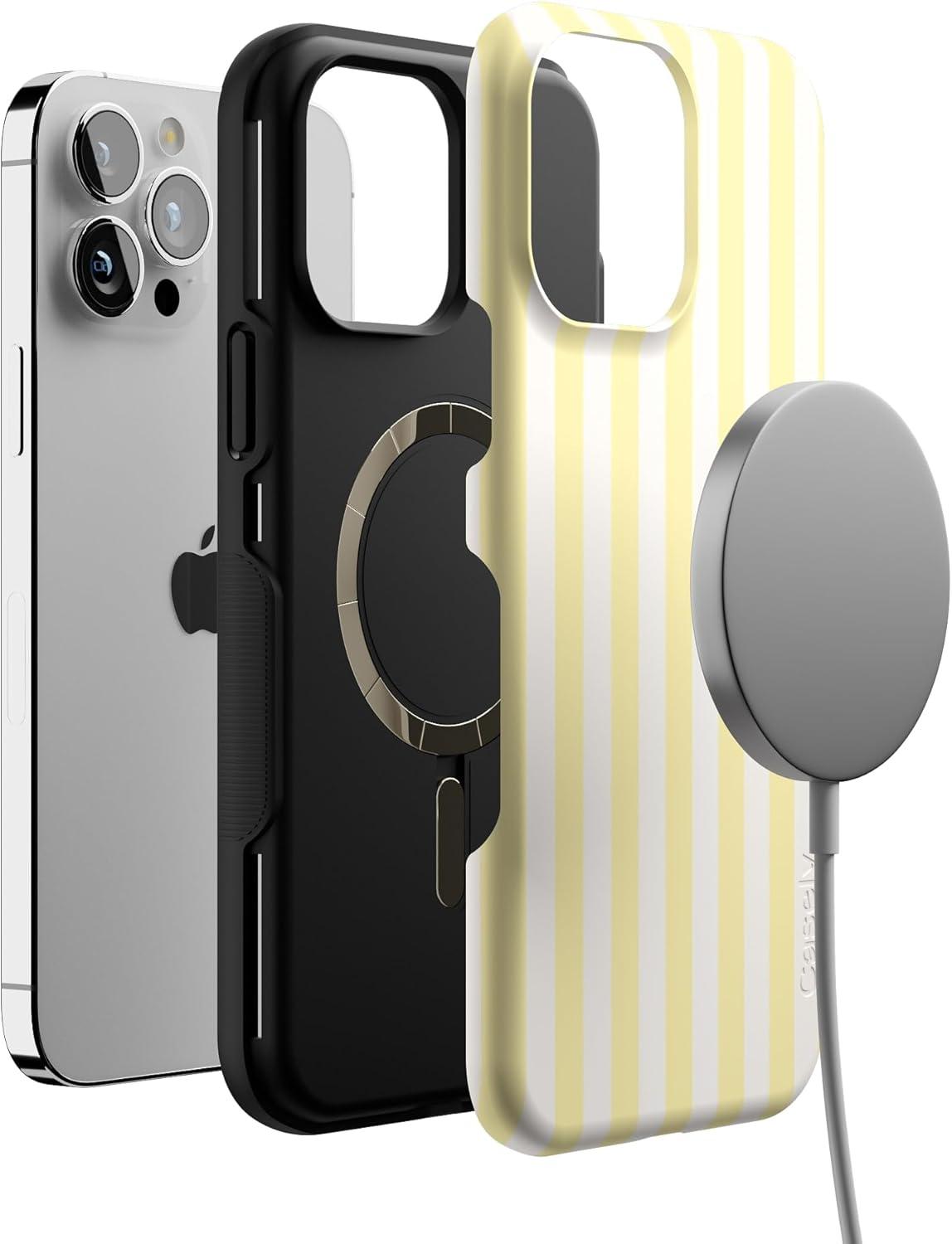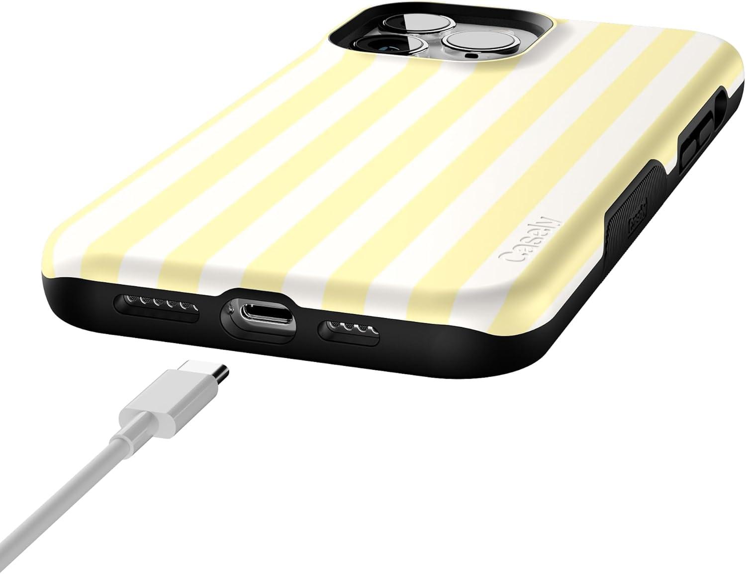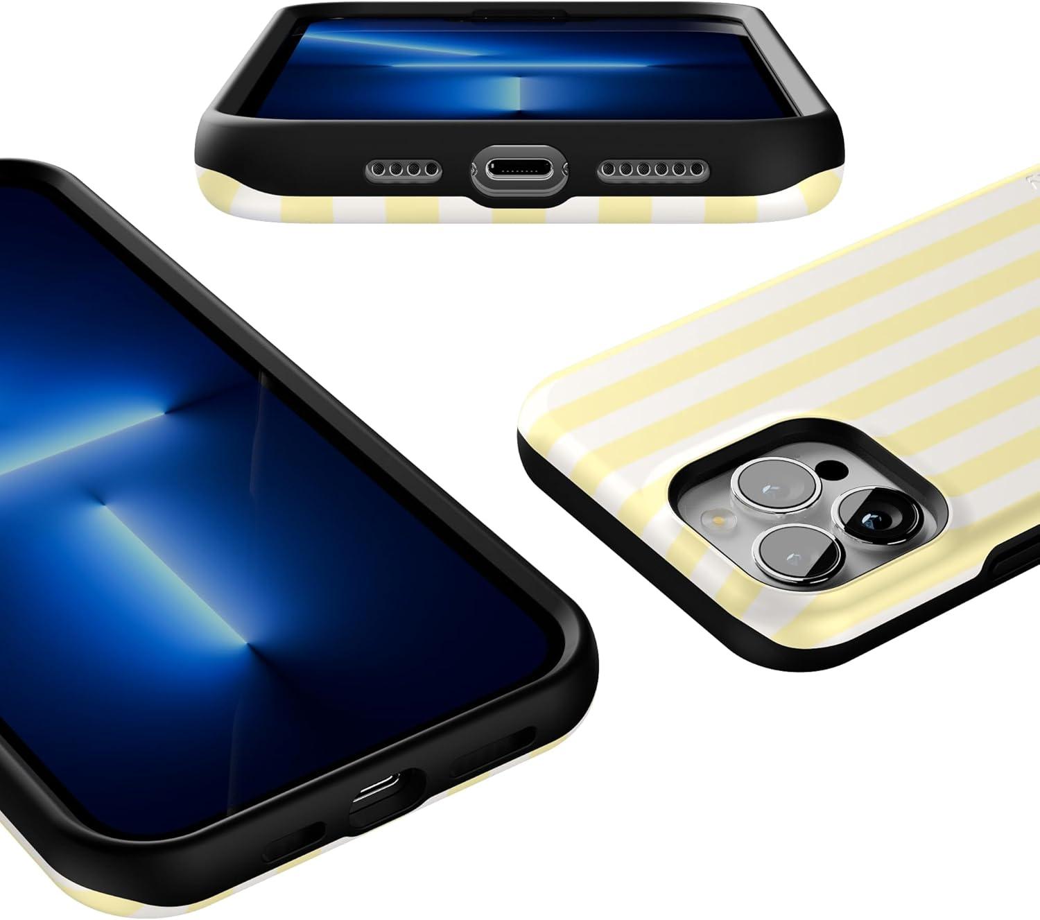 Casely iPhone 13 Pro Max Case | Poppy Meadows | Pastel Floral | Bold Protective Design | Compatible with MagSafe(Butter Yellow Stripes | Sunday Best)