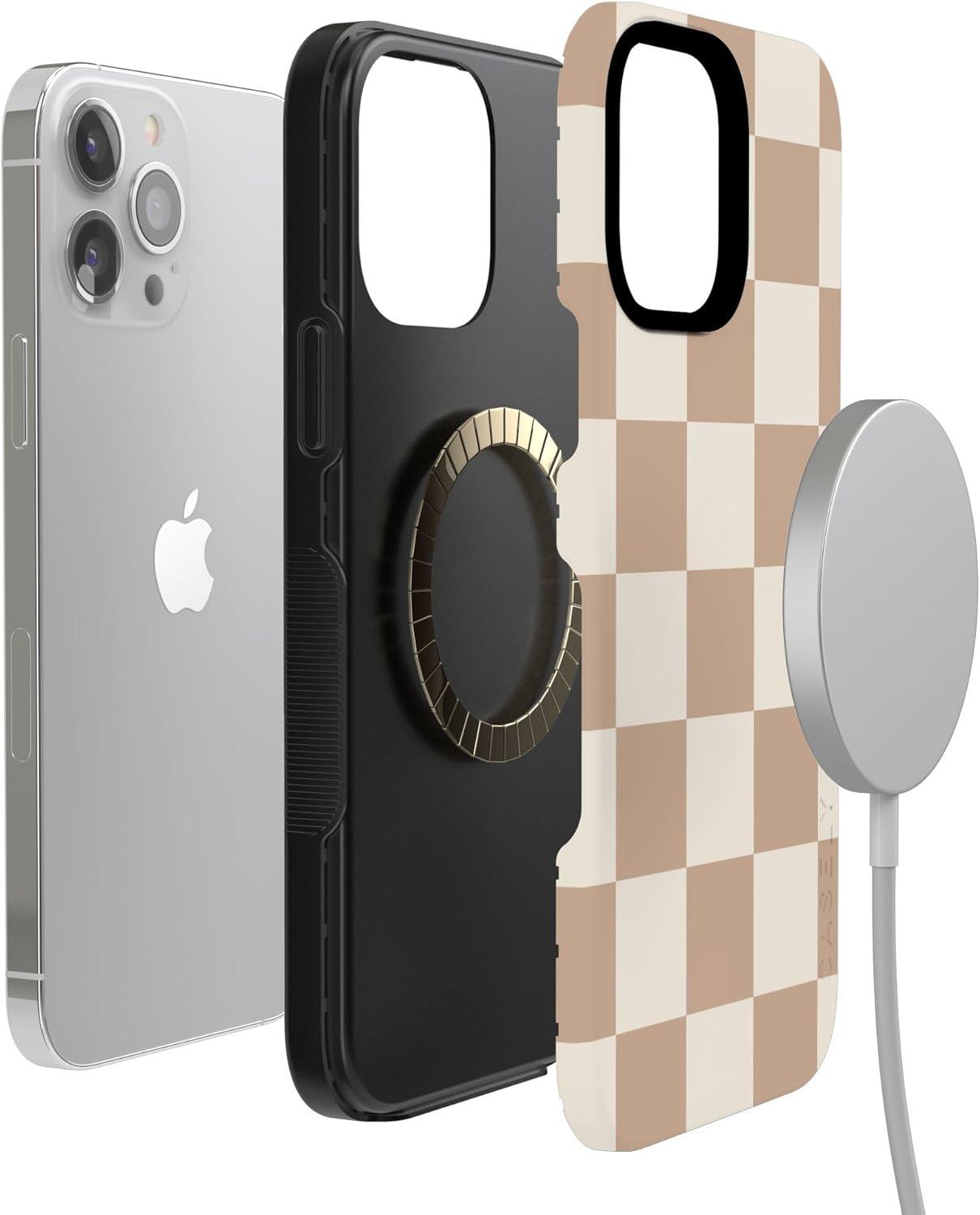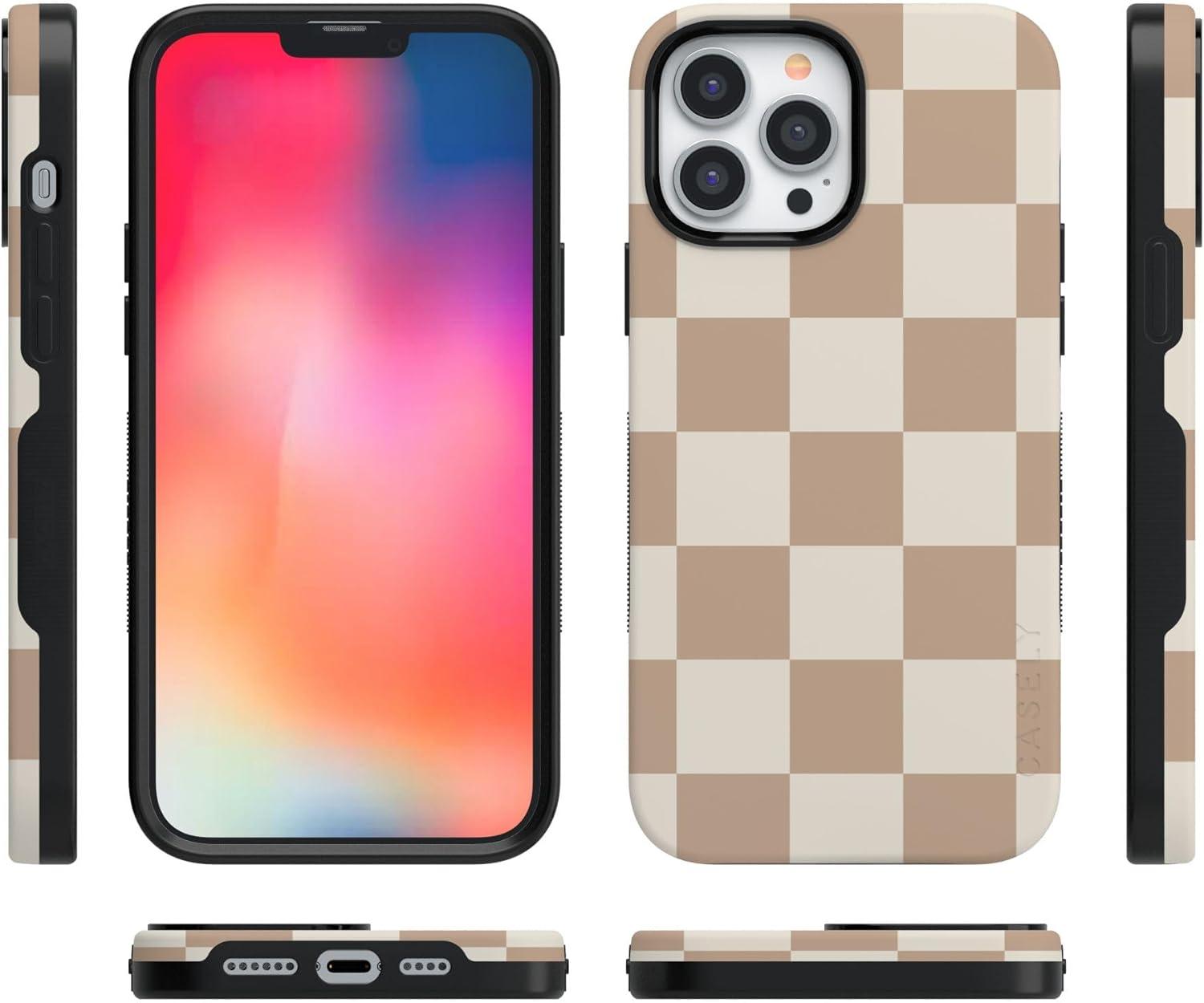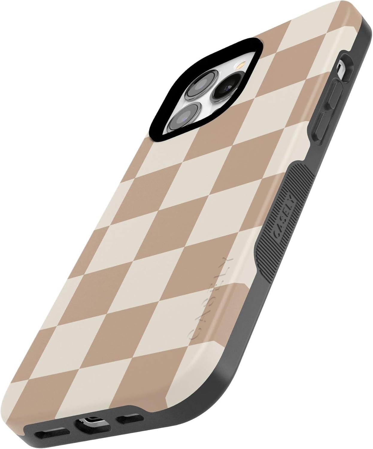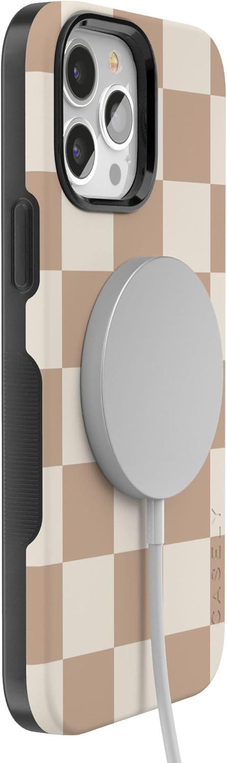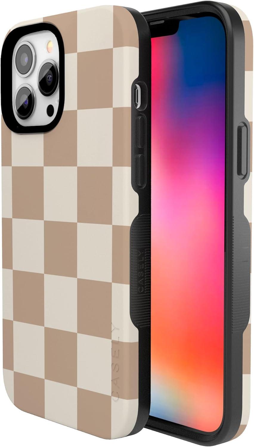 Casely iPhone 13 Pro Max Case | Poppy Meadows | Pastel Floral | Bold Protective Design | Compatible with MagSafe(Fit Check | Neutral Checkerboard)