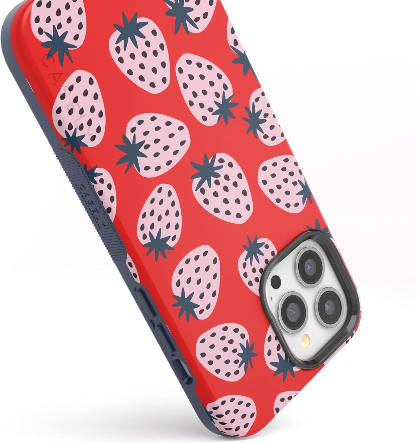 Casely iPhone 13 Pro Max Case | Poppy Meadows | Pastel Floral | Bold Protective Design | Compatible with MagSafe(I’d Pick You | Red Strawberry)