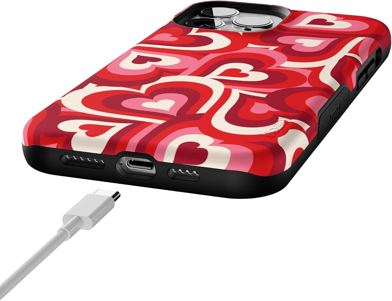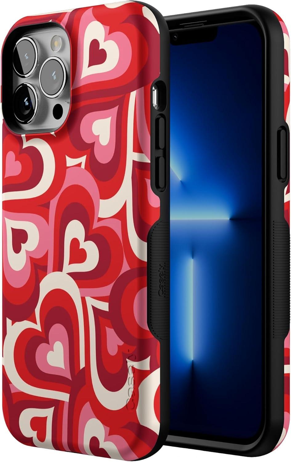 Casely iPhone 13 Pro Max Case | Poppy Meadows | Pastel Floral | Bold Protective Design | Compatible with MagSafe(Love Song Remix | Ombre Hearts)