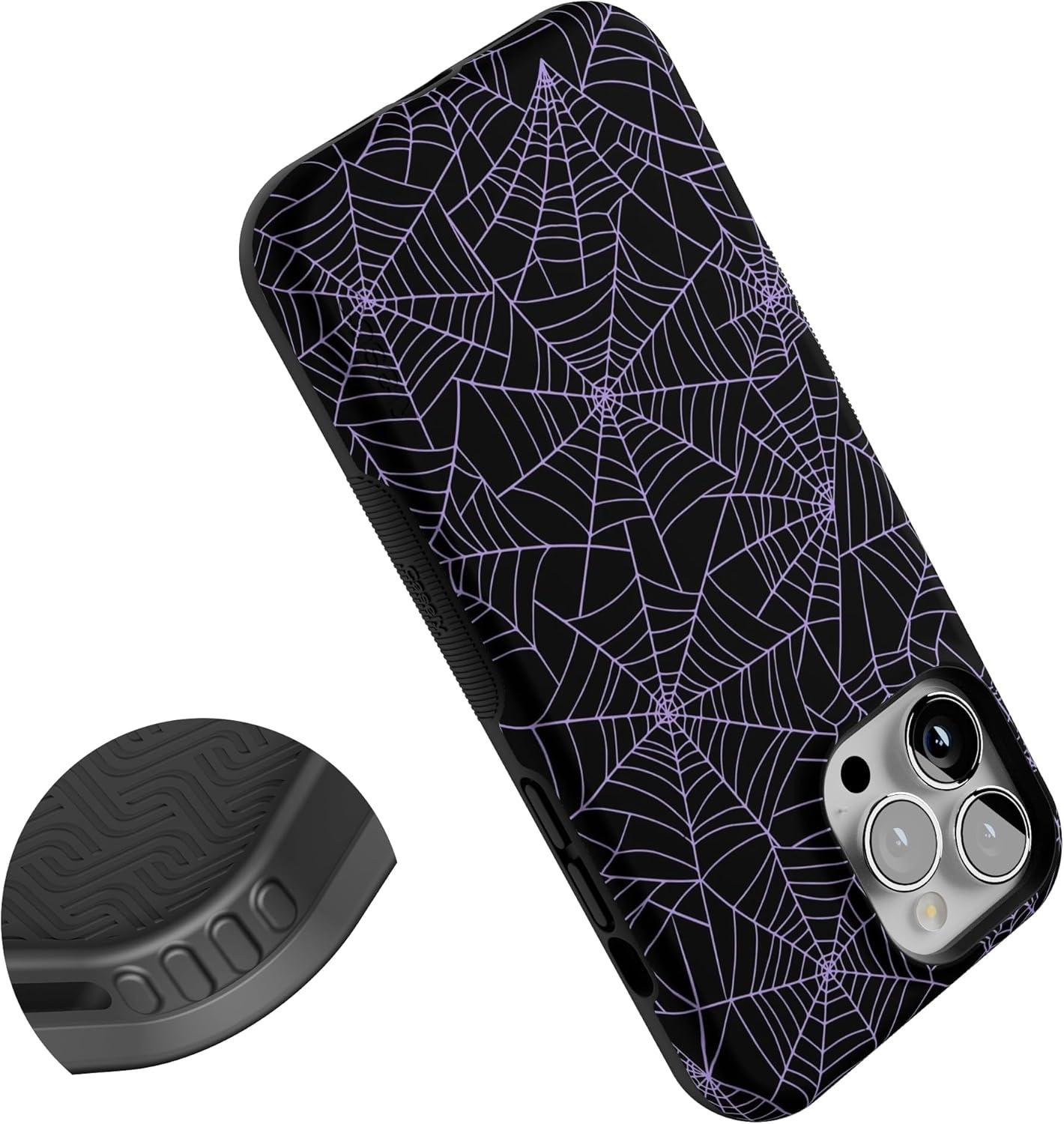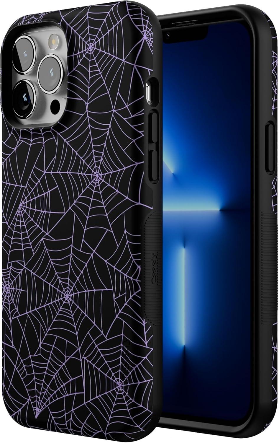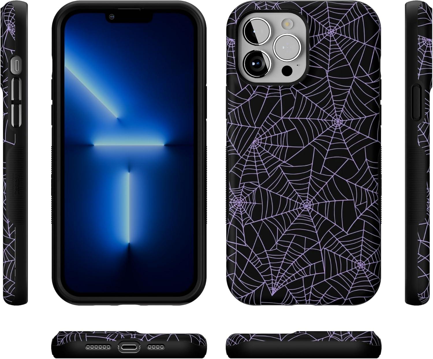 Casely iPhone 13 Pro Max Case | Poppy Meadows | Pastel Floral | Bold Protective Design | Compatible with MagSafe(Midnight Web | Spider Web)