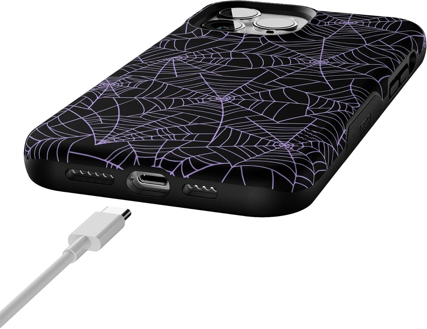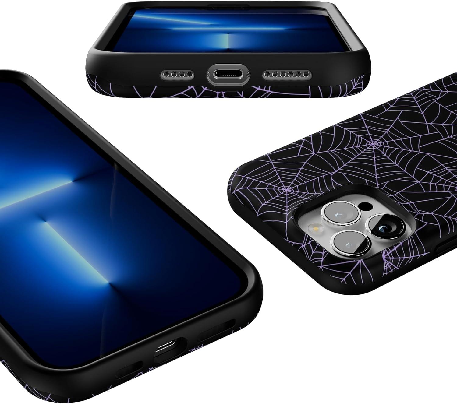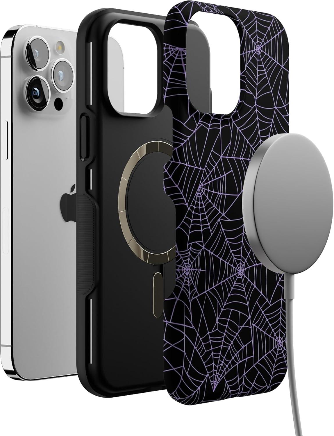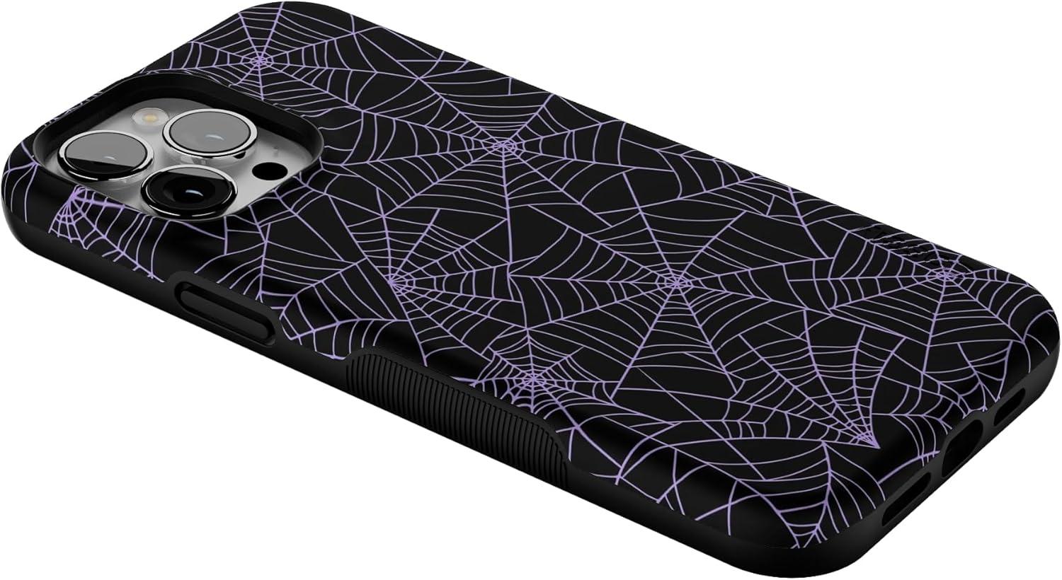 Casely iPhone 13 Pro Max Case | Poppy Meadows | Pastel Floral | Bold Protective Design | Compatible with MagSafe(Midnight Web | Spider Web)
