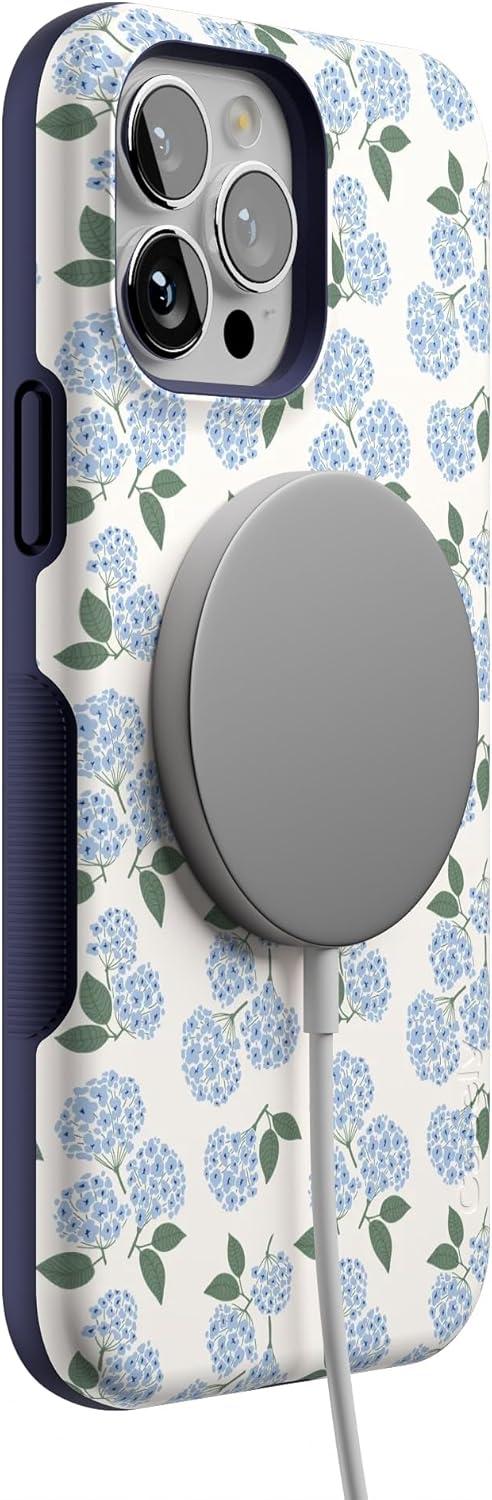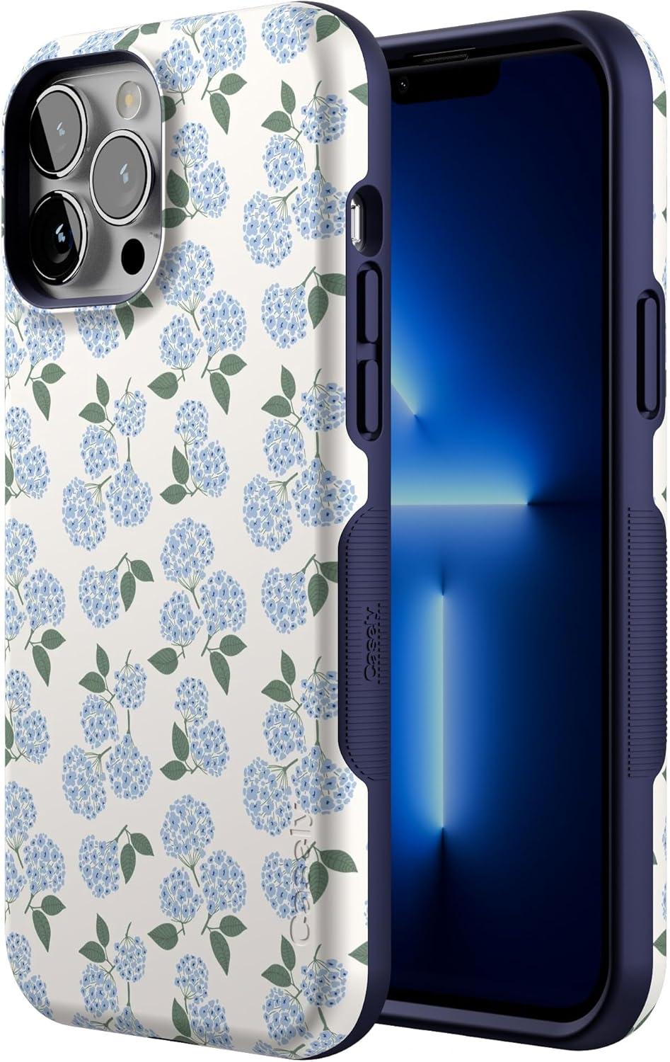 Casely iPhone 13 Pro Max Case | Poppy Meadows | Pastel Floral | Bold Protective Design | Compatible with MagSafe(Nantucket Cottage | Blue Hydrangea)