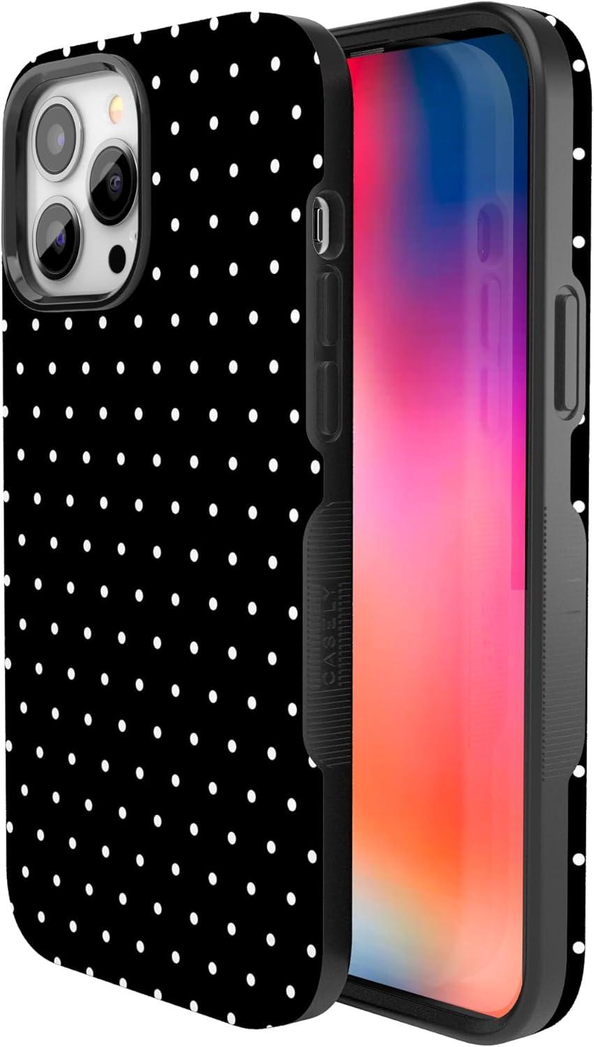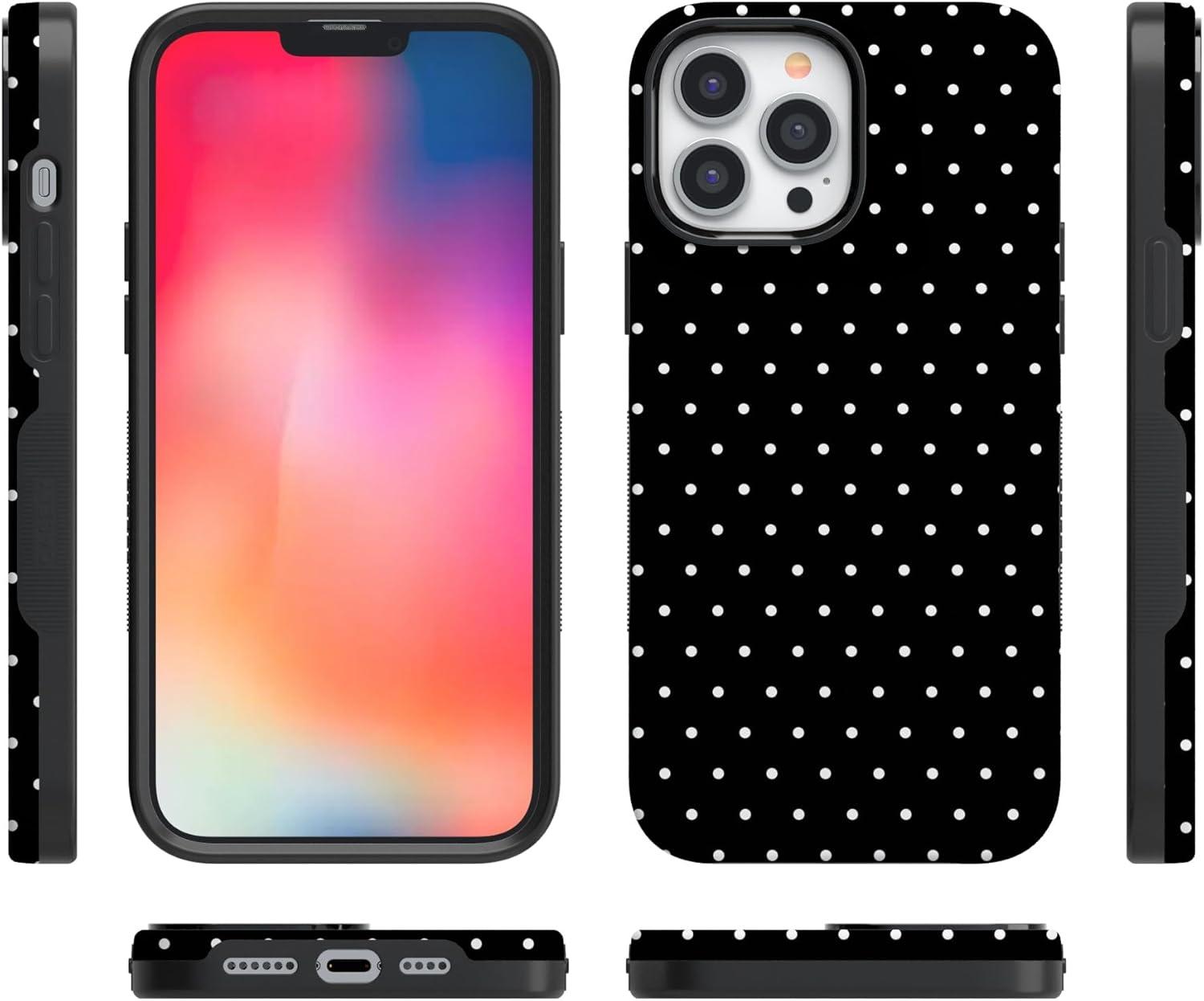 Casely iPhone 13 Pro Max Case | Poppy Meadows | Pastel Floral | Bold Protective Design | Compatible with MagSafe(On the Dot | Black Polka Dot)